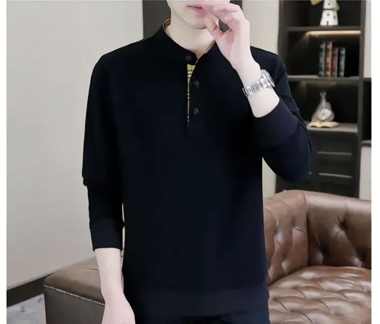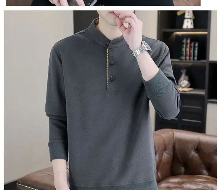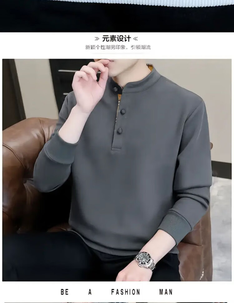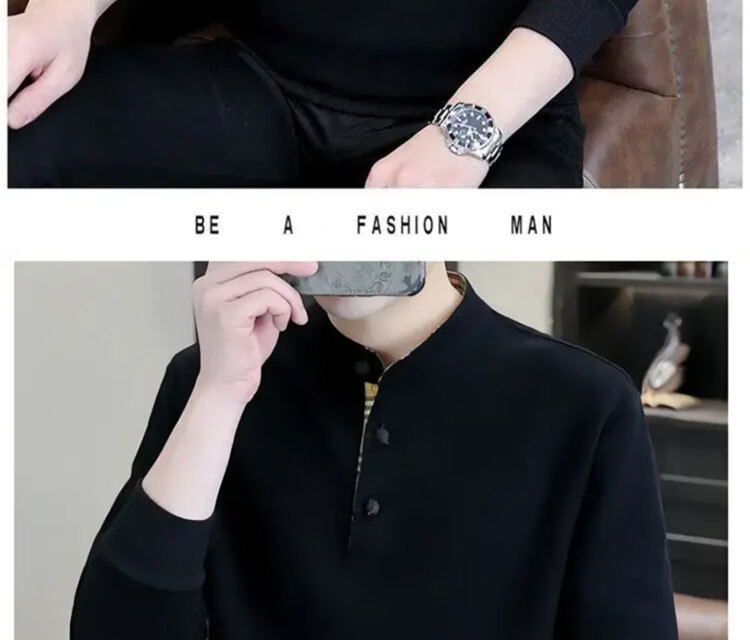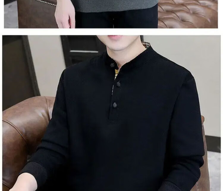 Playboy (PLAYBOY) Men's Light Luxury Chinese Style Sweater Men's Henry Collar Velvet Thickened Long-Sleeved Autumn and Winter Bottoming Shirt Black-Winter Style Velvet XL (Recommended Weight 135-155 Jin Jin is equal to 0.5 kg)