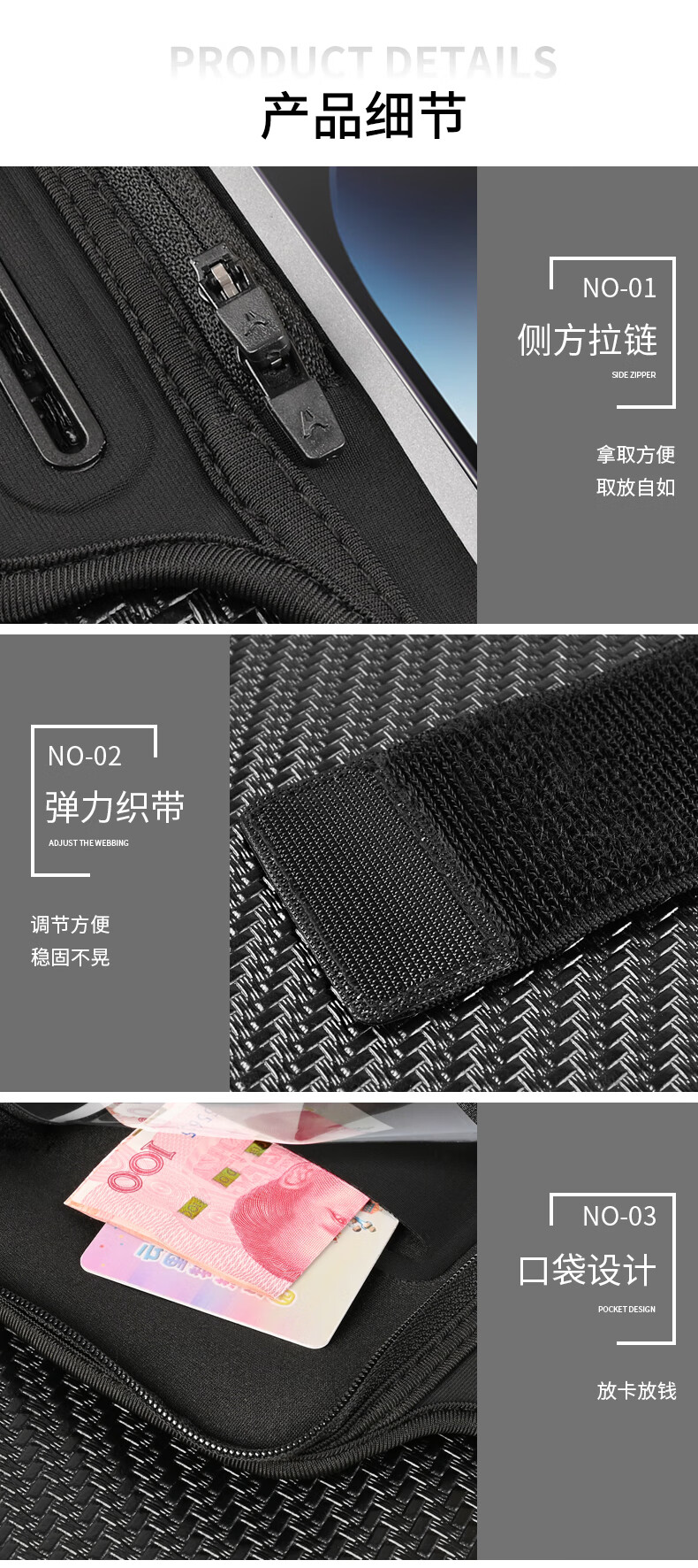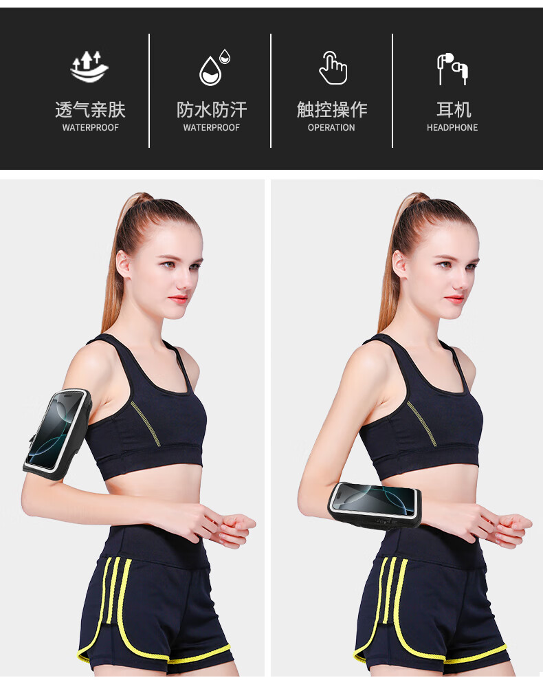 Nok's new running mobile phone arm bag outdoor sports fitness unisex 7-inch wrist bag arm bag classic black_7-inch universal
