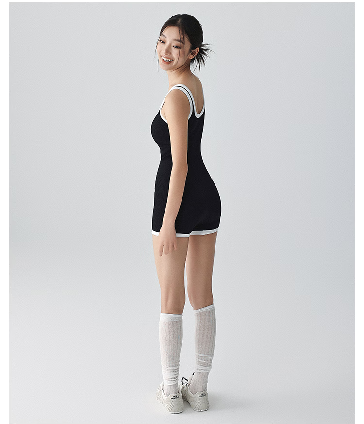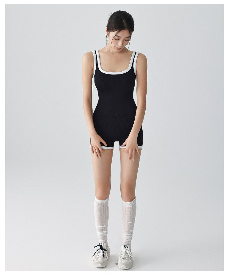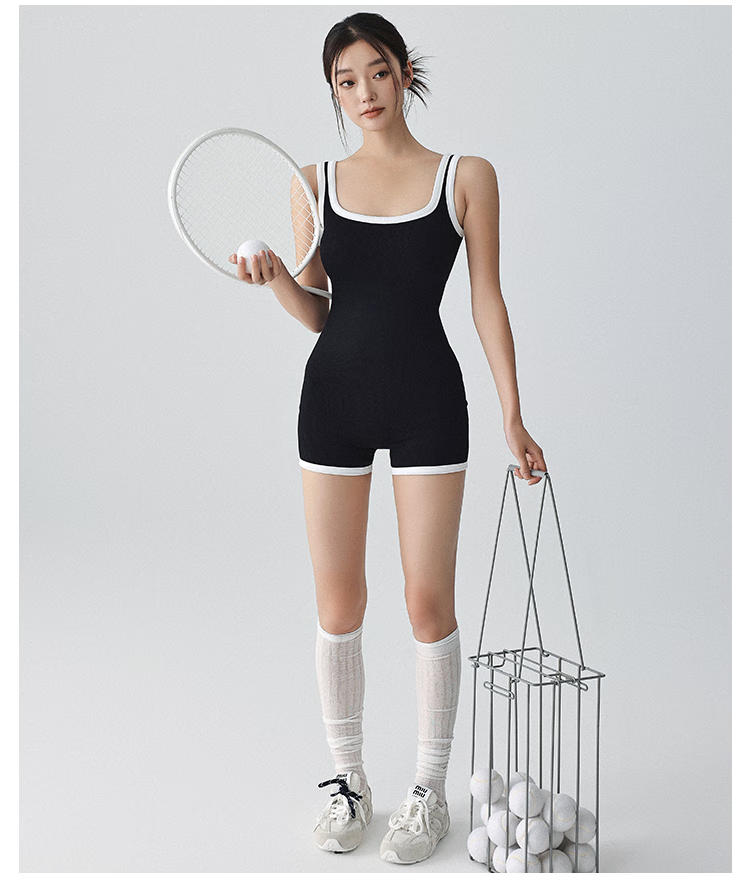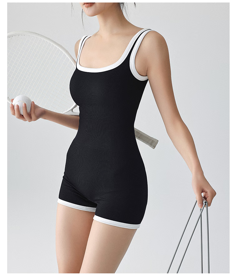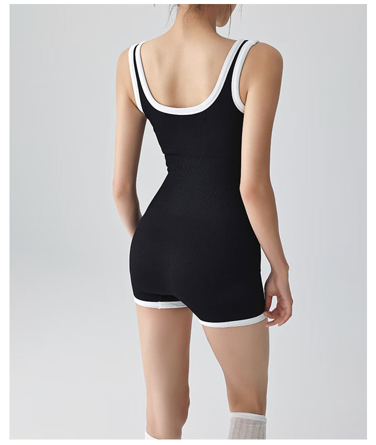 LAECANIA Sports Slim Jumpsuit Sleeveless Tight Shaping Tennis Sports Fitness Yoga Wear Pilates Dance Exercise Wear Brown S