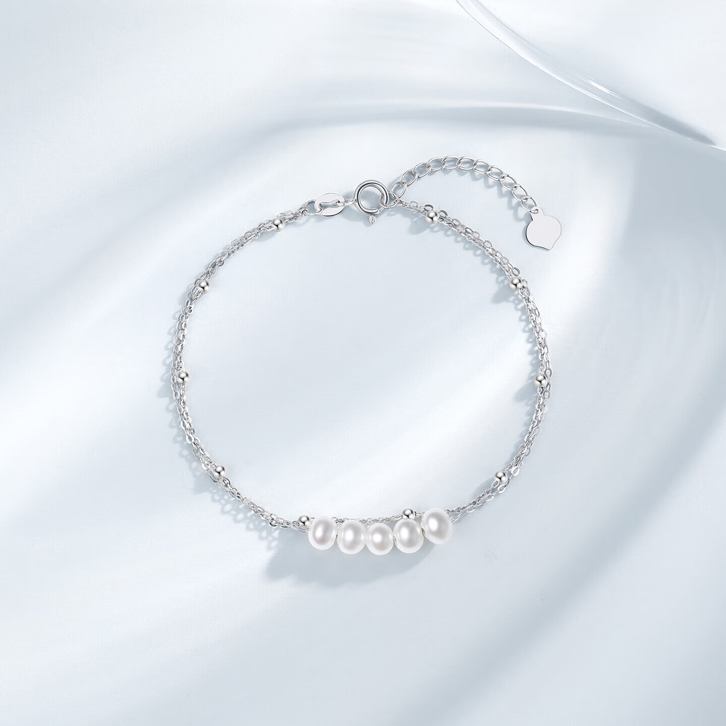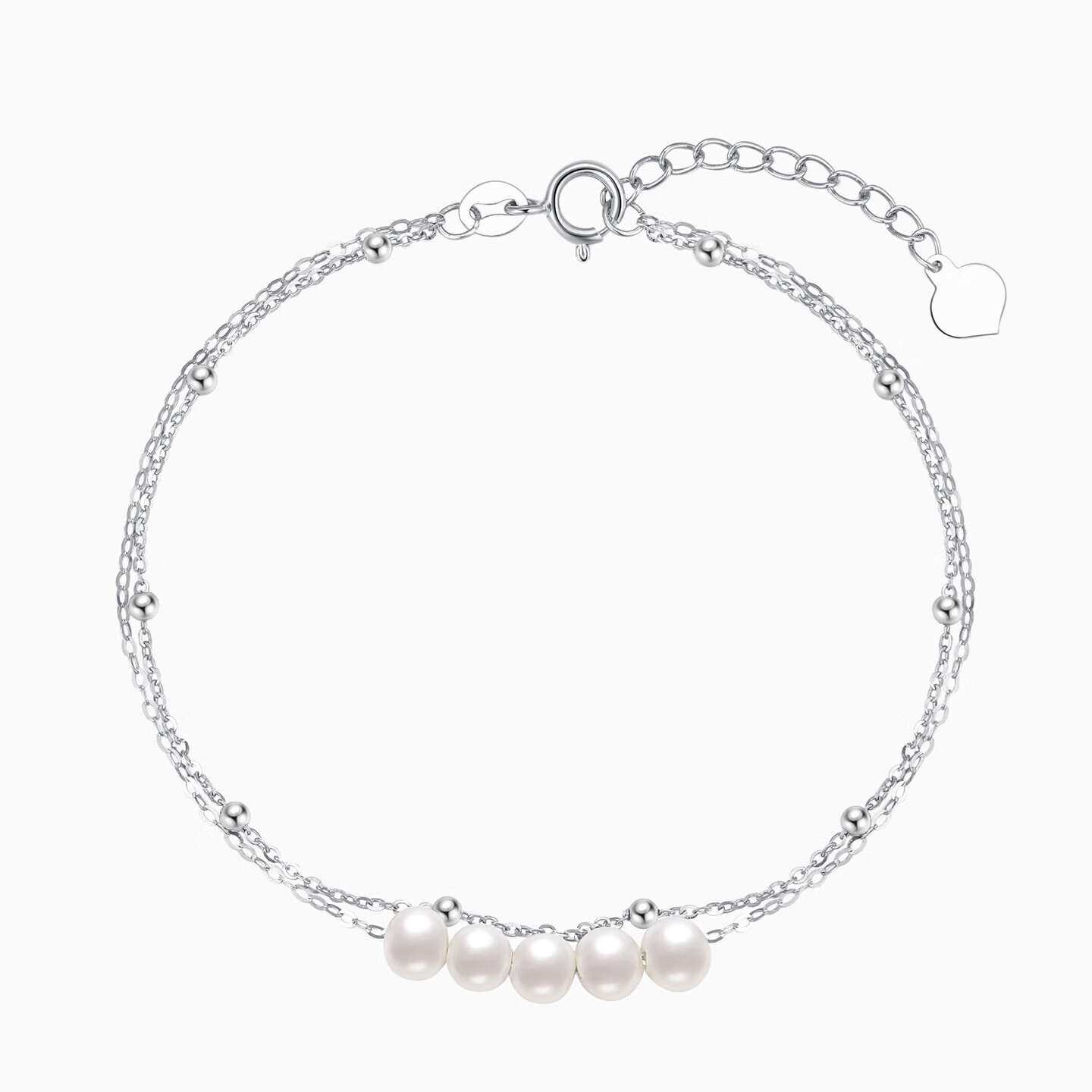Chao Acer Platinum Pearl Bracelet for Women PT950 Platinum Hand Jewelry Double Layer Bracelet Birthday Gift for Women Chain Length Approximately 16cm + Tail Chain