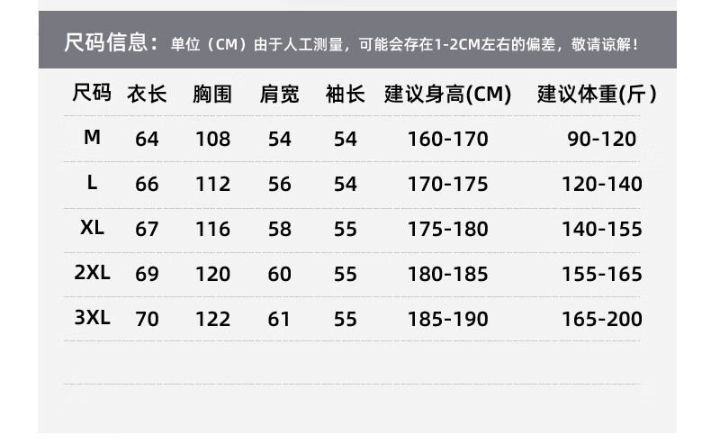 China (cm) 165 / 88-90 170 / 96-98 175 / 108-110 180 / 118-122 185 / 126-130