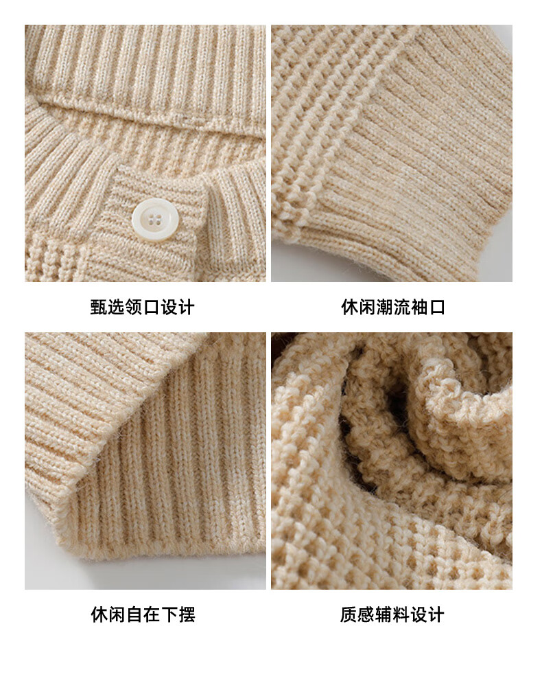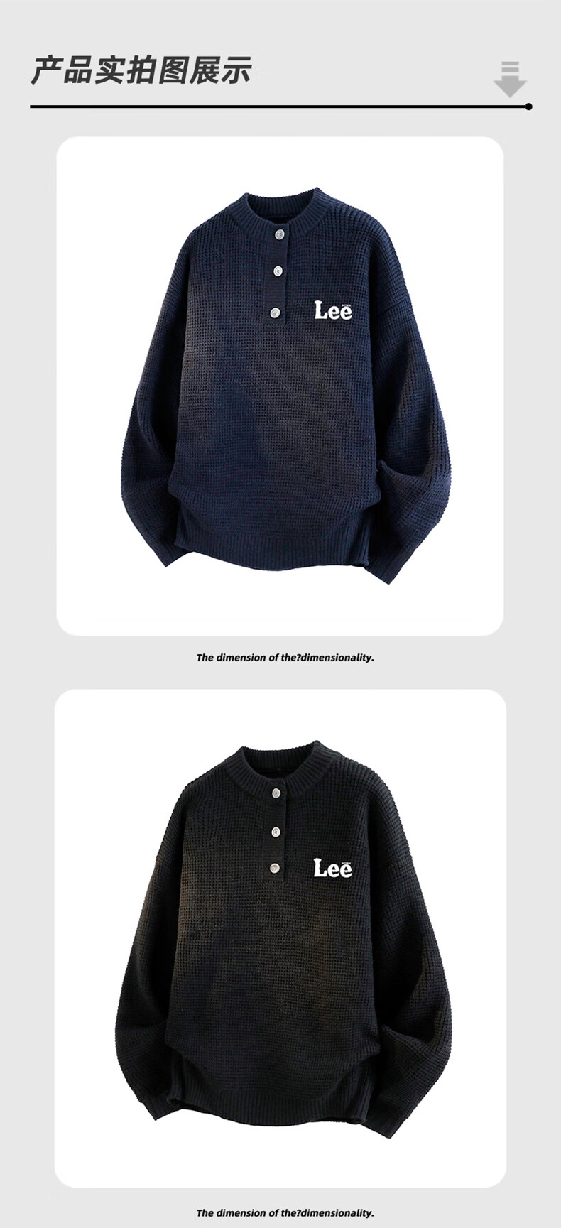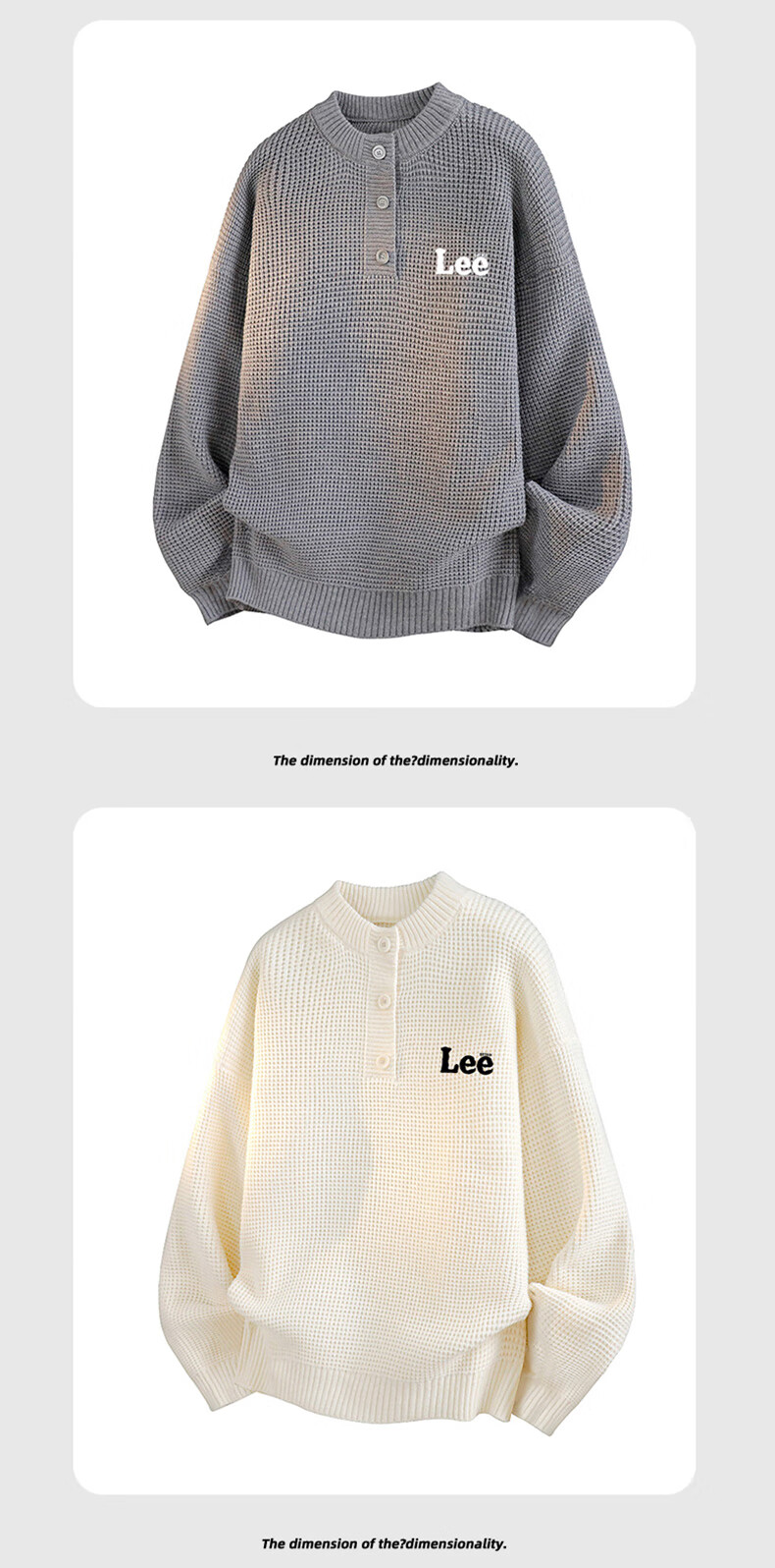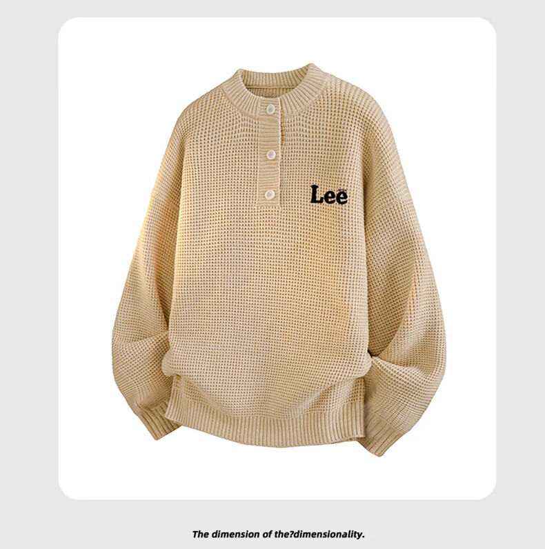 LEESRTROI Waffle Henry Collar Sweater Men's Autumn and Winter 2025 New Couple Model Mechanical Pullover Teenagers Sweater White L Approximately 120-140Jin Jin equals 0.5 kg