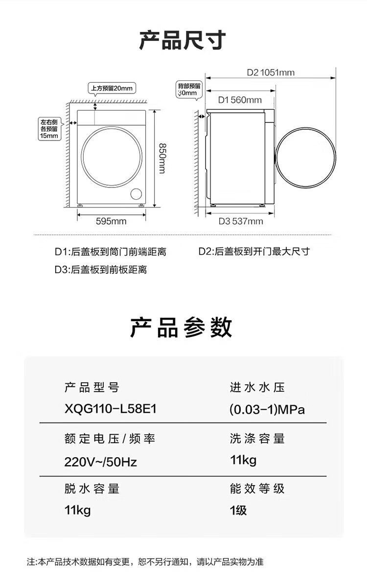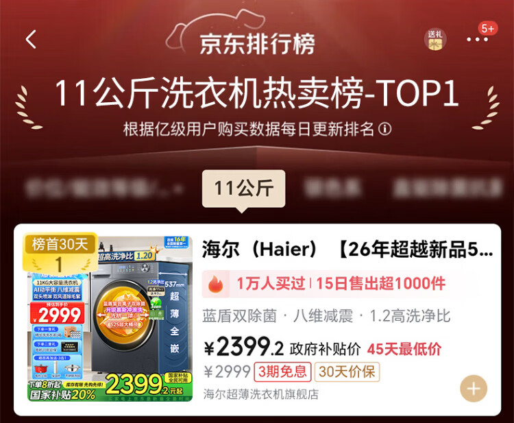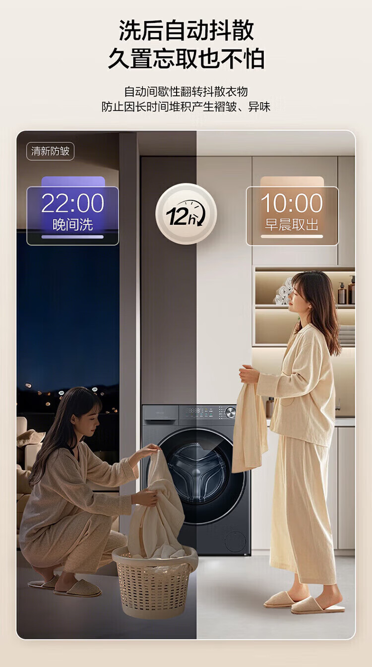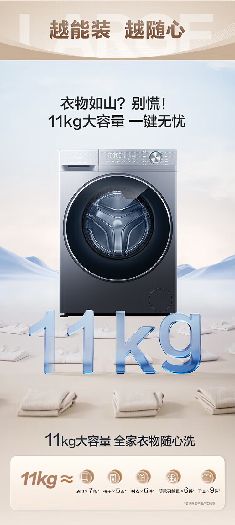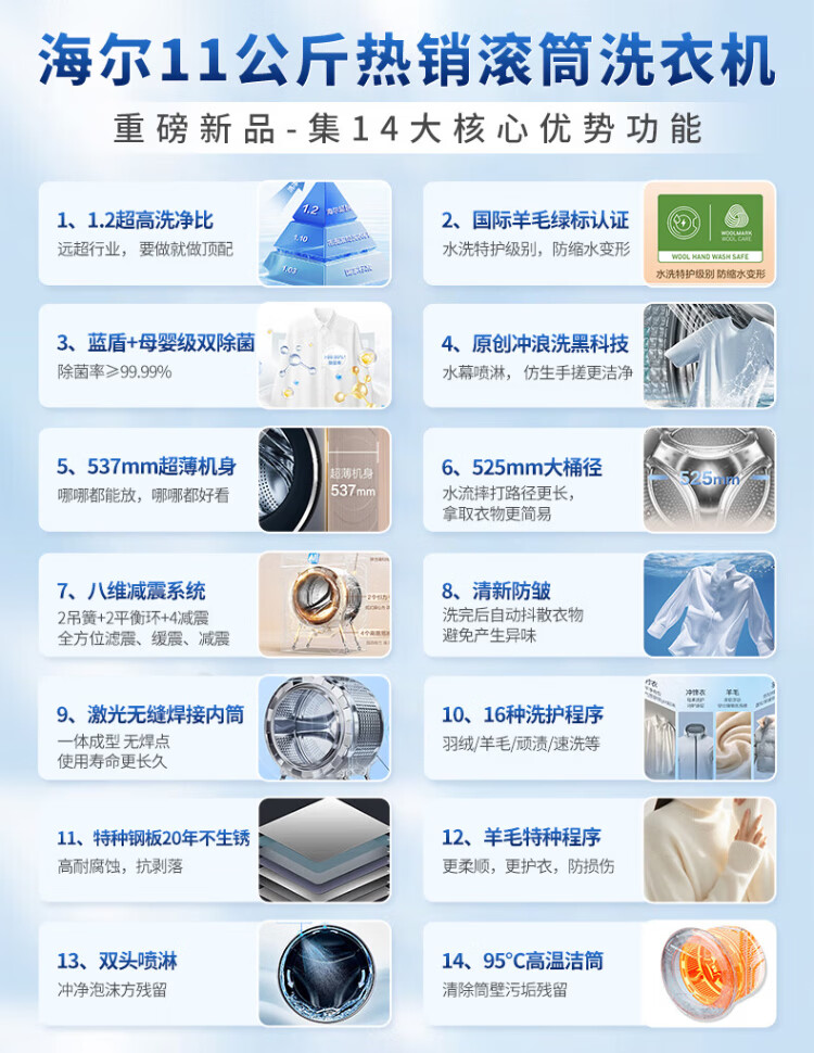 Haier's 26-year-old new product 58E 11kg ultra-thin drum washing machine with fully automatic variable frequency belt drying and washing and drying in one flagship store genuine first-class energy consumption state subsidy 11kg washing and drying + 1.2 wash + down blanket + air wash + double drying tunnel