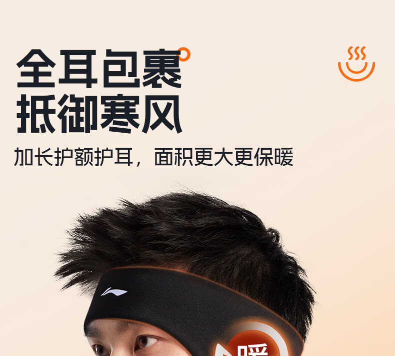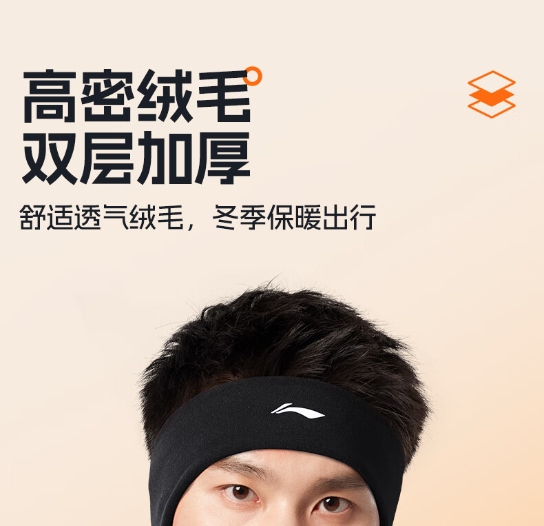 Li Ning (LI-NING) Warm headband, earmuffs, anti-cold and antifreeze ears for men, outdoor cycling, cycling and running, sweat-absorbent headband, forehead protector for women, winter, widened German velvet headband, warm forehead protector/skin-friendly and soft/fixing broken hair