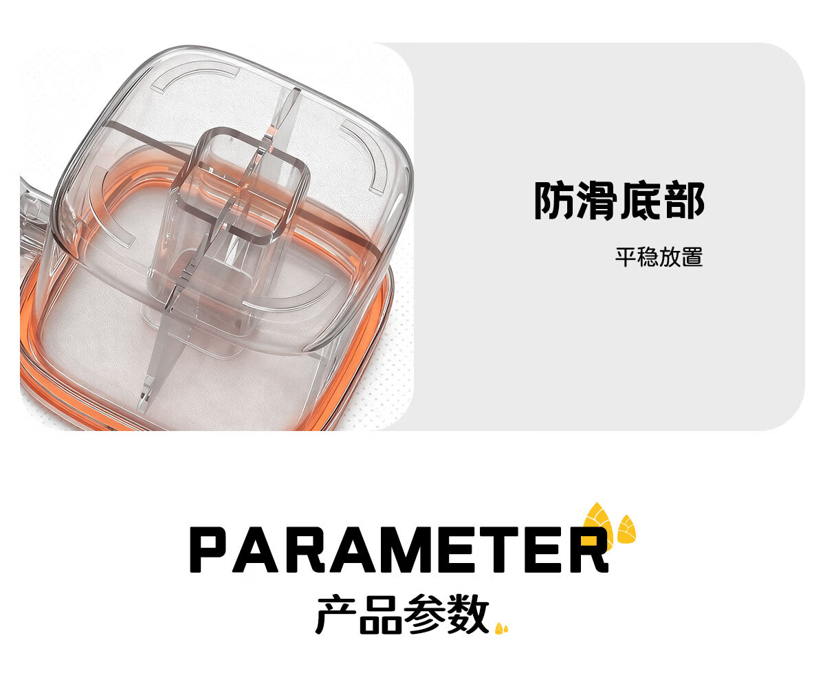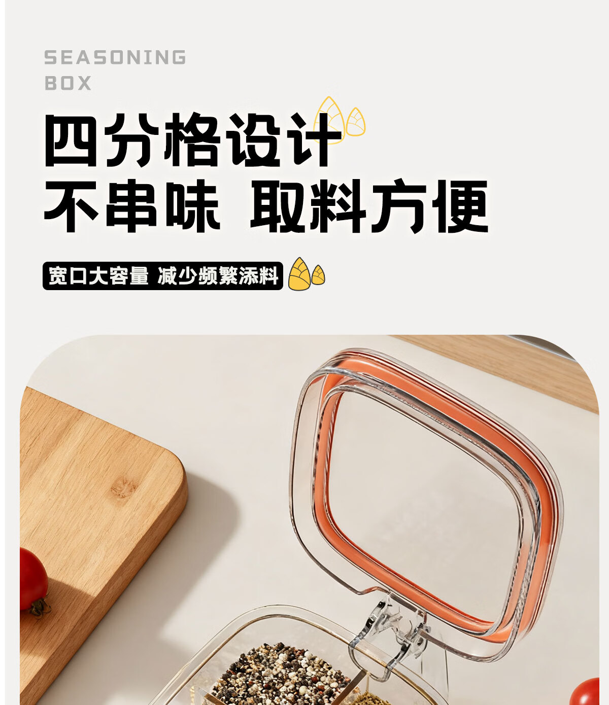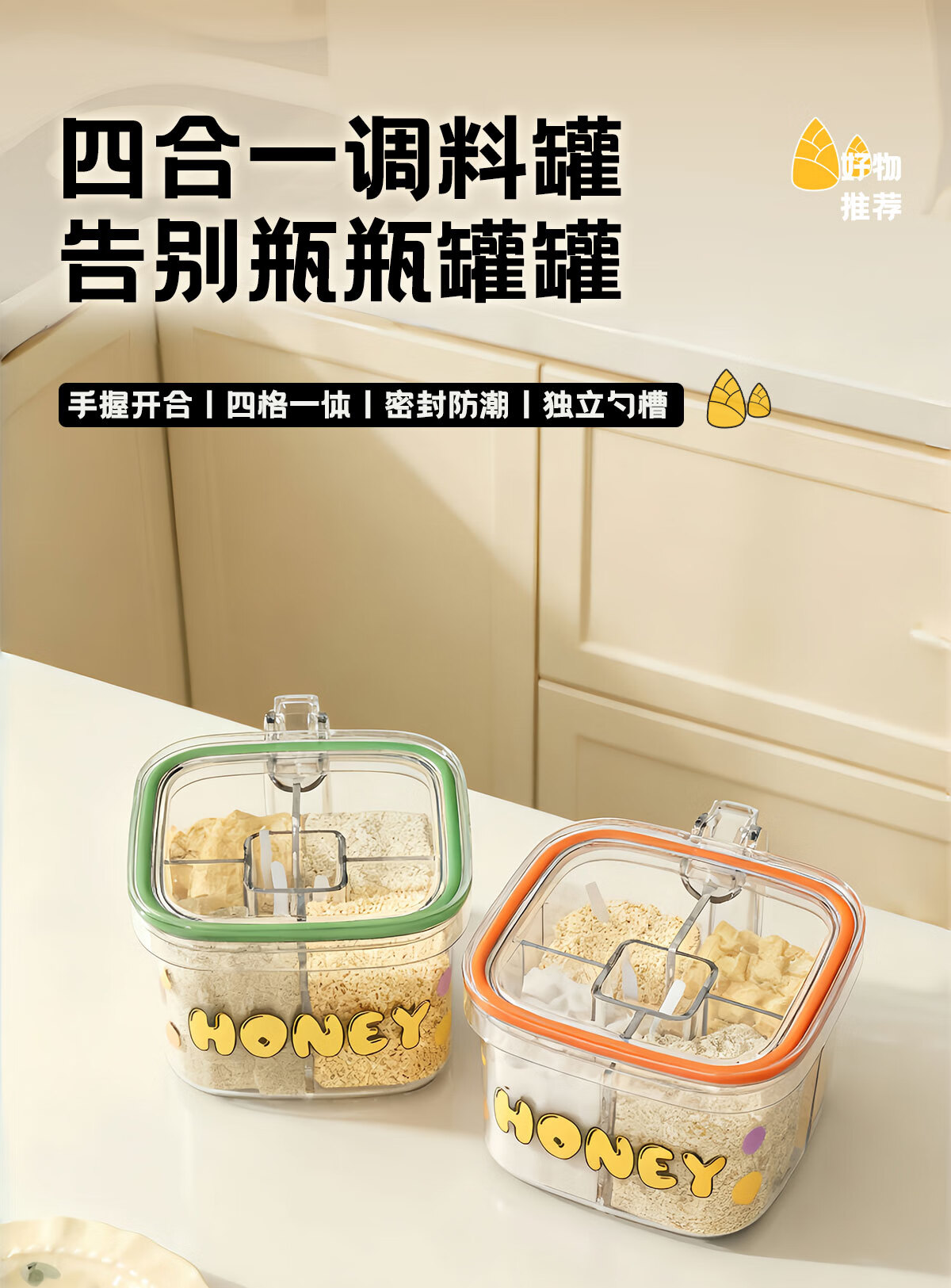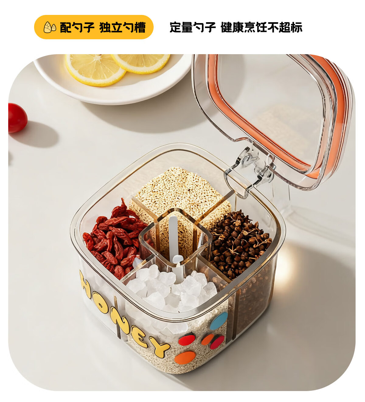 Hezhi seasoning box 4 combined salt shakers sealed transparent four-compartment large-capacity seasoning storage box kitchen double seal 4-in-1 striped dog orange single piece