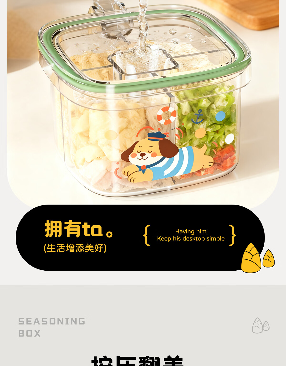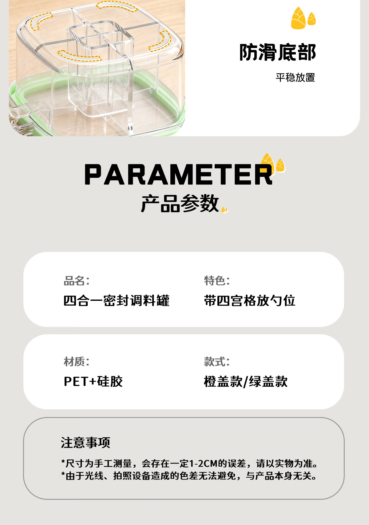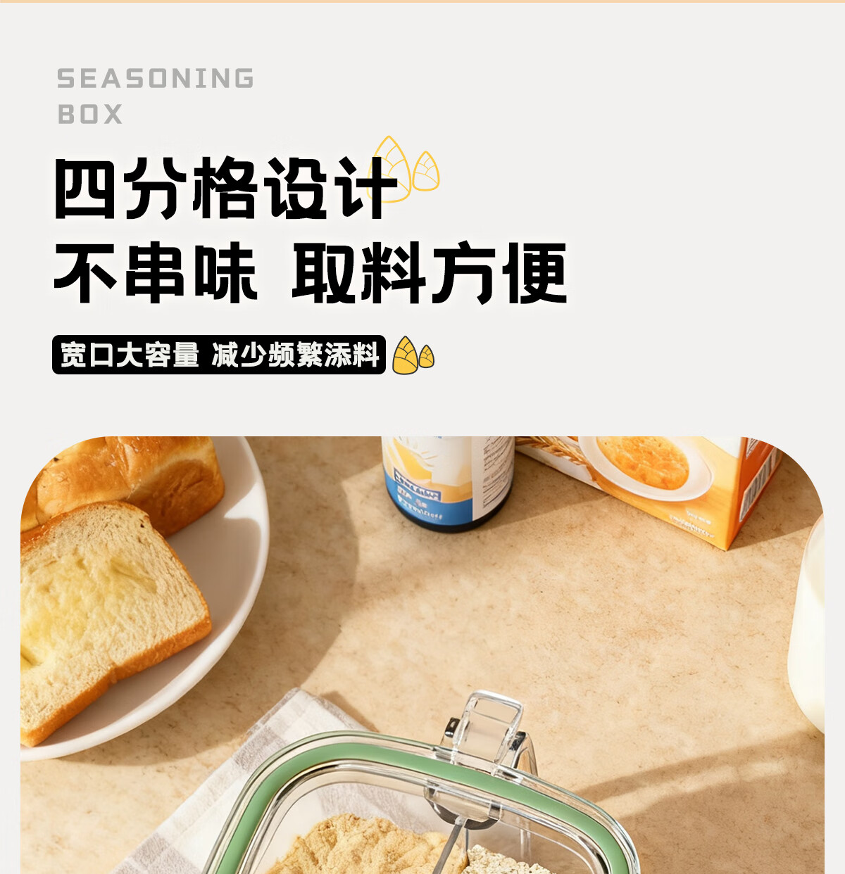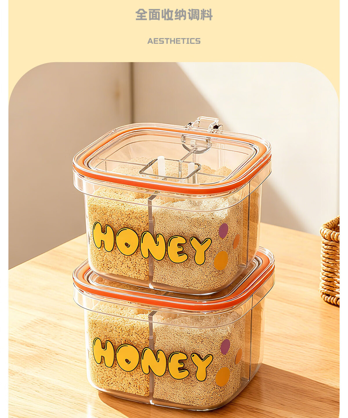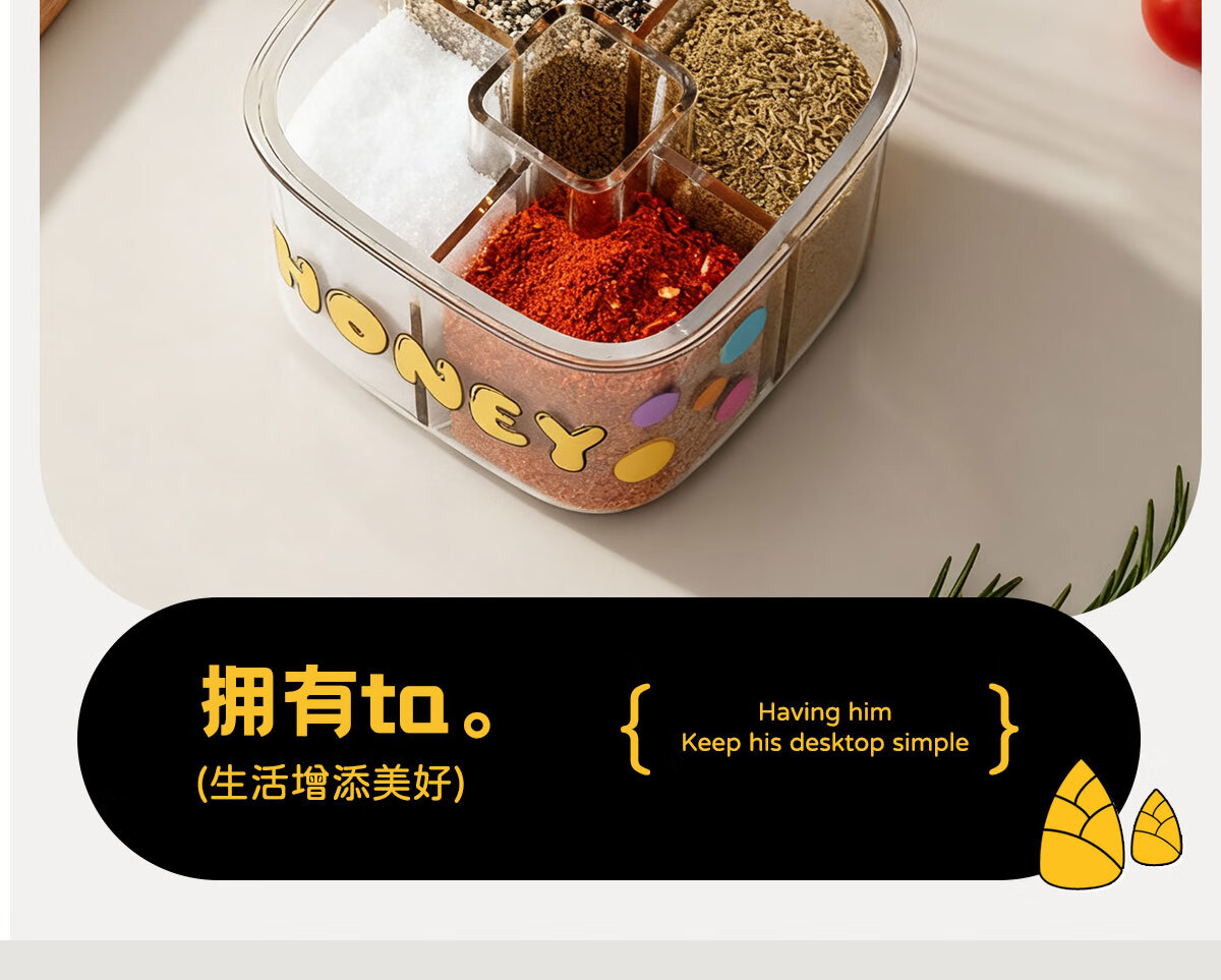 Hezhi seasoning box 4 combined salt shakers sealed transparent four-compartment large-capacity seasoning storage box kitchen double seal 4-in-1 striped dog orange single piece