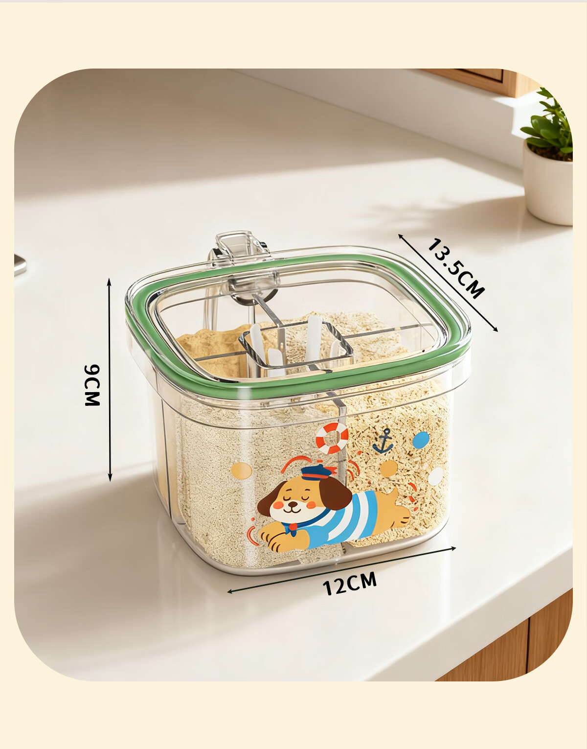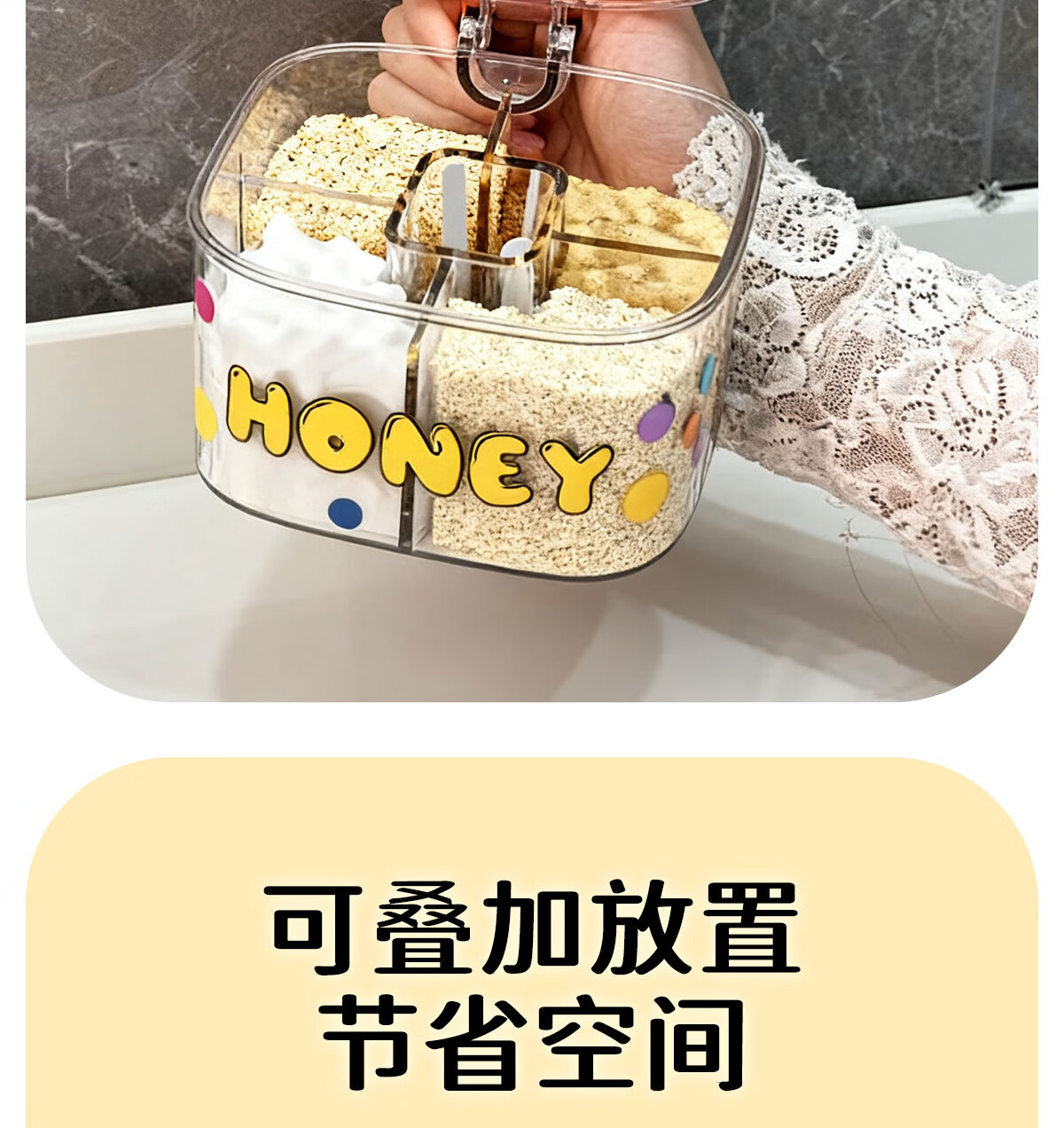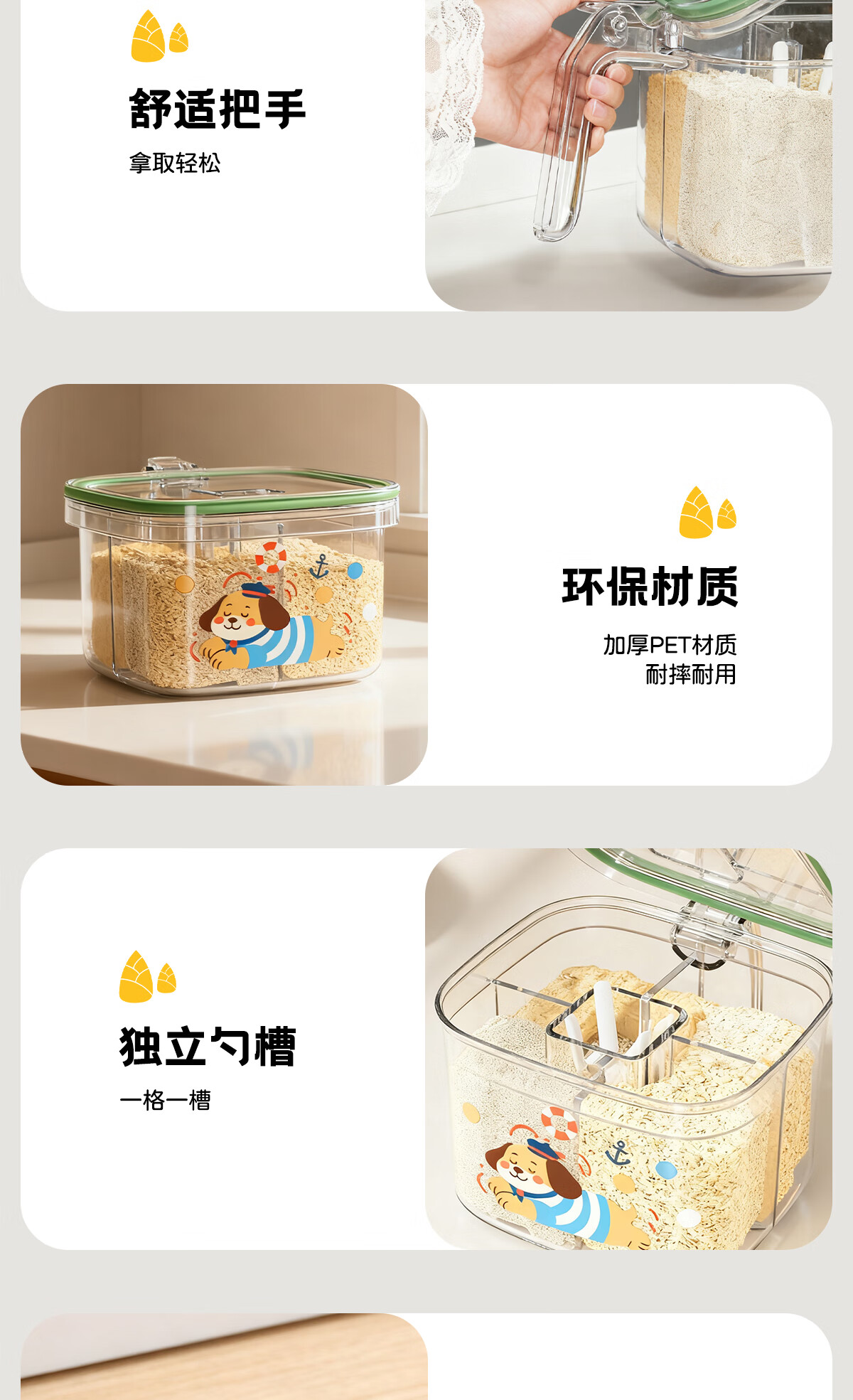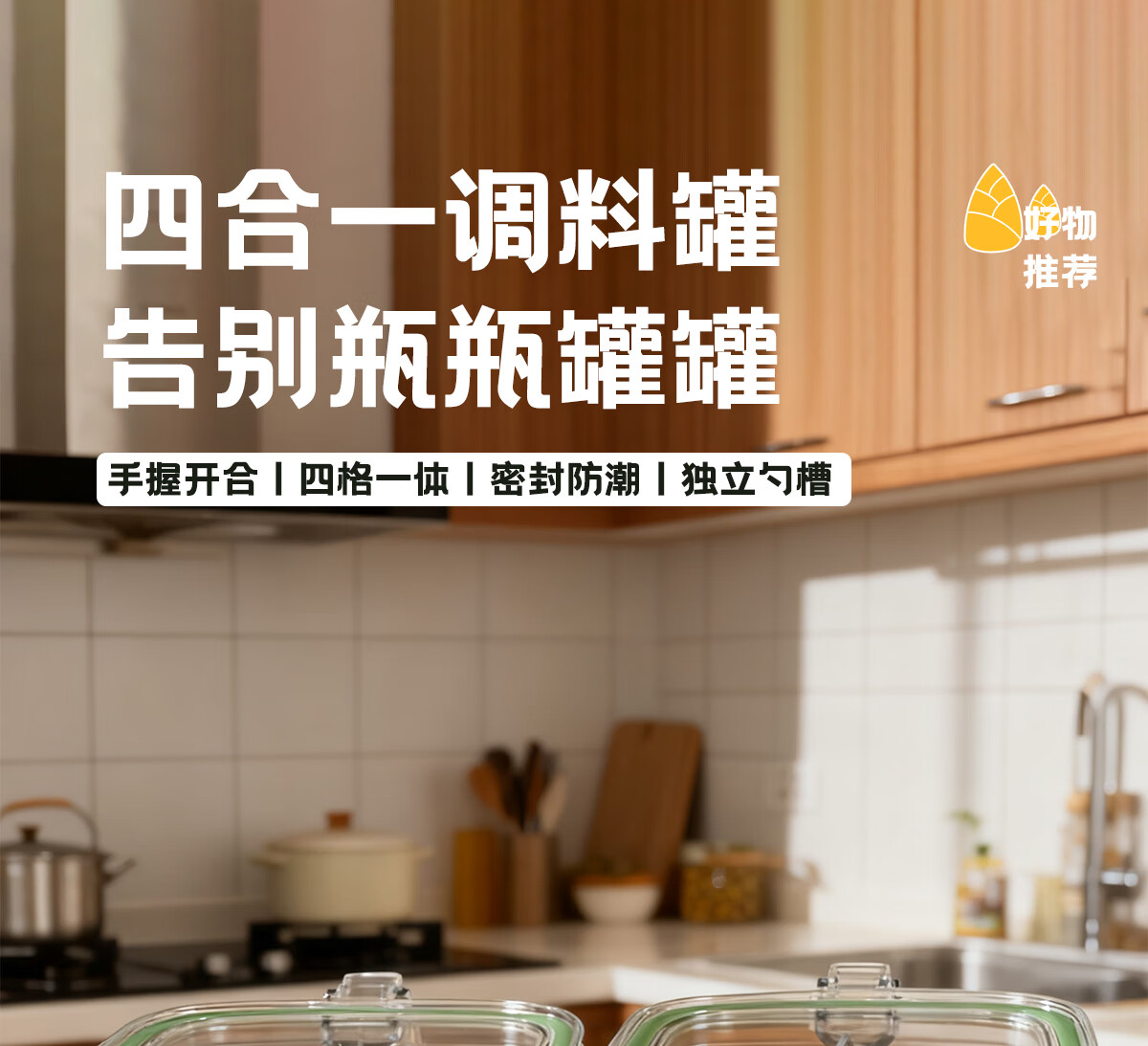 Hezhi seasoning box 4 combined salt shakers sealed transparent four-compartment large-capacity seasoning storage box kitchen double seal 4-in-1 striped dog orange single piece