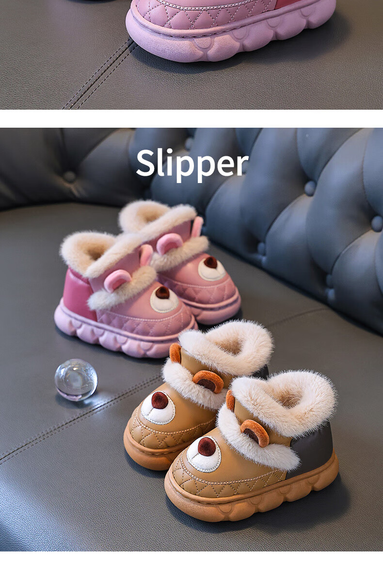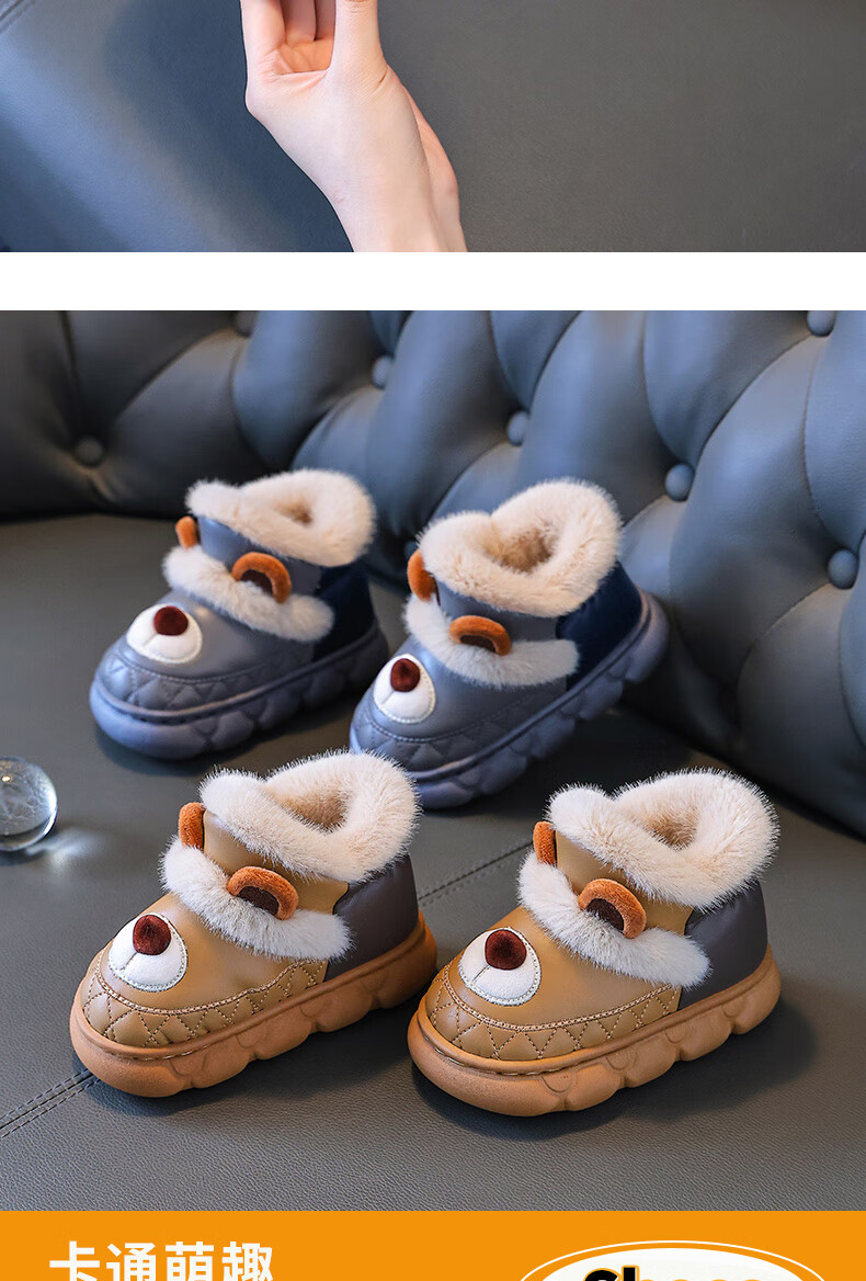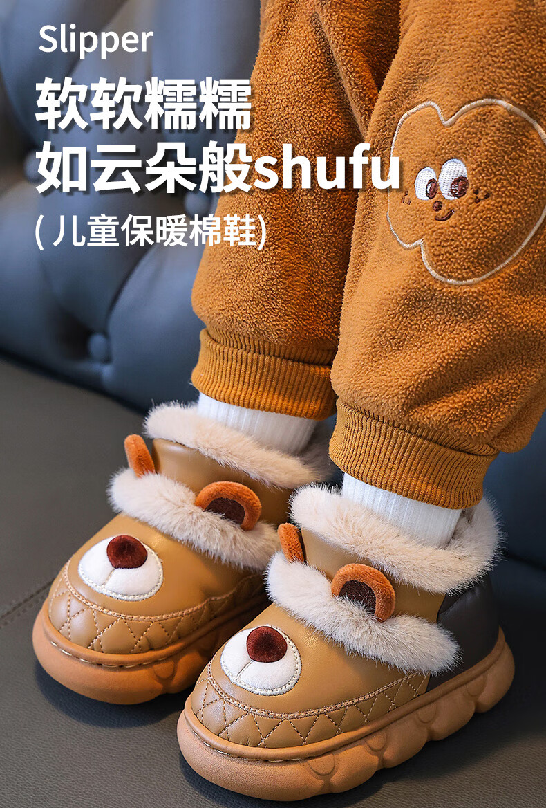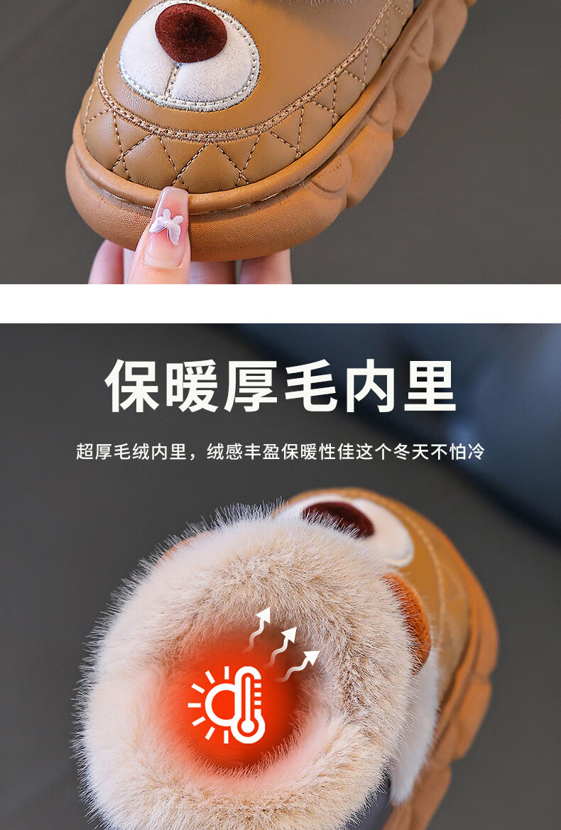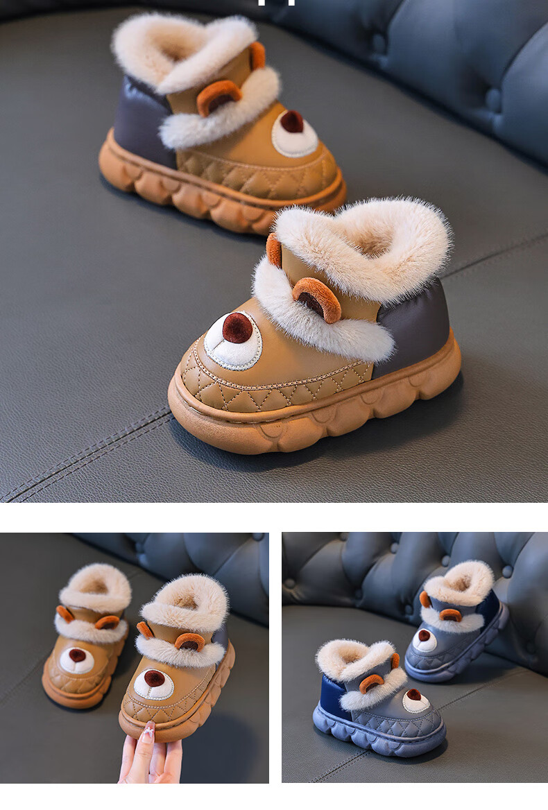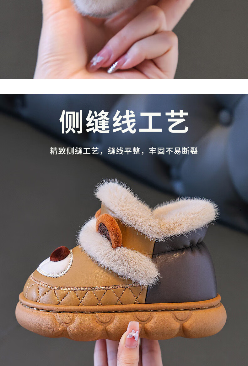 Winter children's cotton shoes 2025 new cartoon cute non-slip warm waterproof home outdoor baby cotton shoes coffee 15.5-24/25 inner length 15.5CM about 2-3 years old
