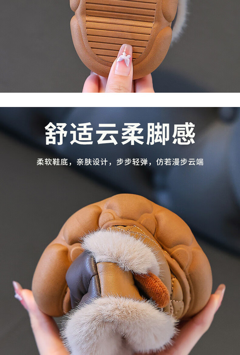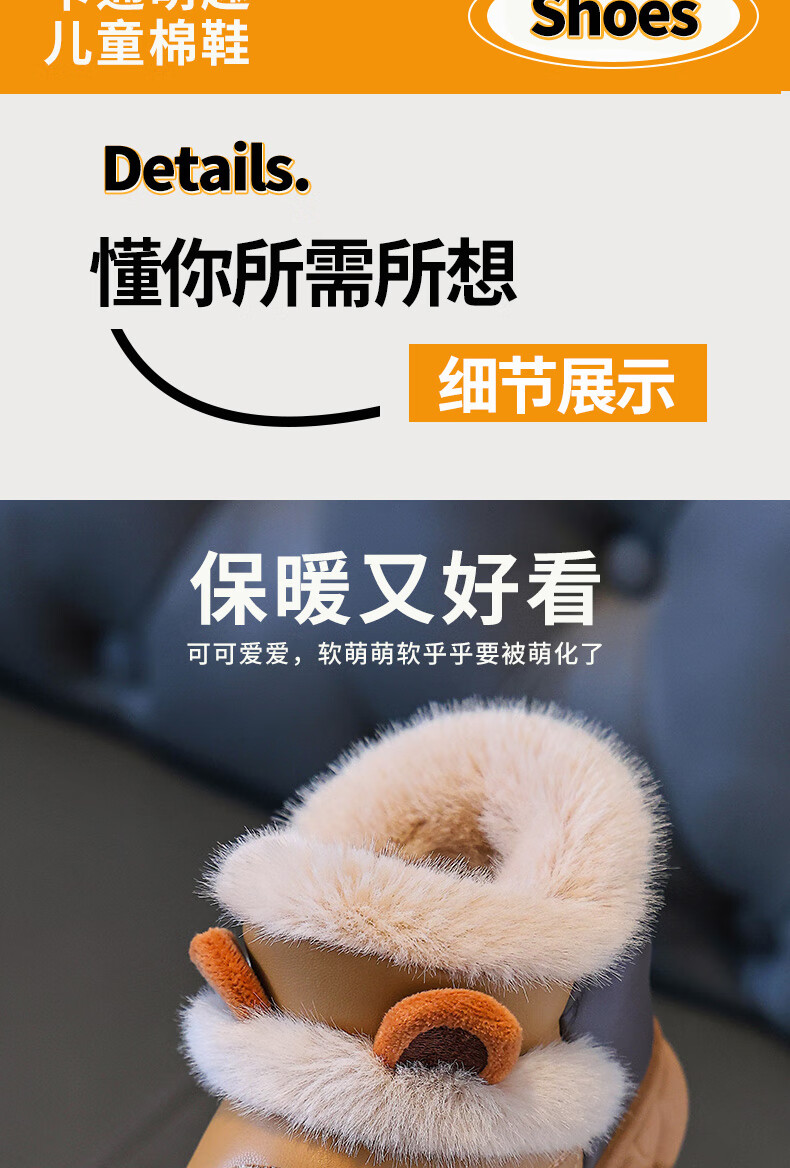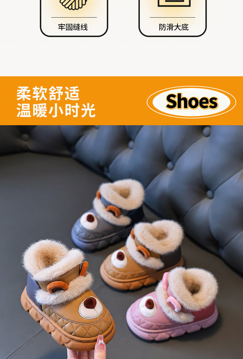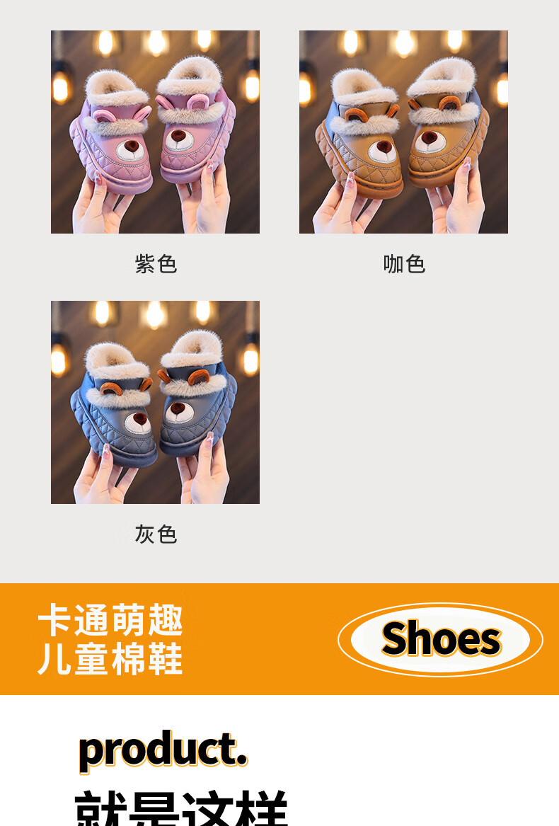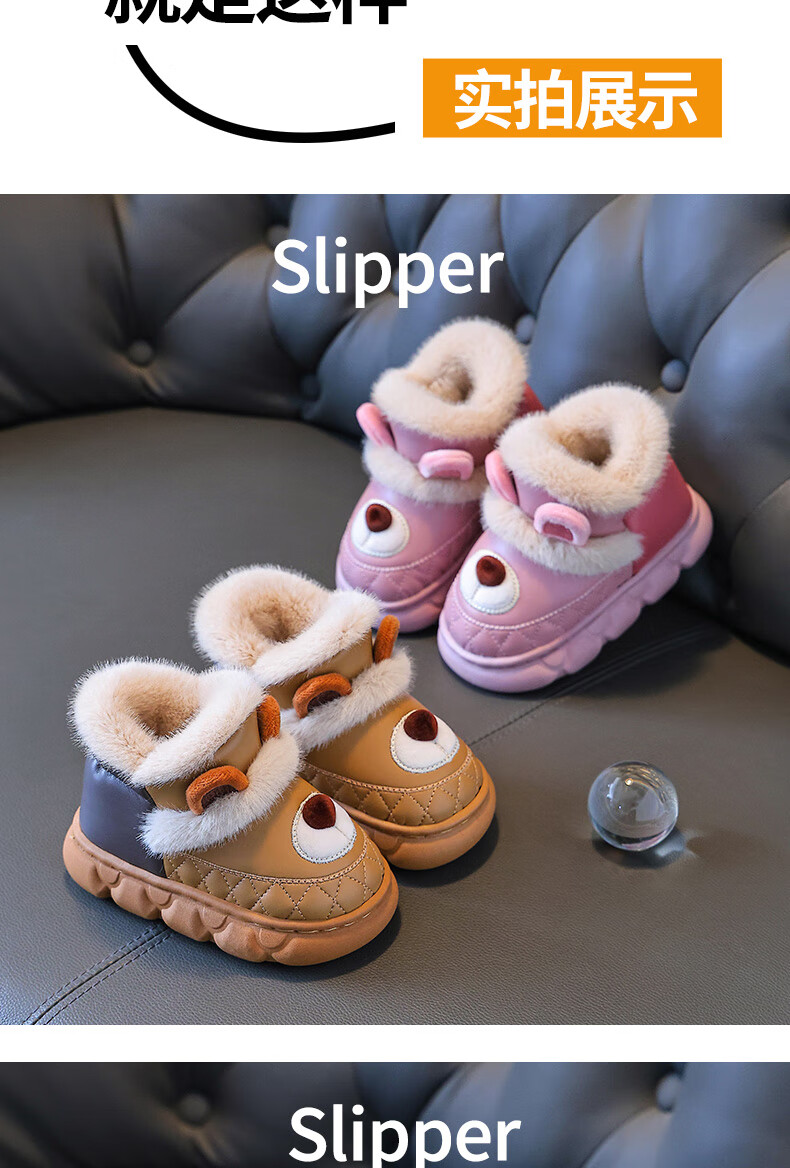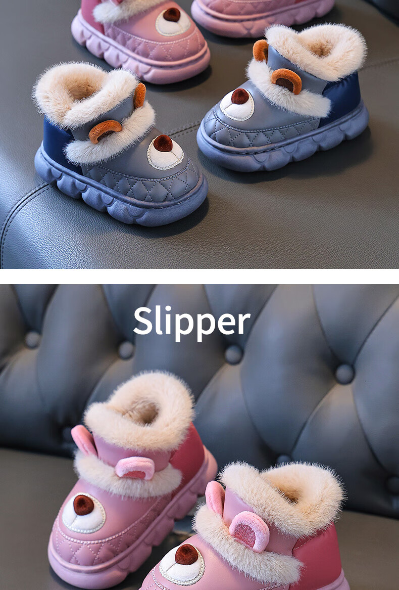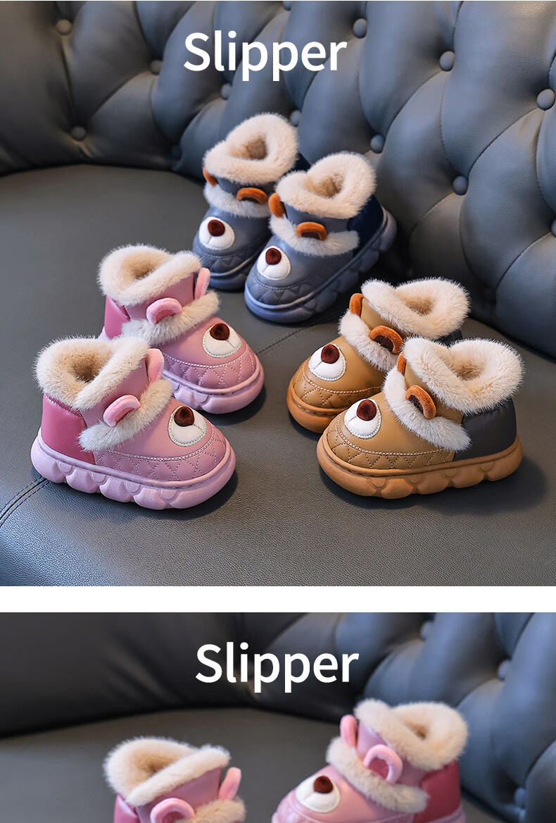 Winter children's cotton shoes 2025 new cartoon cute non-slip warm waterproof home outdoor baby cotton shoes coffee 15.5-24/25 inner length 15.5CM about 2-3 years old
