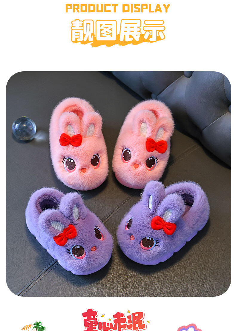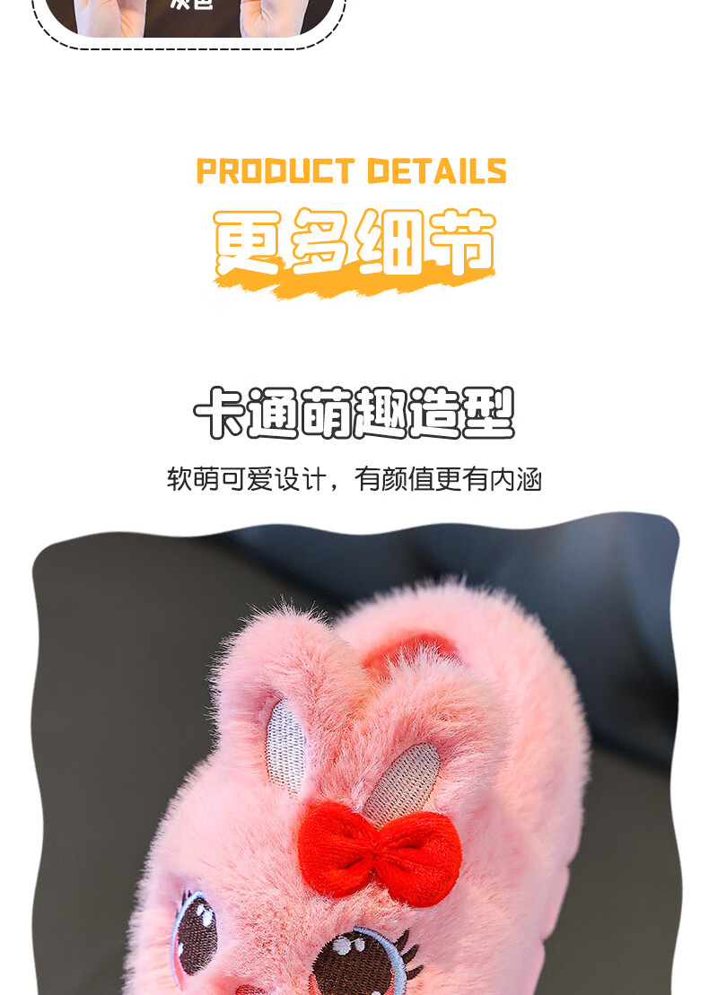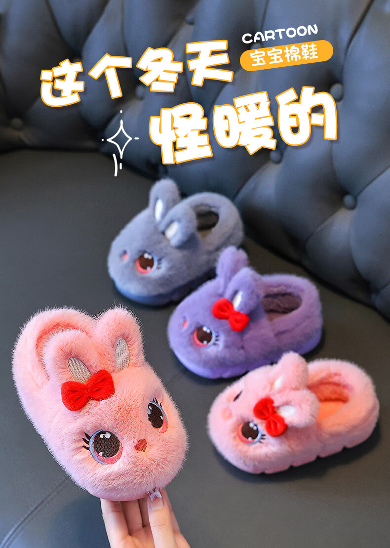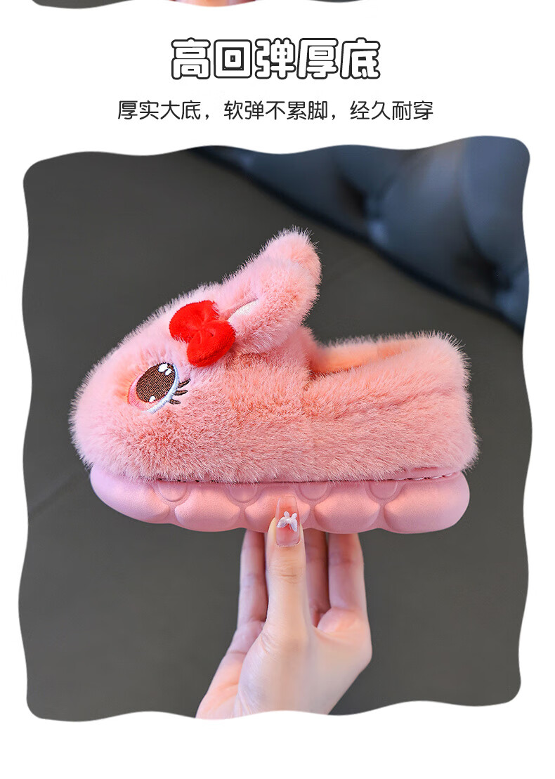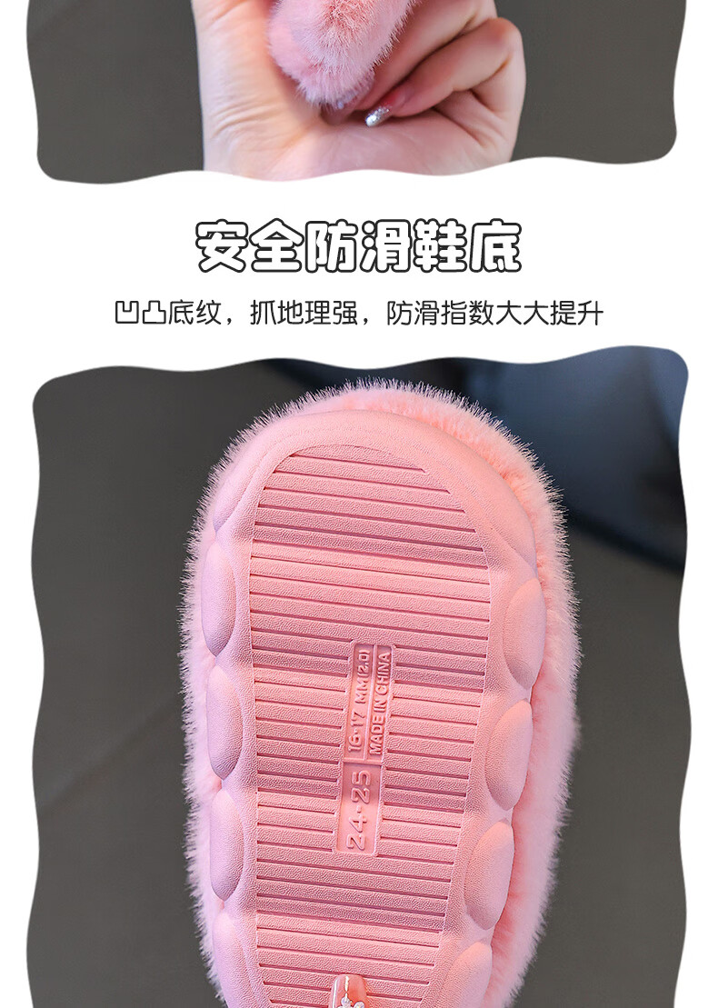 Children's cotton shoes winter 2025 girls cute cartoon princess warm furry shoes home indoor baby cotton slippers pink-heel 14.5-22/23 inner length 14.5CM about 1-2 years old