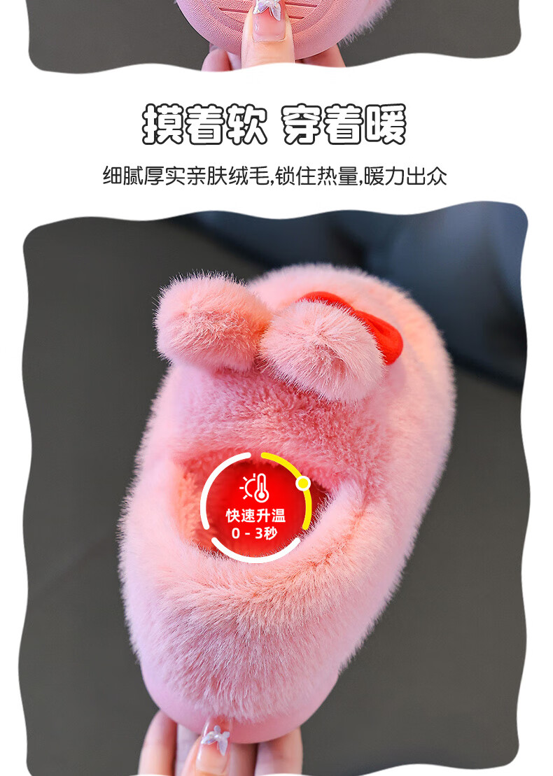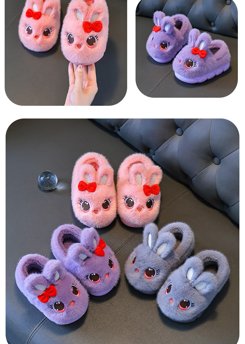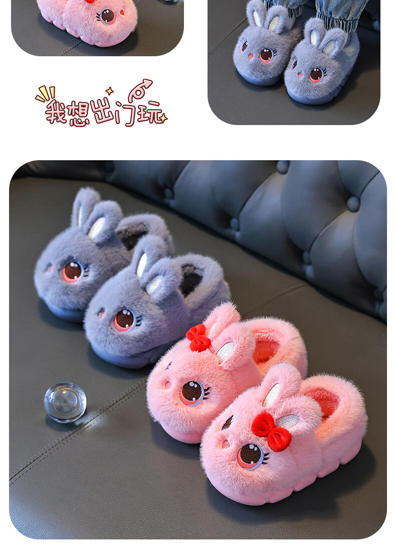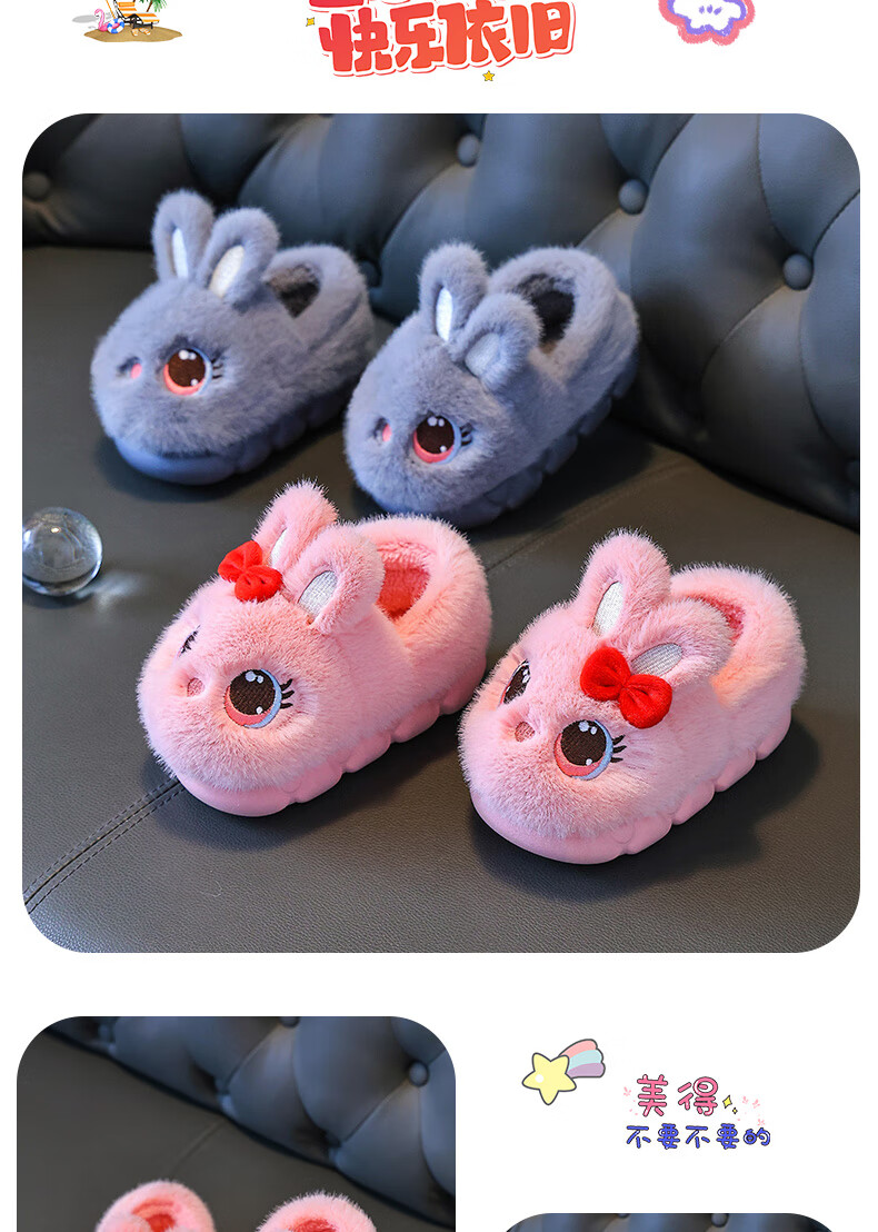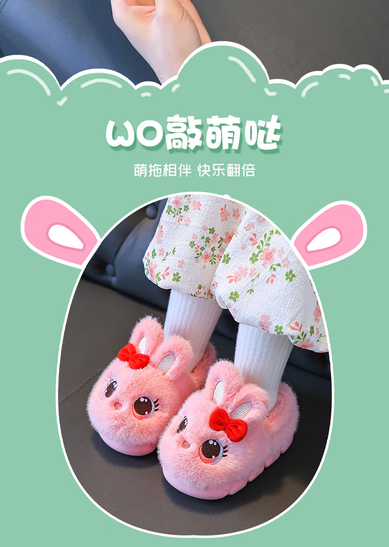 Children's cotton shoes winter 2025 girls cute cartoon princess warm furry shoes home indoor baby cotton slippers pink-heel 14.5-22/23 inner length 14.5CM about 1-2 years old