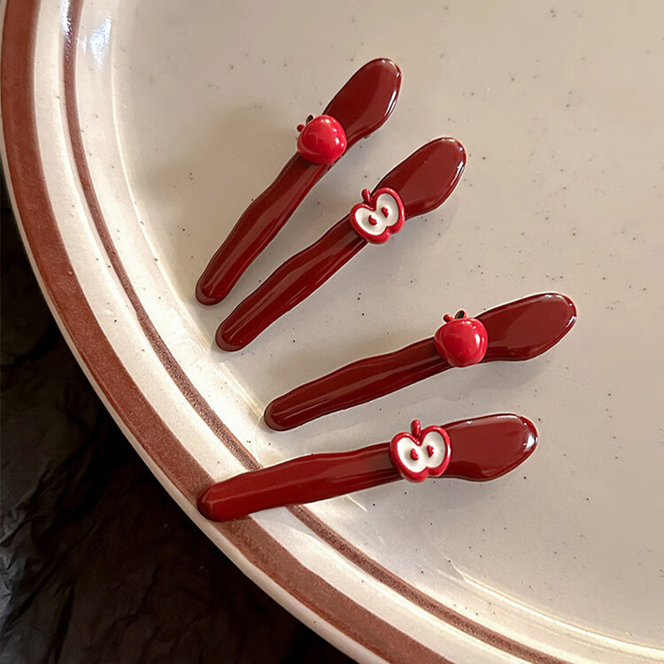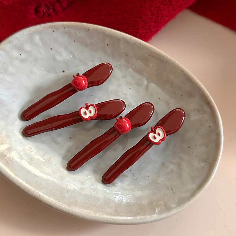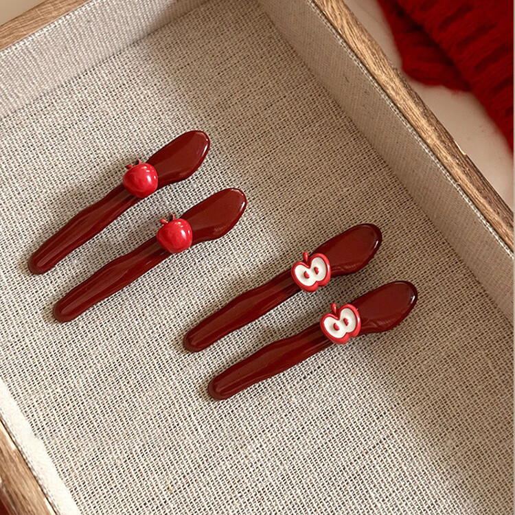 Anchor red apple hair clip for women's forehead side bangs clip for seamless broken hair duckbill one-word clip hair clip hair accessory burgundy apple bangs clip - front + back