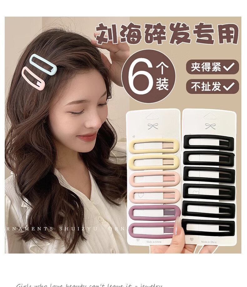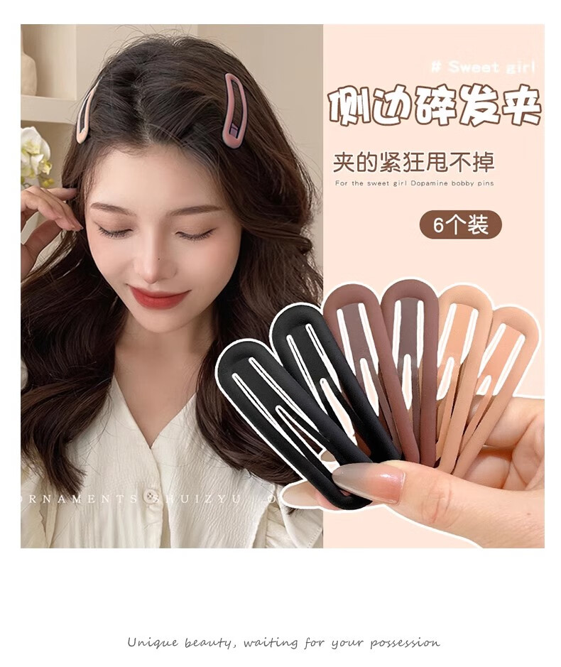 Frosted bb hair clip for women 2025 new style side clip for forehead broken hair bangs clip back of head clip headband hair clip main picture hot sale 6 pieces (90% buy me)