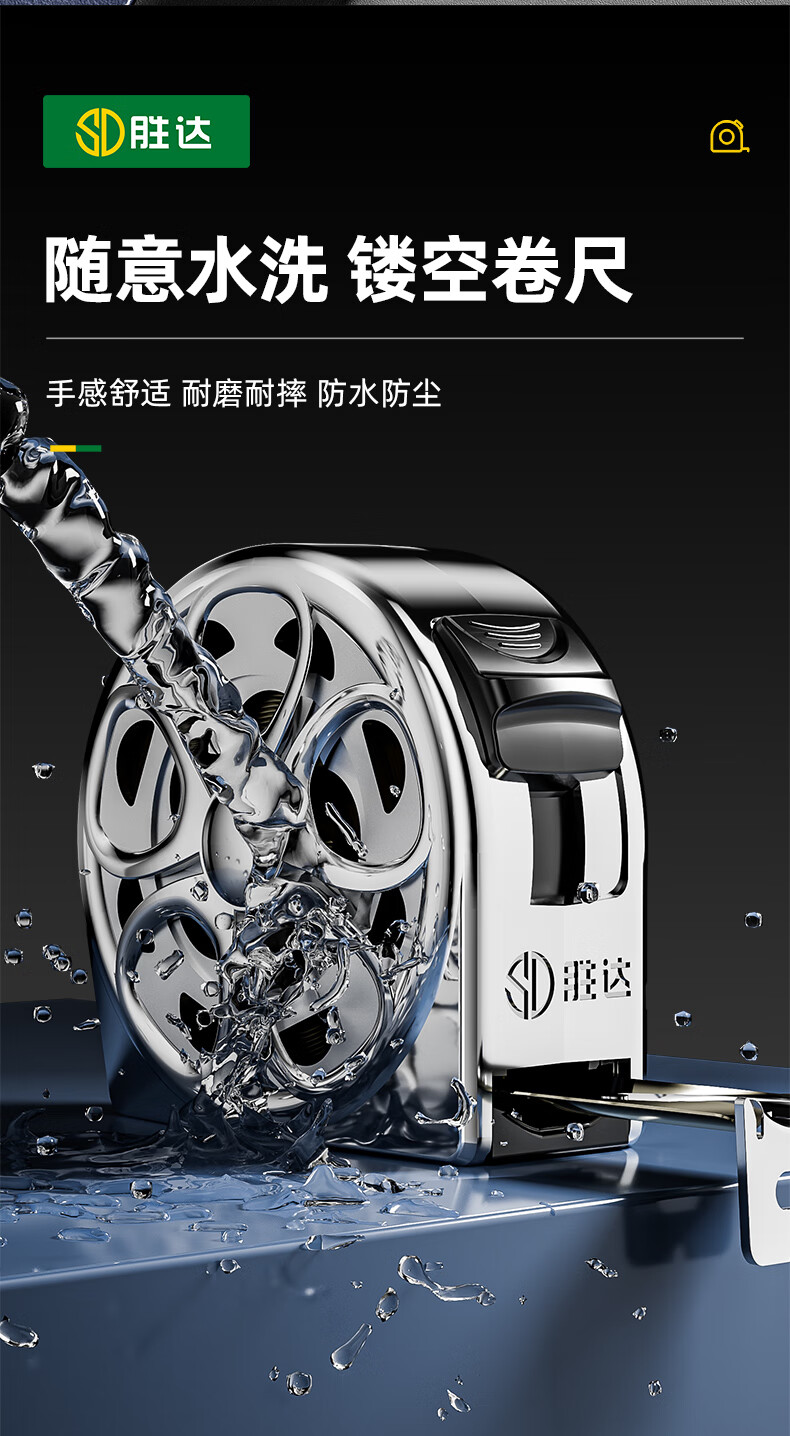 Shengda hollow tape measure designer high-end mini small tape measure 3 meters 5 meters decompression box ruler rust-proof, waterproof and anti-fouling bright silver double-sided frosted tape measure 3*16mm No Specifications