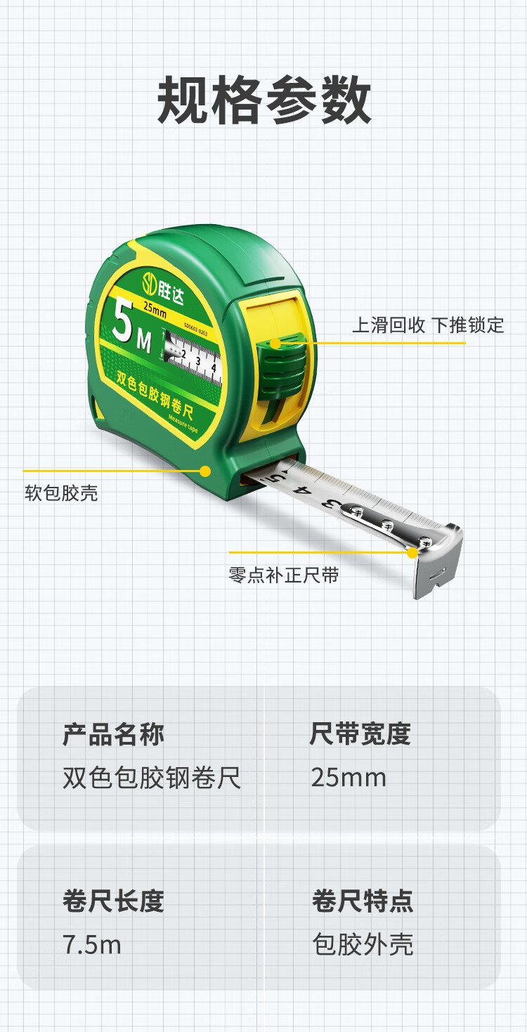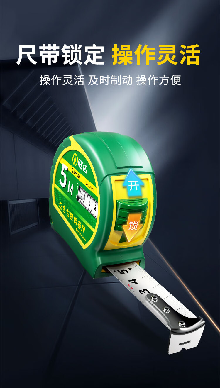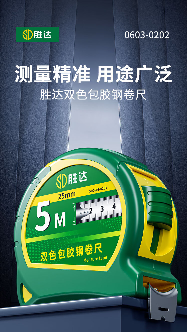 Tape measure 5 meters steel tape measure thickened and hardened wear-resistant and fall-proof household ruler box ruler high-precision ruler genuine double-bread tape tape 5m*25mm