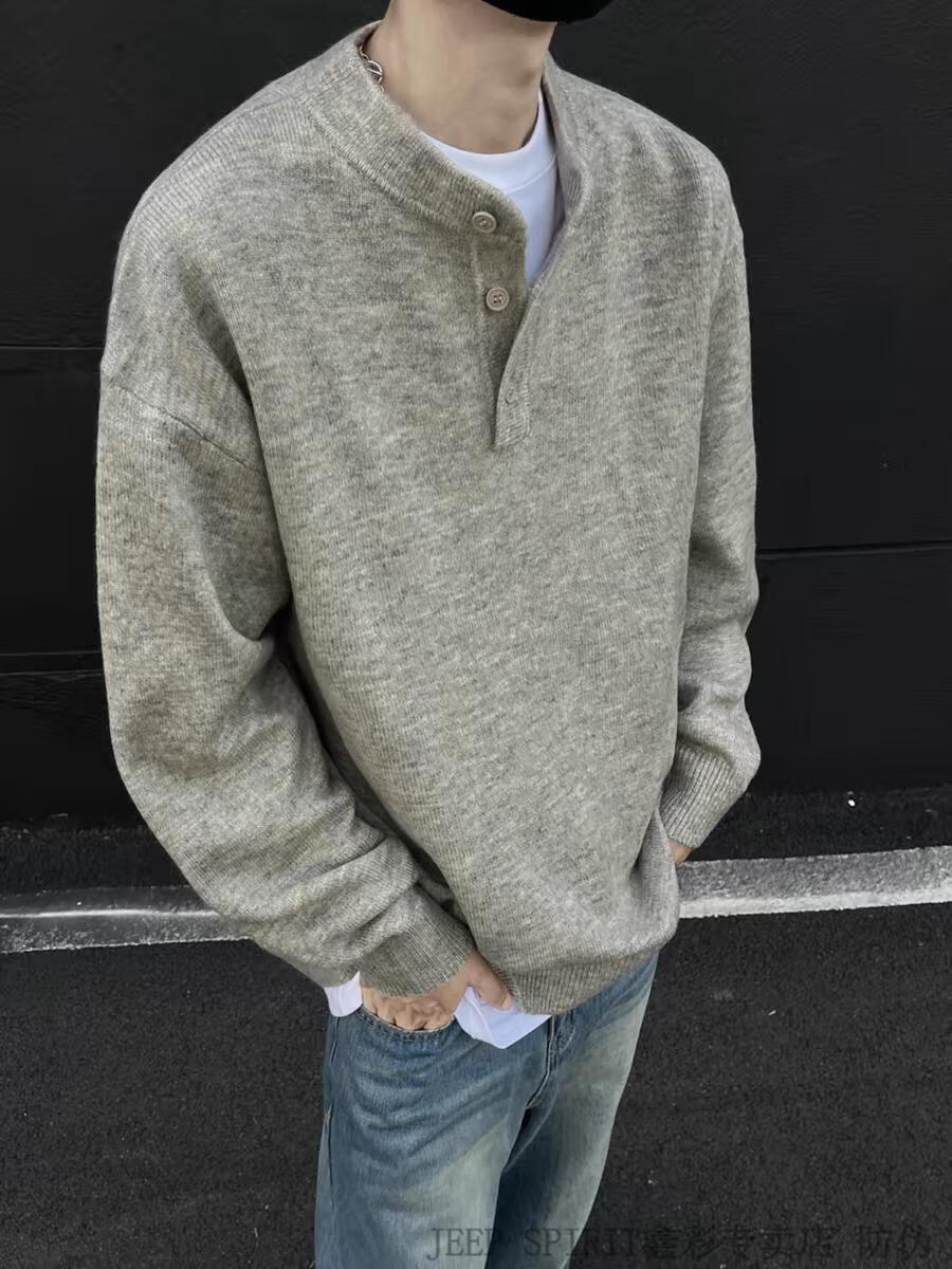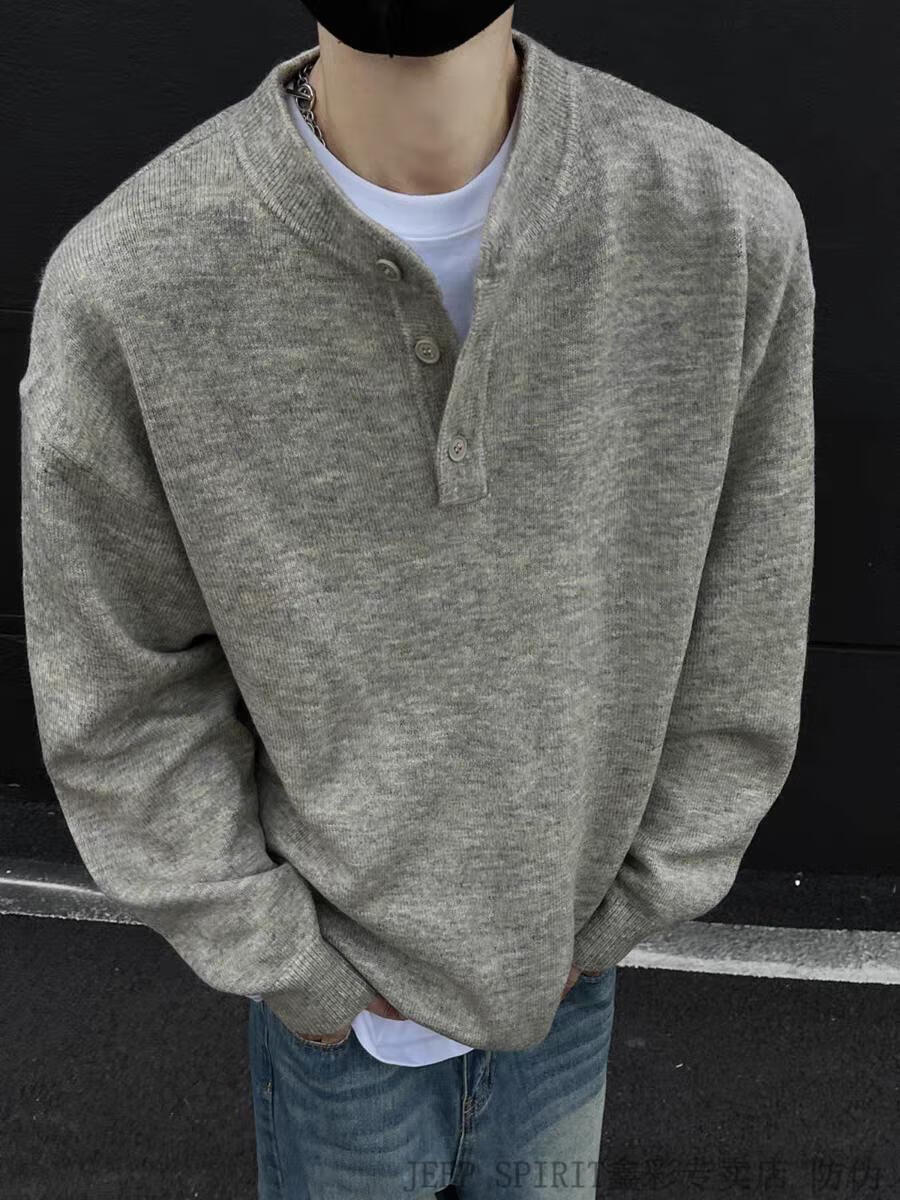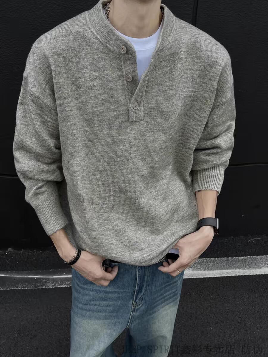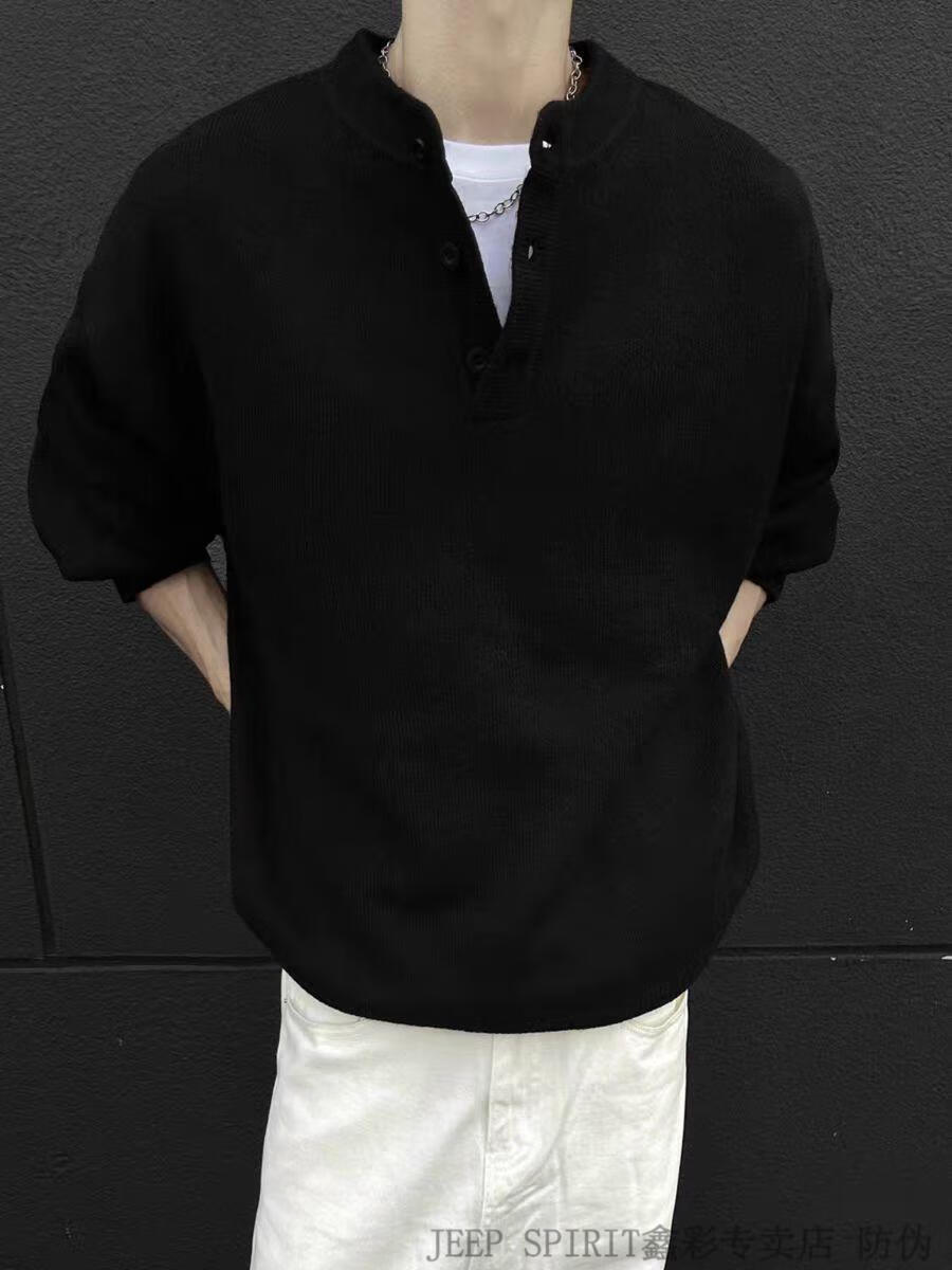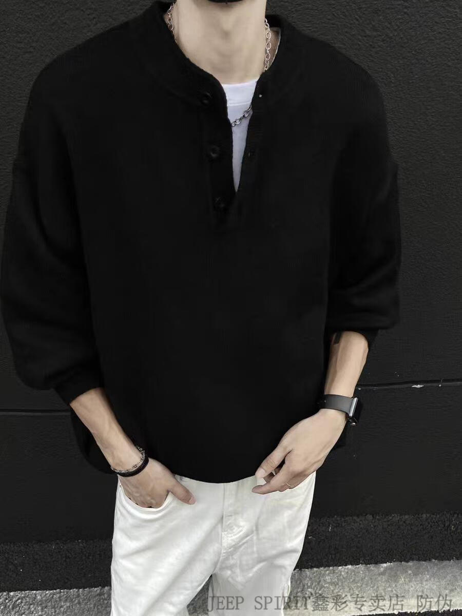 JEEP SPIRIT American Handsome Henley Collar Sweater Men's 2025 New Autumn and Winter Lazy Feeling Old Money Style Knitted Sweater Jacket Black M