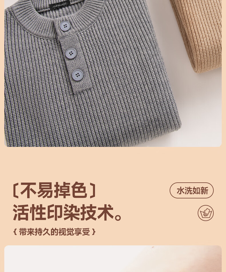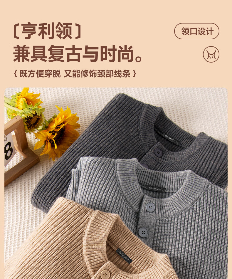 Jeanswest men's sweater winter American retro Henley collar sweater teenagers handsome versatile thickened dark gray top black (solid color) M (170) (full refund for quality issues within 30 days)