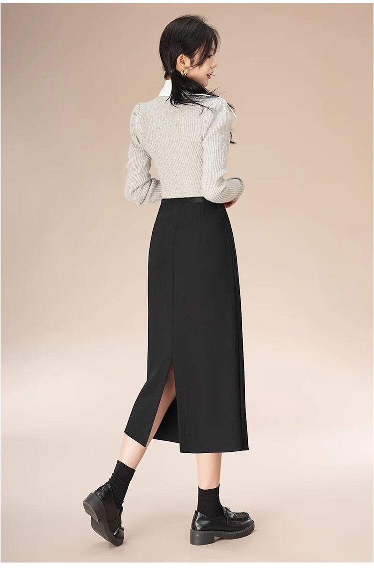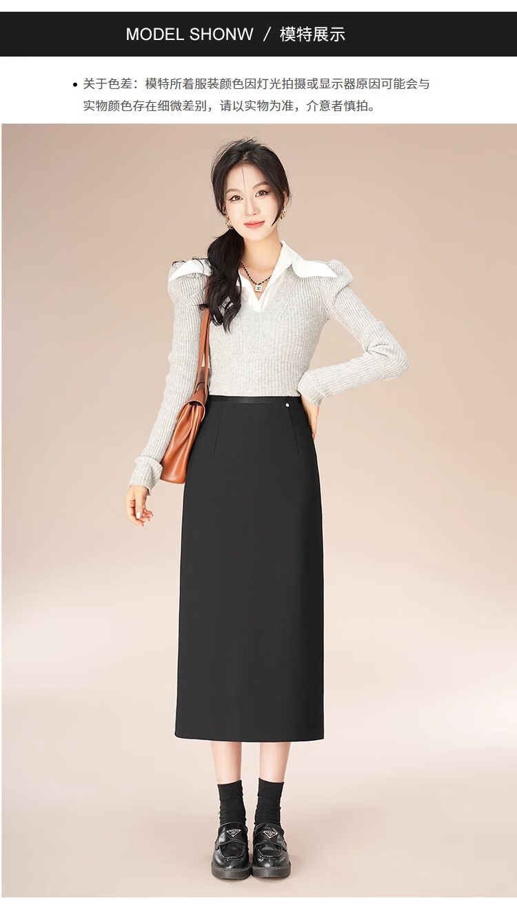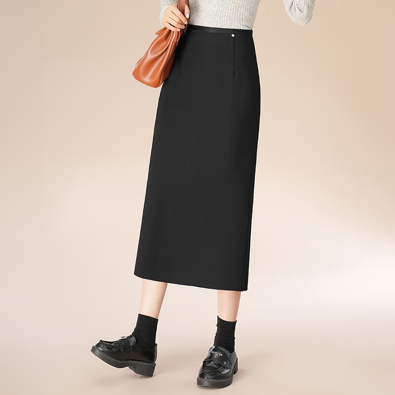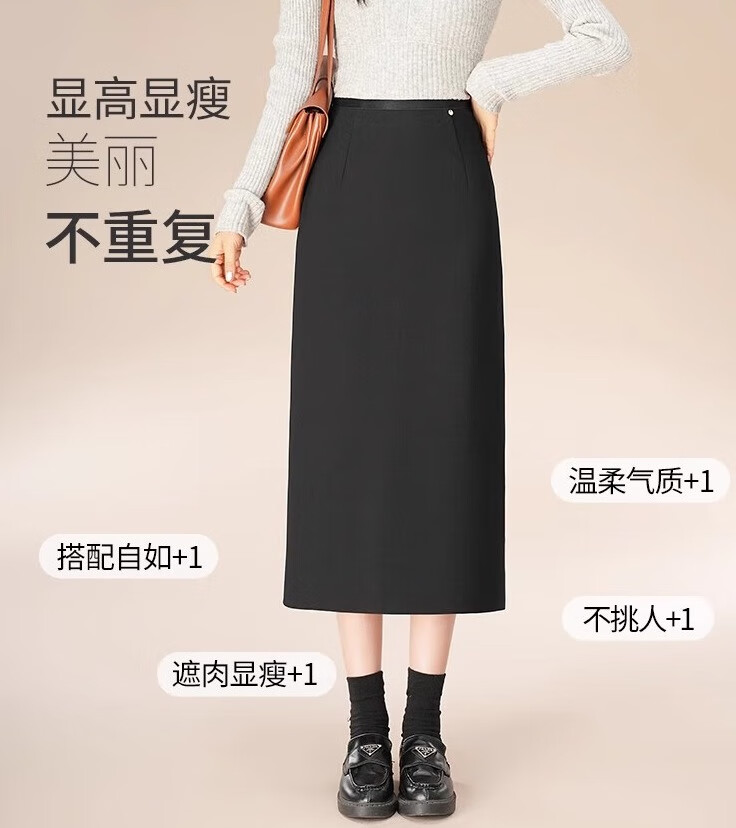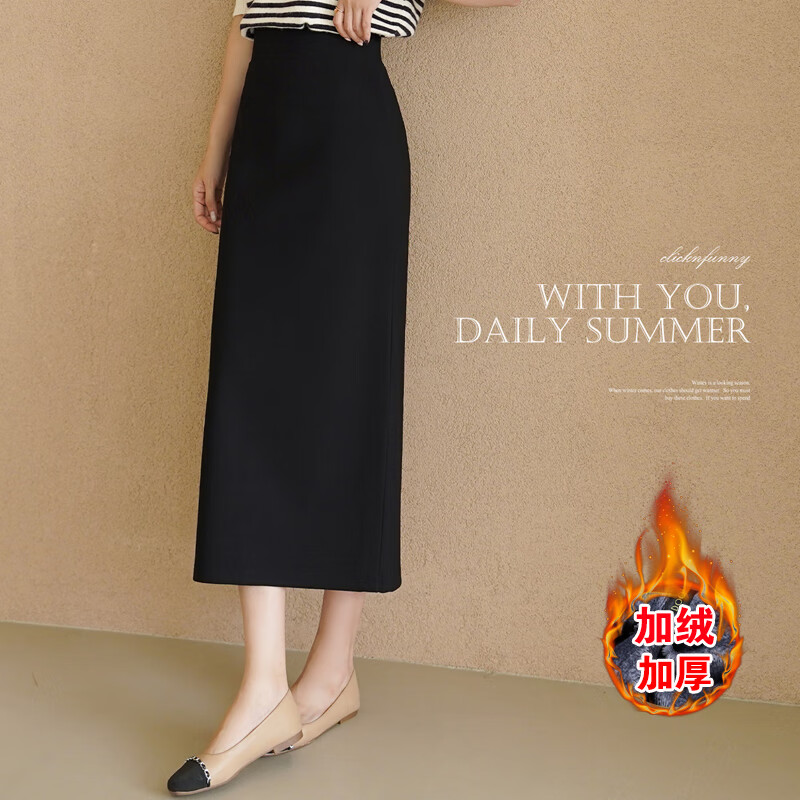 Short skirt for women with velvet and thickening temperament. Autumn rear slit for commuting. Versatile high-waisted skirt. Straight skirt. 158. Black. Velvet style for small people. Suitable height: 147-157CM. L recommended: 100-110. Jin is equal to 0.5 kg.
