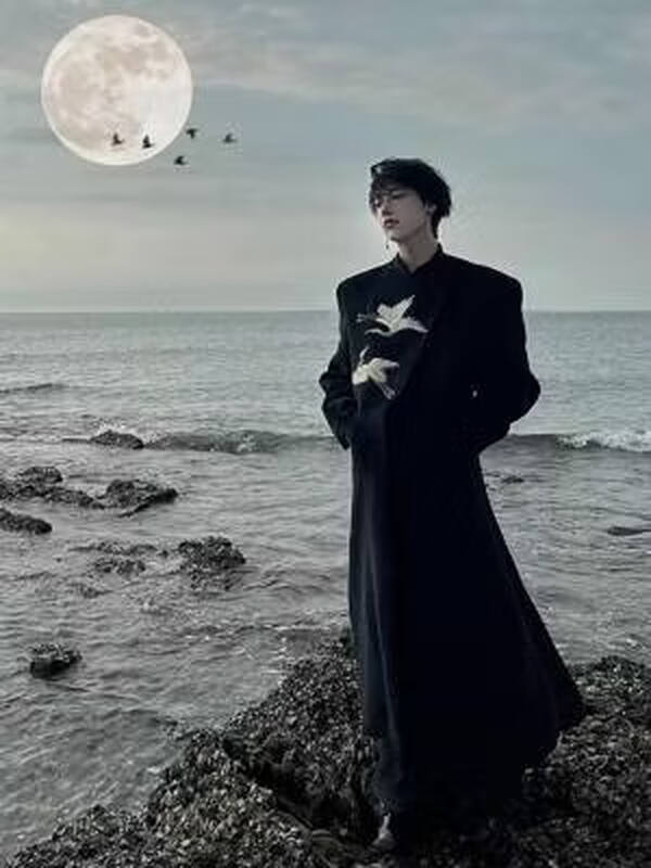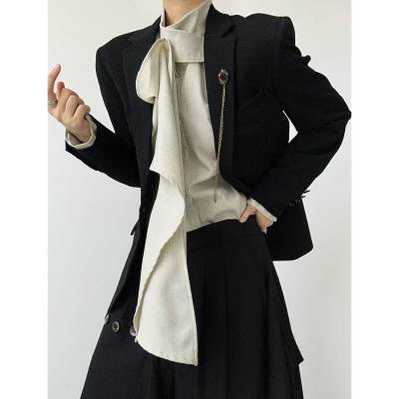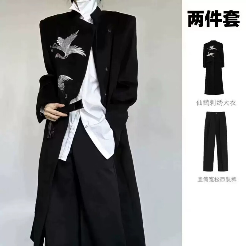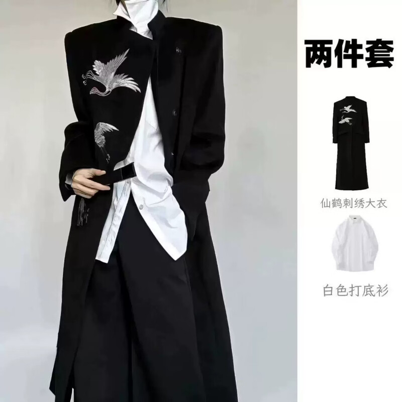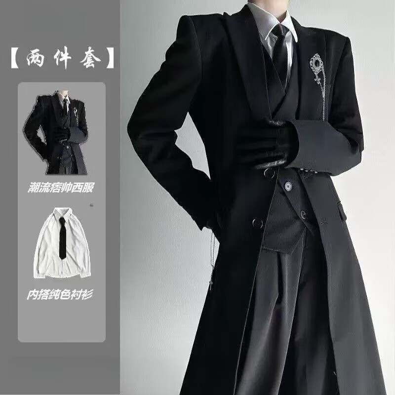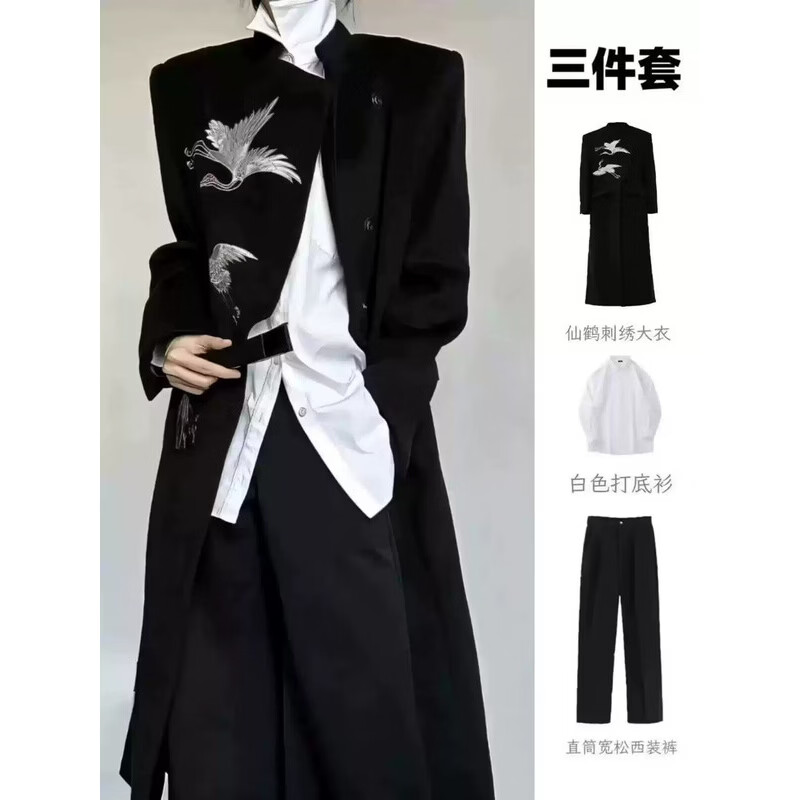 Riren returns to Yamamoto style long suit jacket for men and women, unisex style high-end black shoulder coat, windbreaker, men's suit, suit + white shirt tie + trousers, three-piece suit without brooch XL recommended 120-135 Jin Jin is equal to 0.5 kg