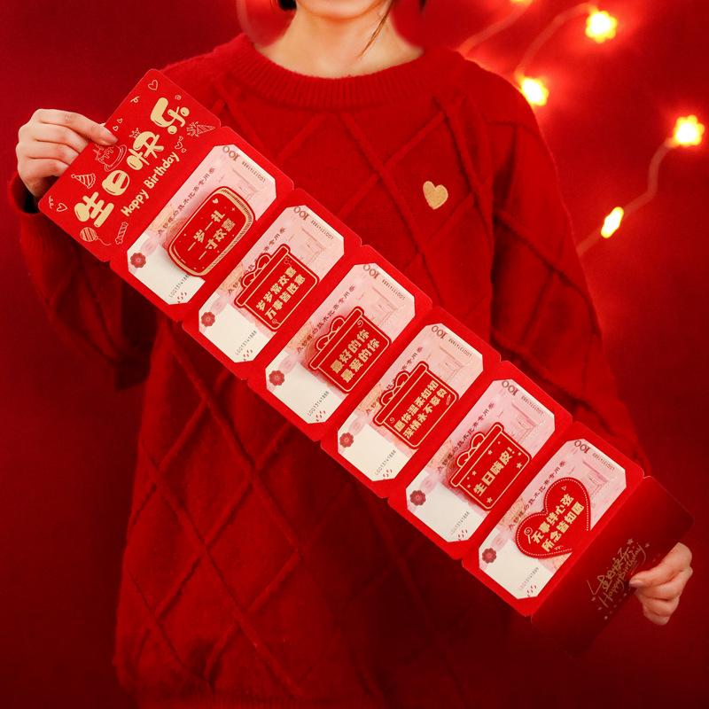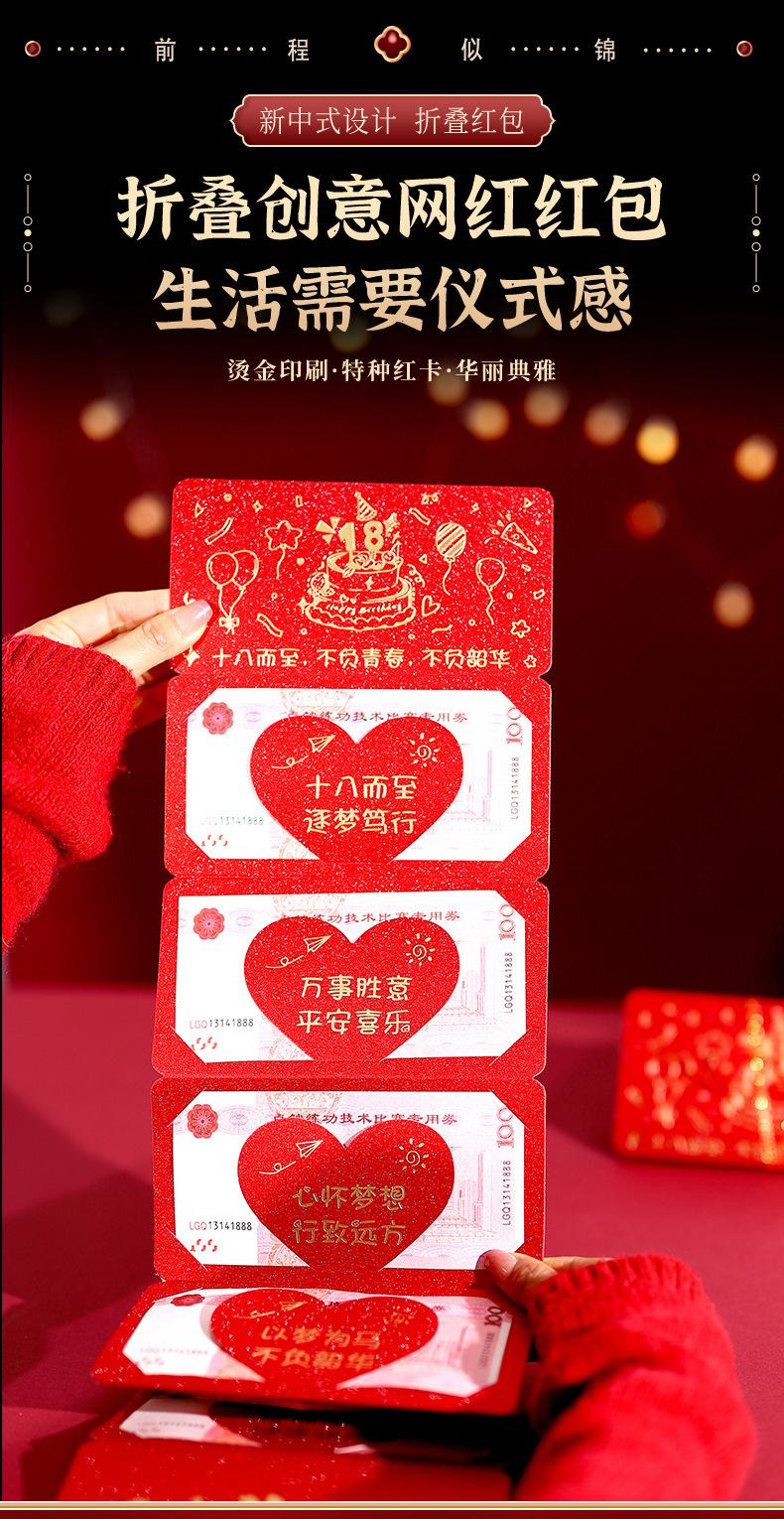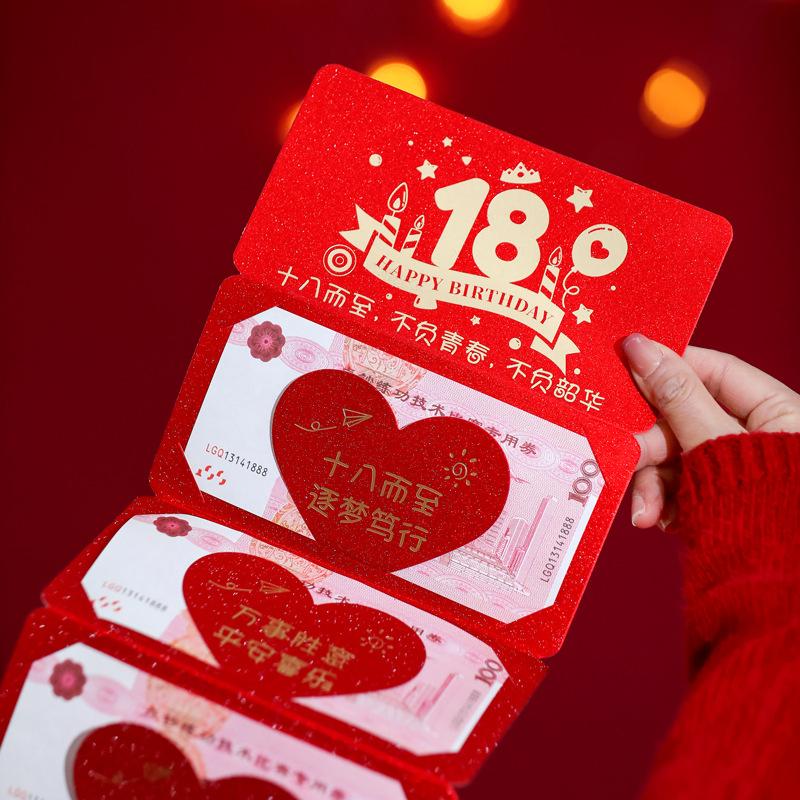 Coming-of-Age Red Packet Happy 18th Birthday Creative Folding Red Packet Birthday Wishes for Parents Stretching Ceremony 18-Year-Old Balloon Style - 6 Card Slots - Send Envelope - 1