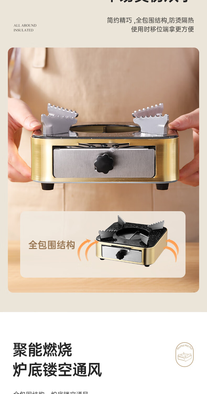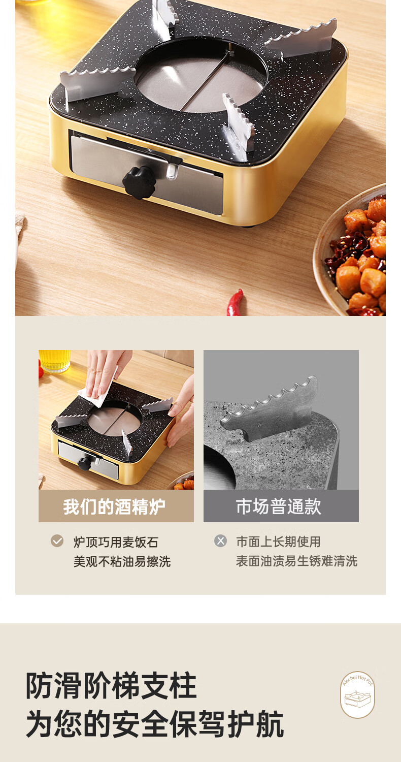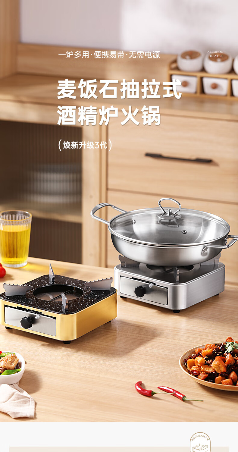 Solid alcohol stove dry pot pot small hot pot household special pot commercial drawer type stove base without portable pull-out alcohol stove 18cm