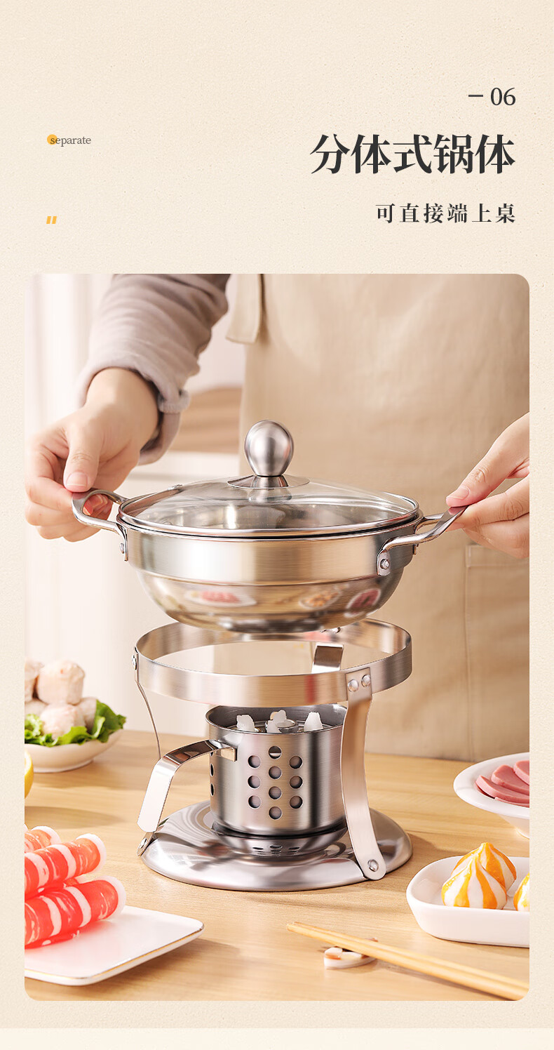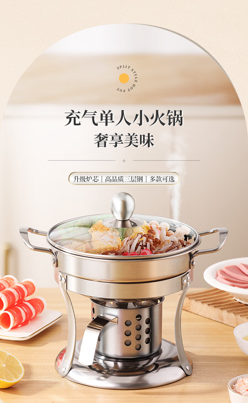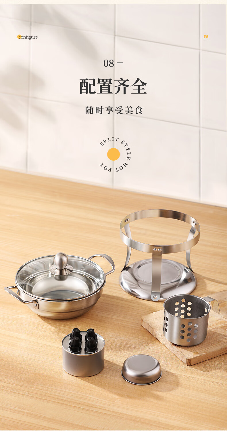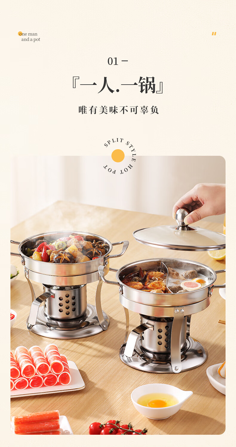 Small hot pot for one person, alcohol stove for one person, commercial Yuanyang boiler, soup pot, household stainless steel pot, outdoor stainless steel Jiuding stove (no fuel) + single flavor pot 17cm