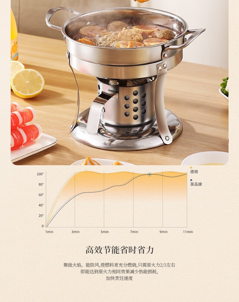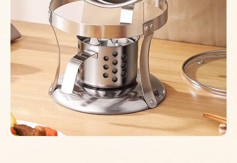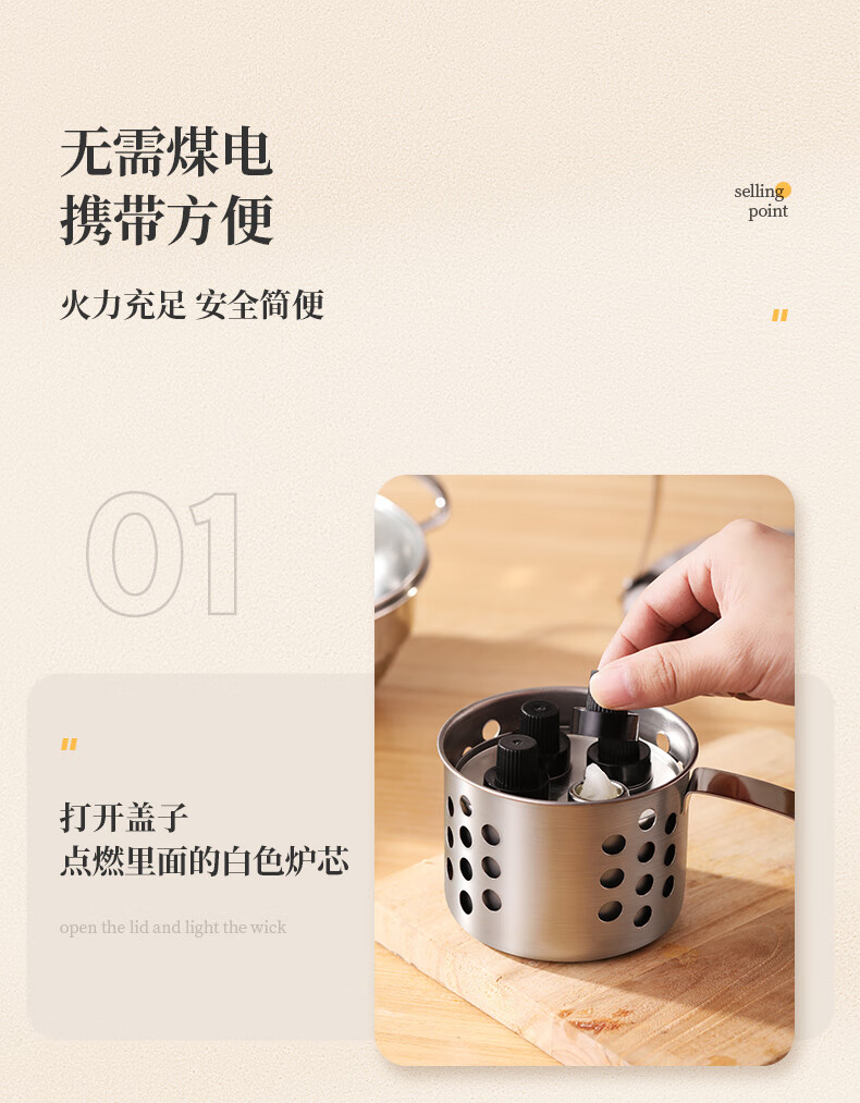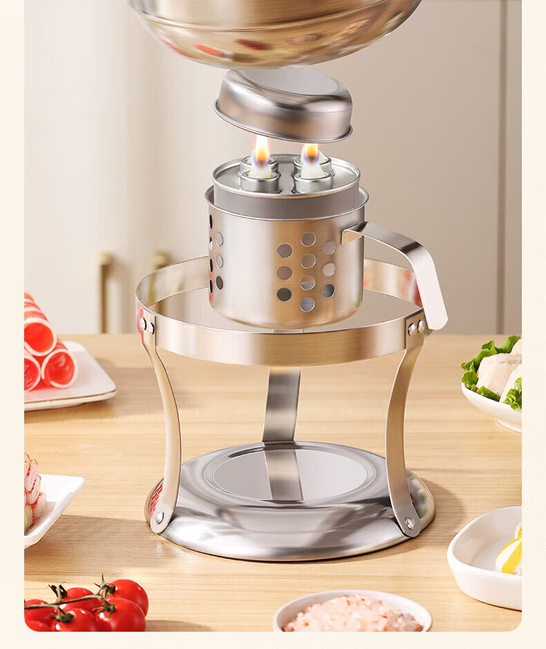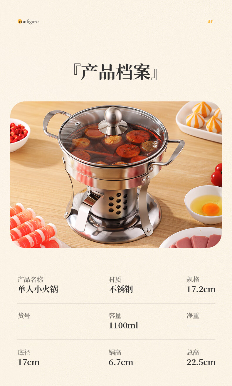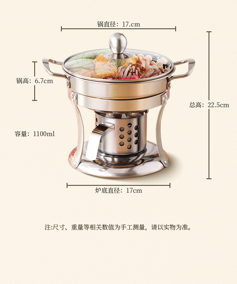 Small hot pot for one person, alcohol stove for one person, commercial Yuanyang boiler, soup pot, household stainless steel pot, outdoor stainless steel Jiuding stove (no fuel) + single flavor pot 17cm