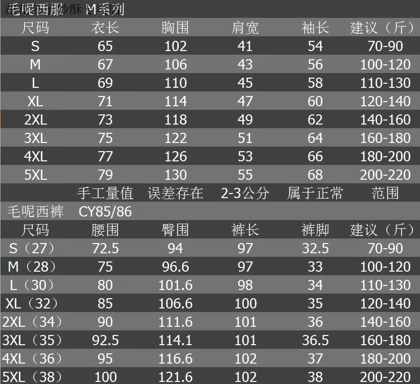 China (cm) 160-165/84-86 165-170 / 88-90 167-172 / 92-96 168-173 / 98-102 170-176 / 106-110