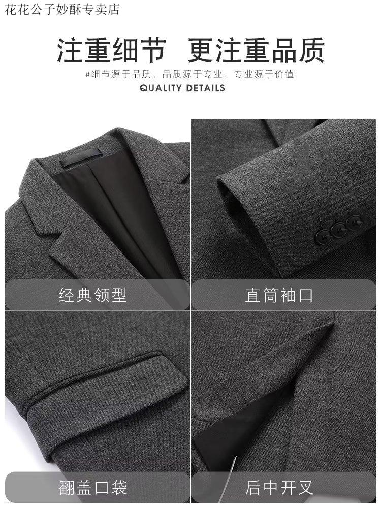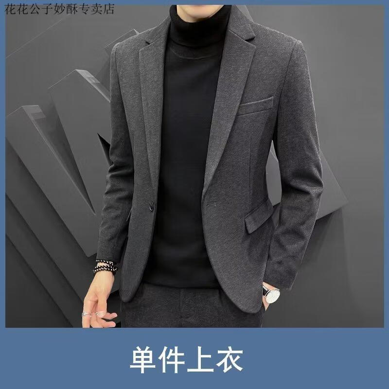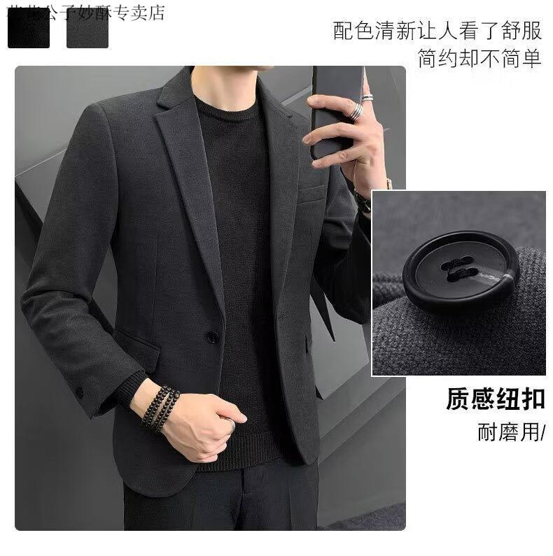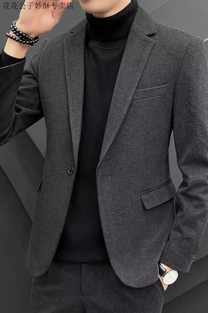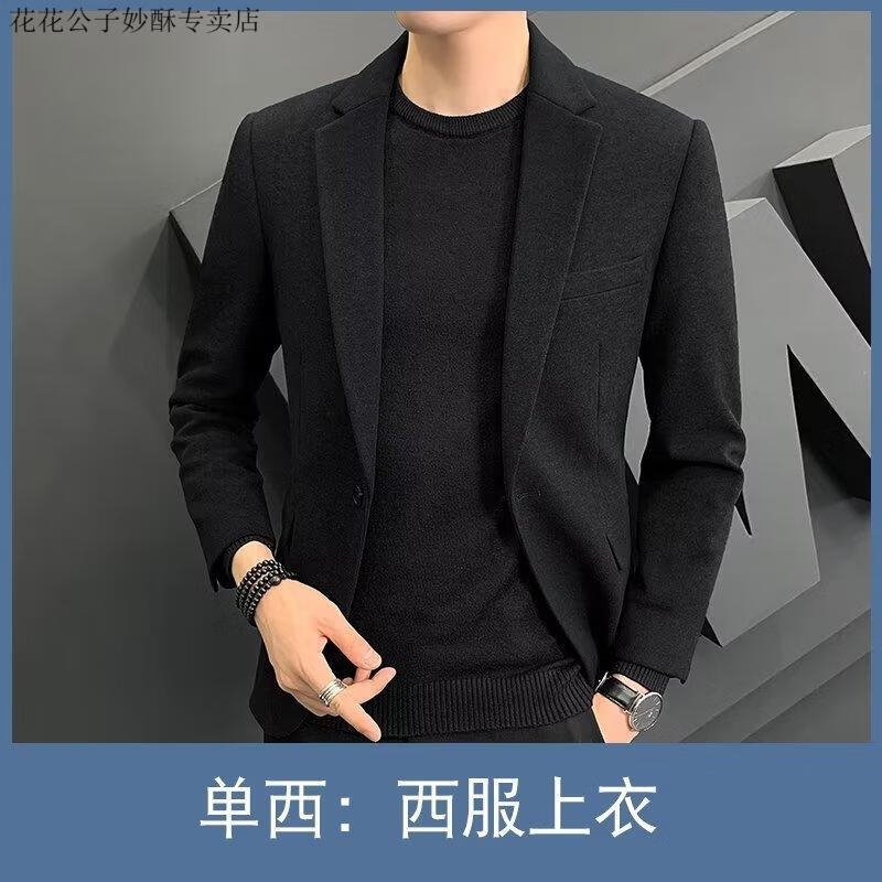 Playboy (PLAYBOY) woolen suit men's 2025 autumn and winter business sense slim trendy casual suit jacket men's black top + pants S