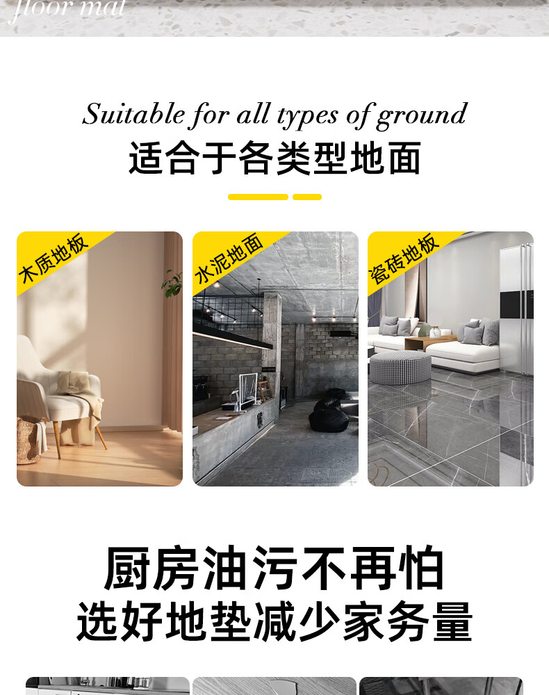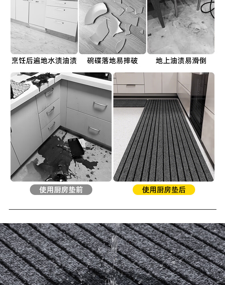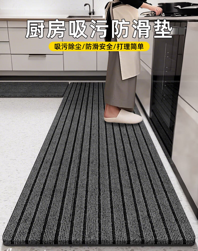 Ruiliju kitchen carpet is waterproof, oil-proof, anti-slip, cuttable floor mat, water-absorbent and oil-absorbent foot mat, stain-resistant, no-wash door mat, gray 40cm*60cm, water-absorbent, oil-absorbent, non-slip, quick-drying