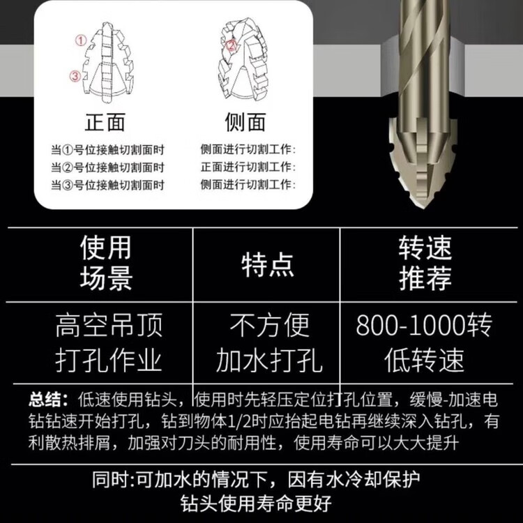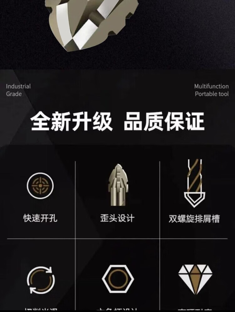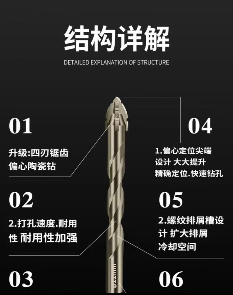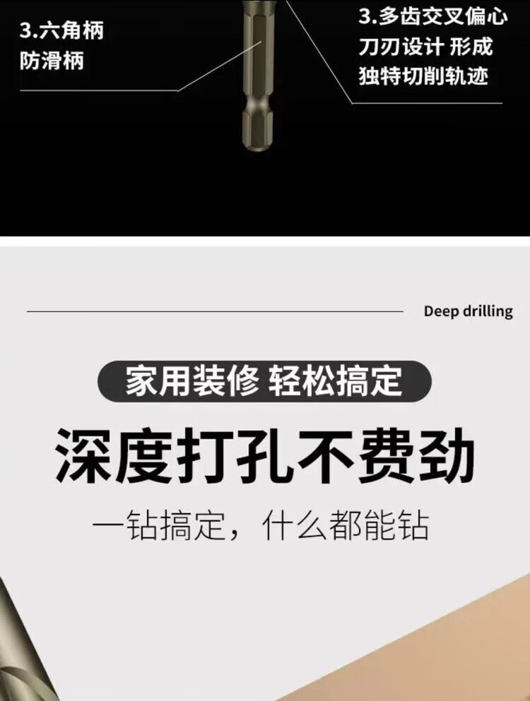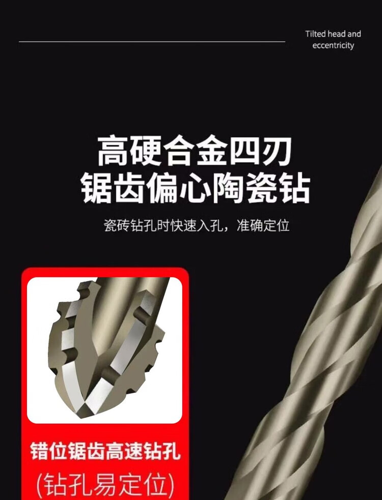 Vinoa's new super-hard tungsten steel sawtooth eccentric drill bit hand electric drill cross-hexagonal handle concrete glass full ceramic tile opening 5mm 1 regular teeth need to be sharpened (super-hard and super-sharp) the new four-blade is better to use