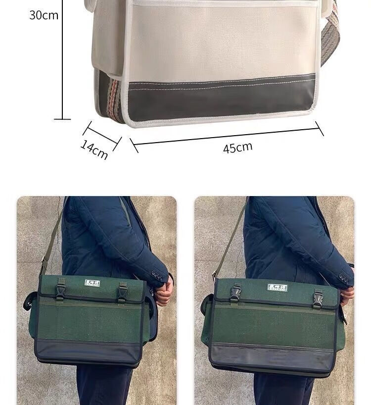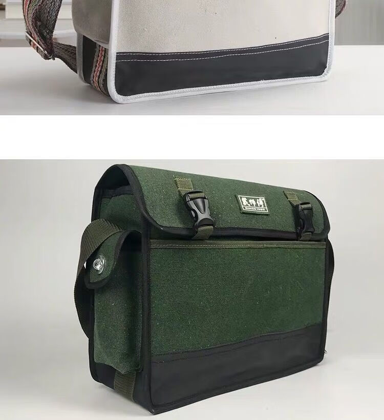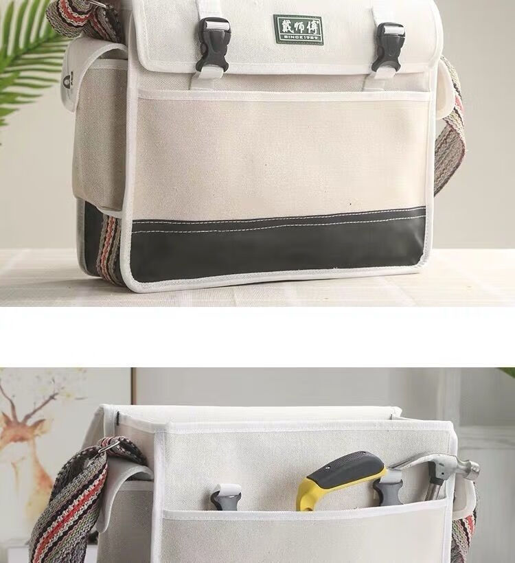 Vinoa electrician and woodworking tool bag canvas large thickened installation bag wear-resistant and durable crossbody portable shoulder bag semi-covered large size (35*10*28)