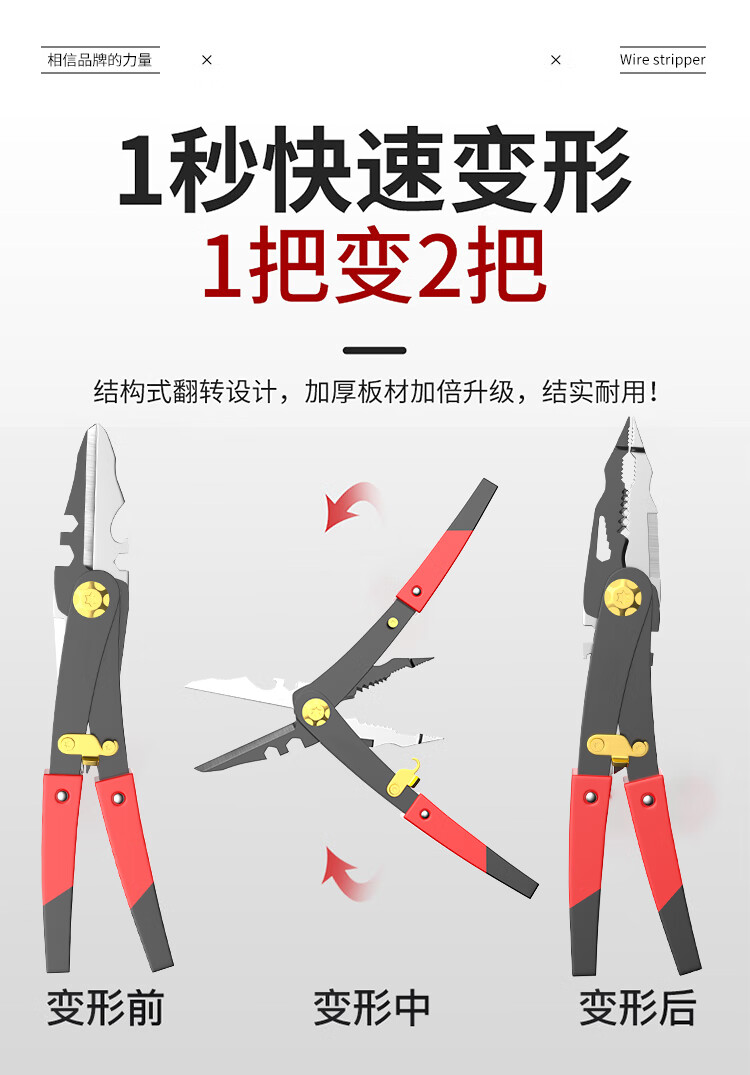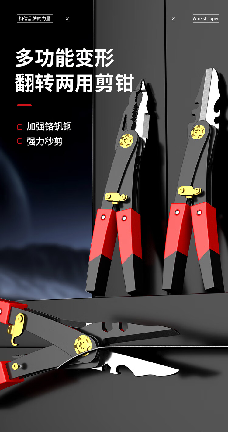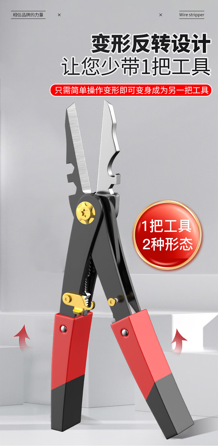 Iron scissors, powerful keel scissors, dual-purpose electrician wire strippers, stainless steel aviation scissors, special scissors, deformable double-headed iron scissors - 1 pair of wire strippers