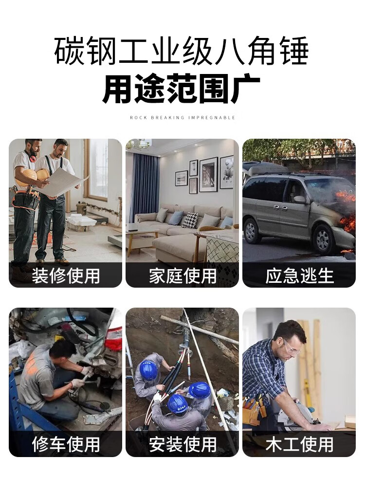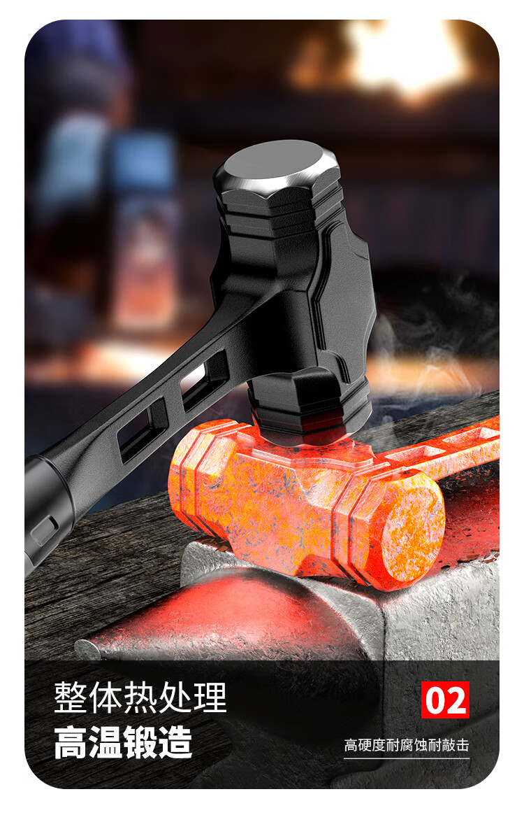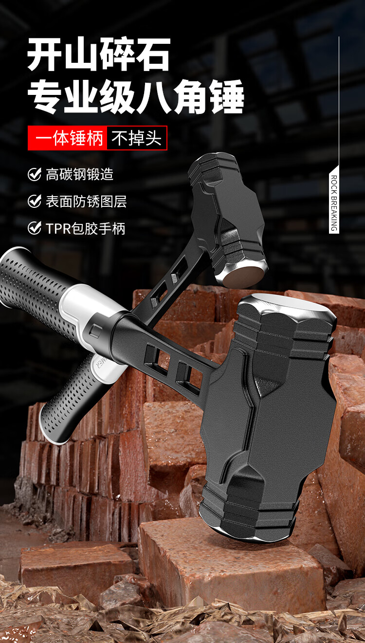 Octagonal hammer integrated hand hammer conjoined hammer enlarged long hammer smashing wall heavy-duty solid woodworking hammer tool mini hammer integrated octagonal hammer 3 pounds