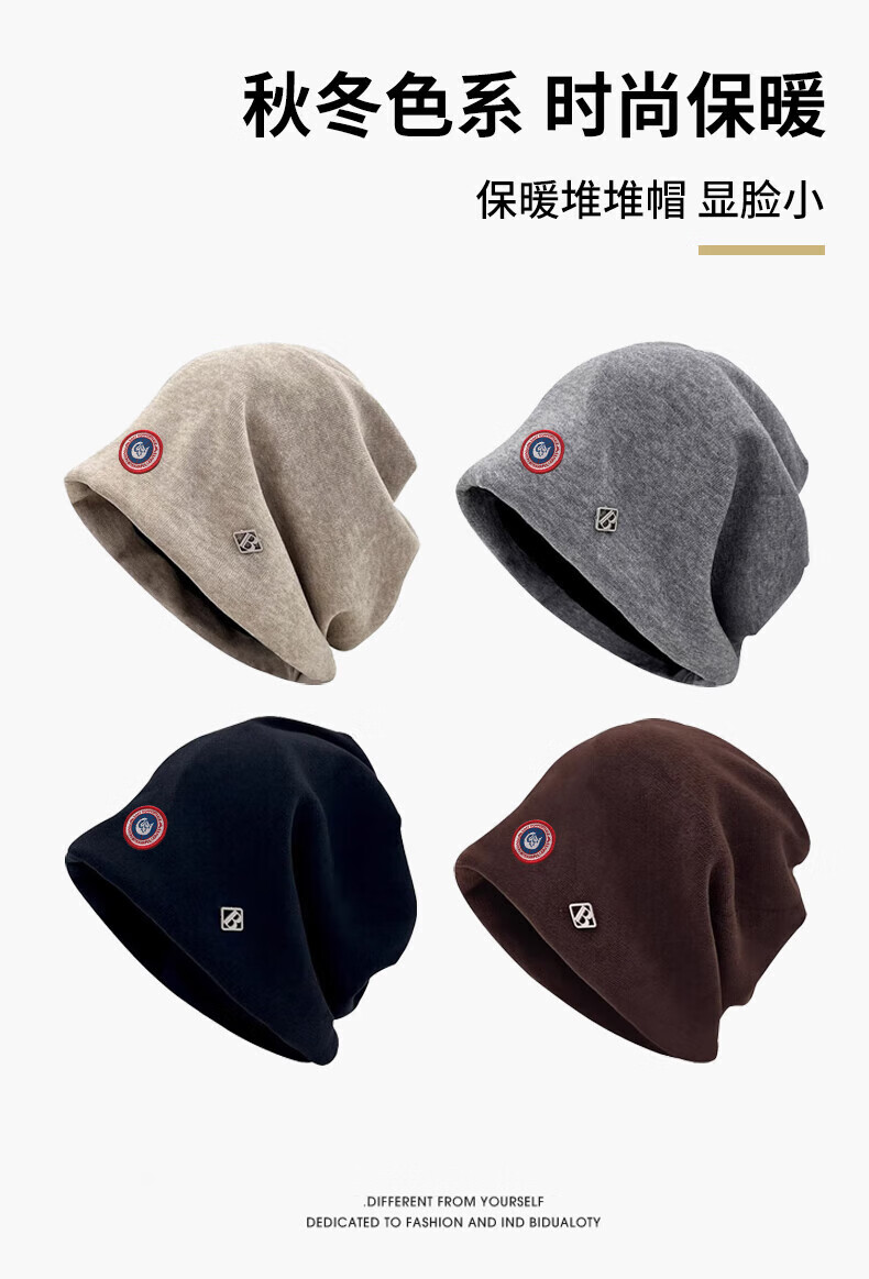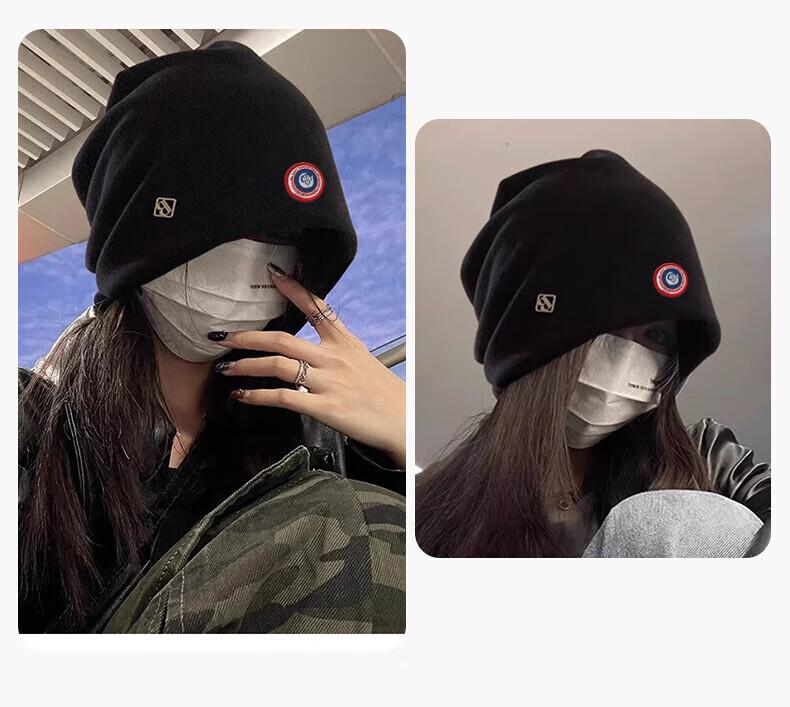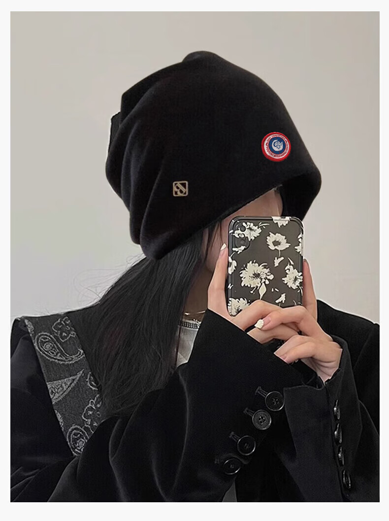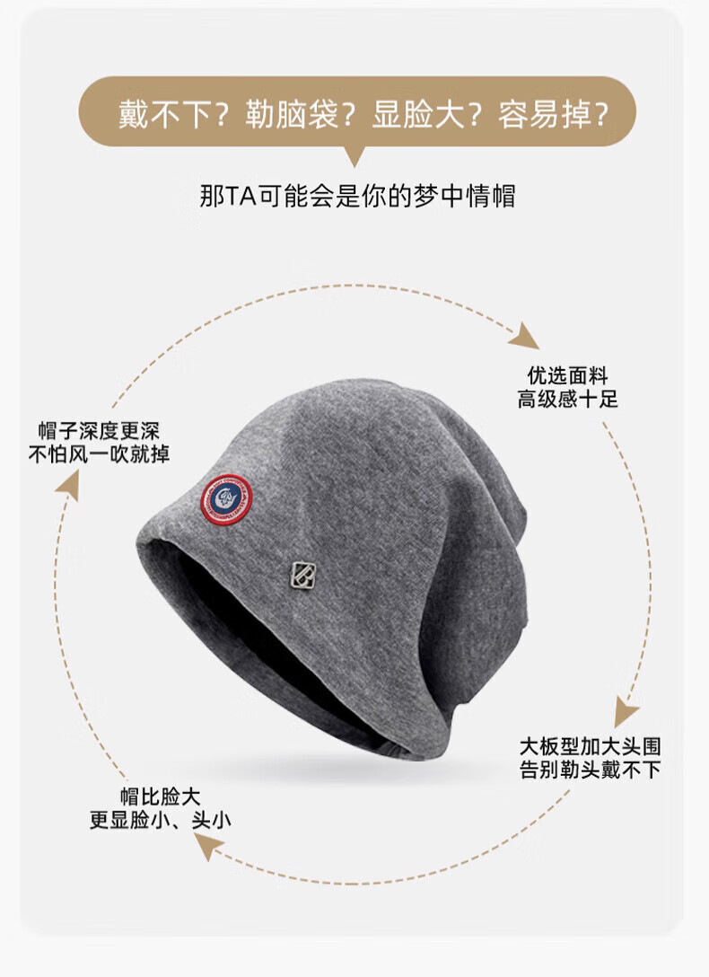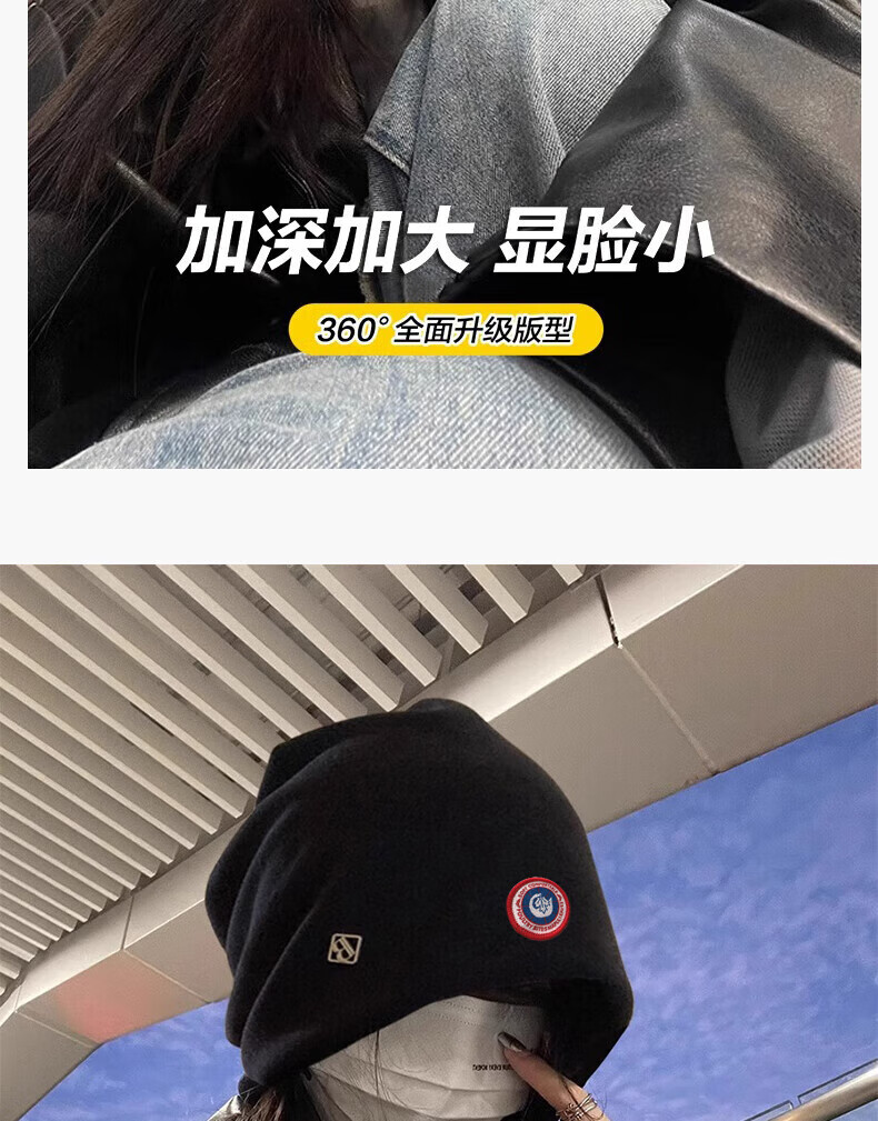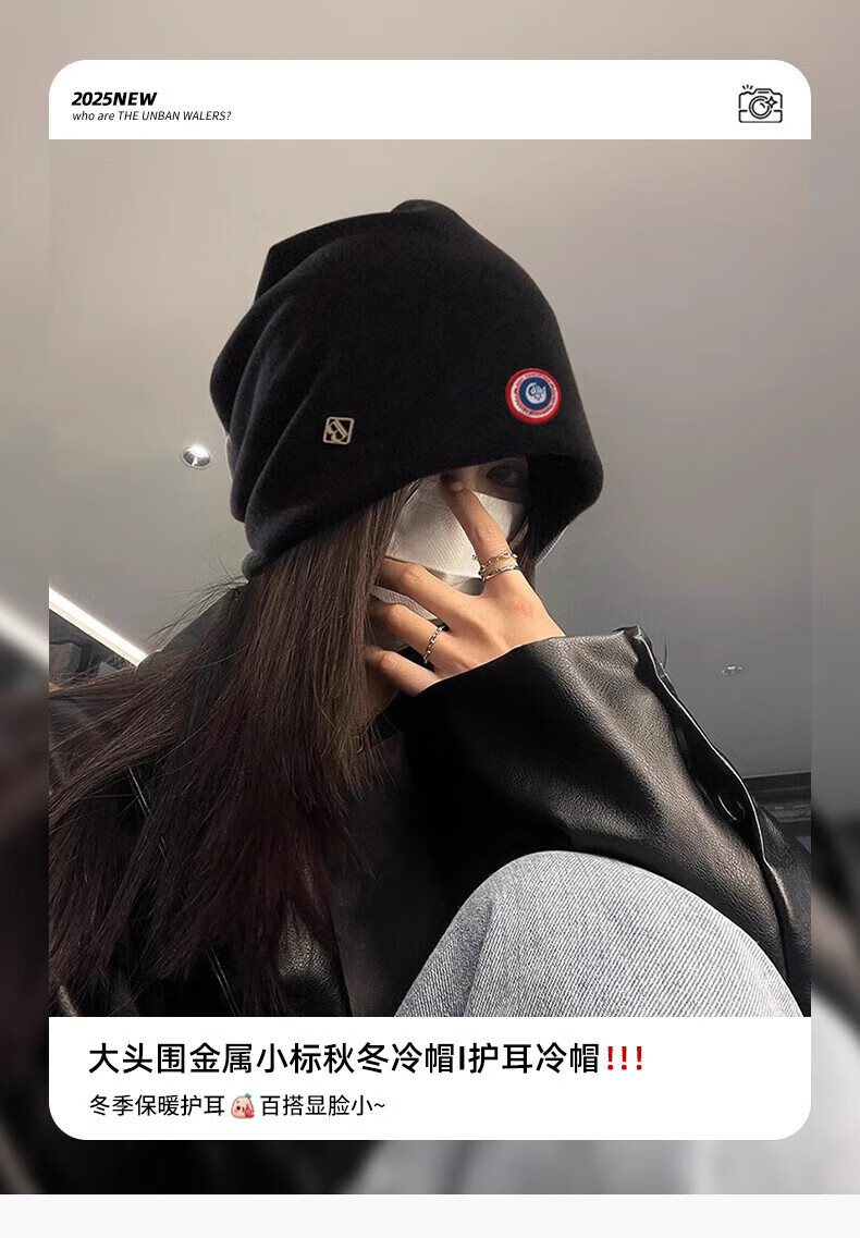 SCOTT GOOSE Face-showing Small Cold Hat Pile Hat Autumn and Winter Warmth 2026 Windproof Big Head Circumference Baotou Knitted Baotou Hat Confinement Hat Black. Extra Size (60-65cm)