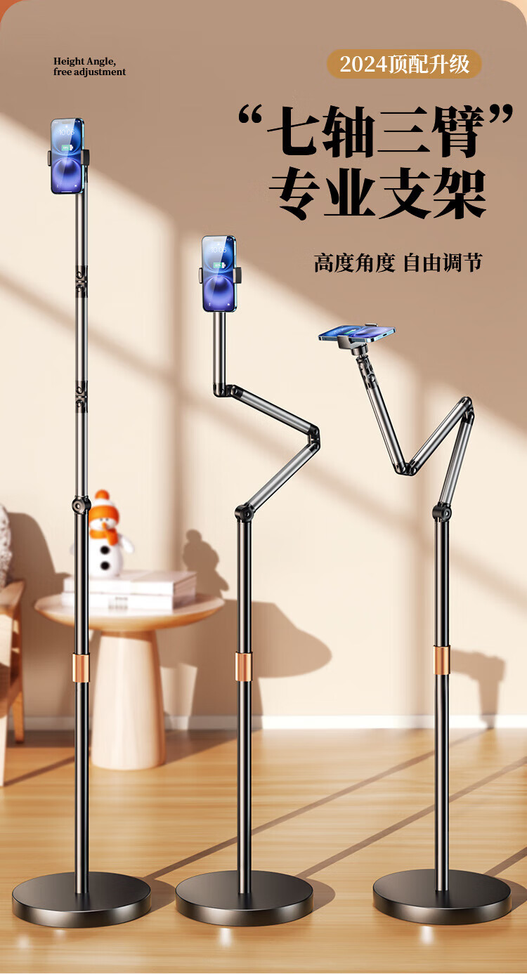 Jiahuacai Live Broadcast Mobile Phone Special Bracket Floor-standing Overhead Photography Mobile Phone Stand Mirror Live Broadcast Stand with Radiator Multi-function 1.7m double-arm mobile phone model