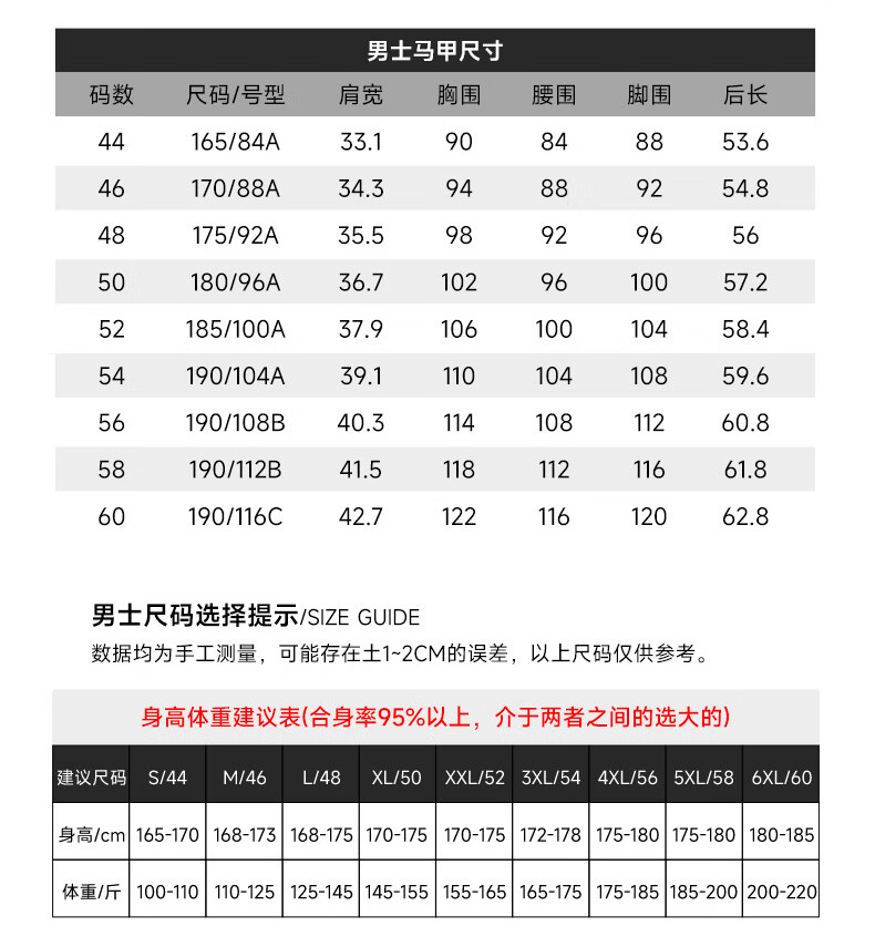 China (cm) 165 / 88-90 170 / 96-98 175 / 108-110 180 / 118-122 185 / 126-130