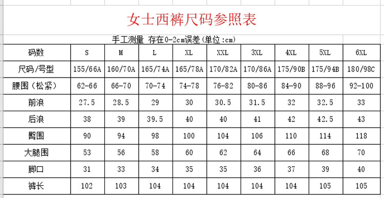 Outseam (cm) 99 cm 101.5 cm 104 cm 106.5 cm 109 cm