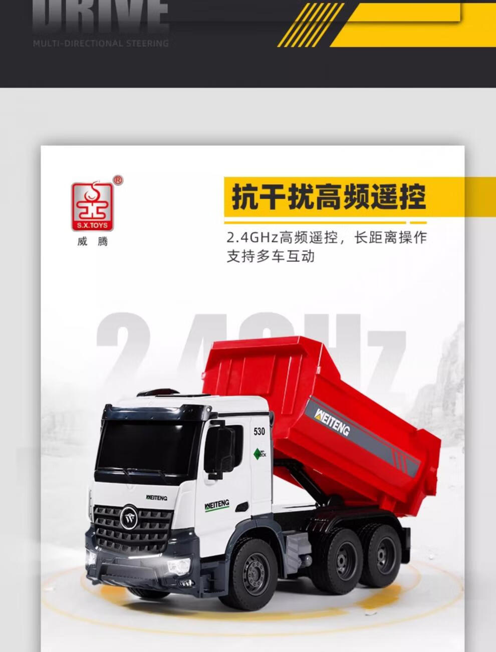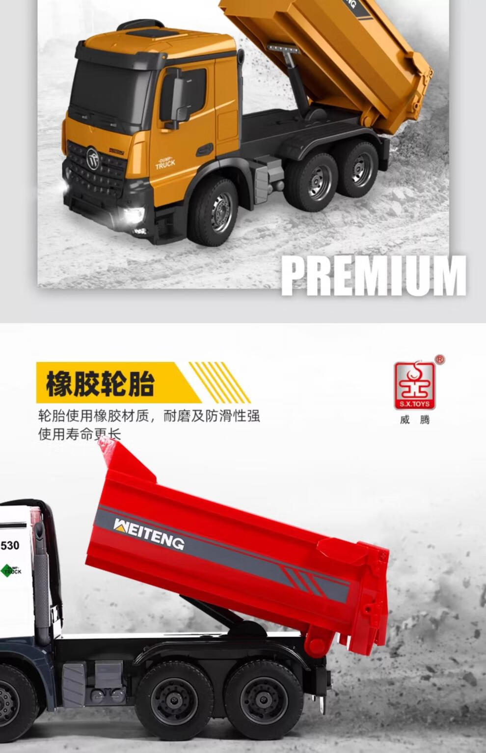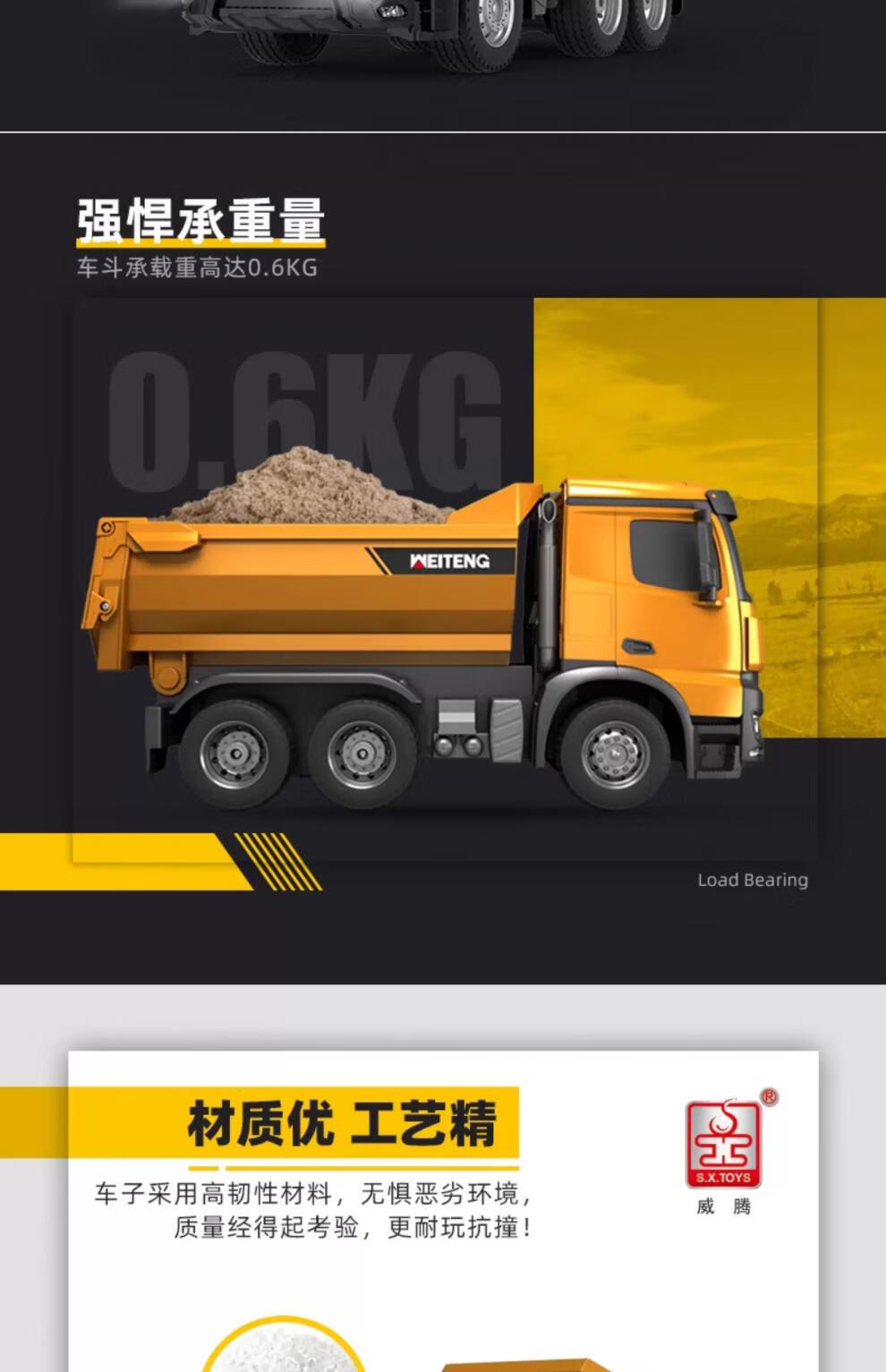 Shantou Lincun children's remote control dump truck transporter toy boy dump truck model simulation engineering truck electric toy large 6-channel-four-wheel drive remote control mixer truck yellow 6 free trucks standard one set of charging battery life about 45 minutes