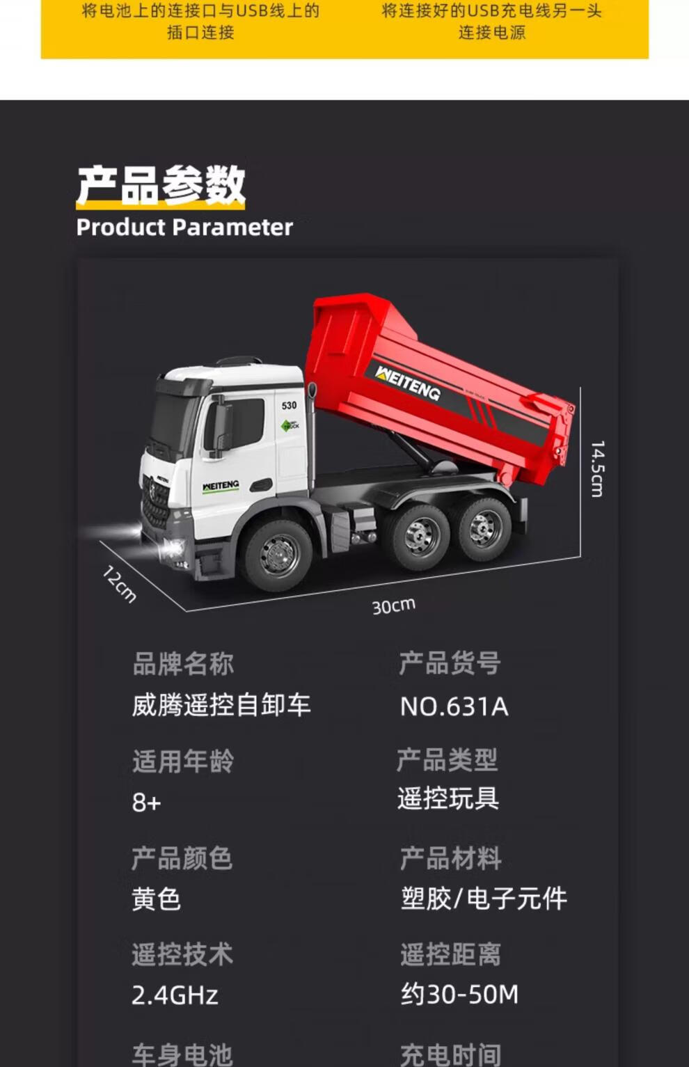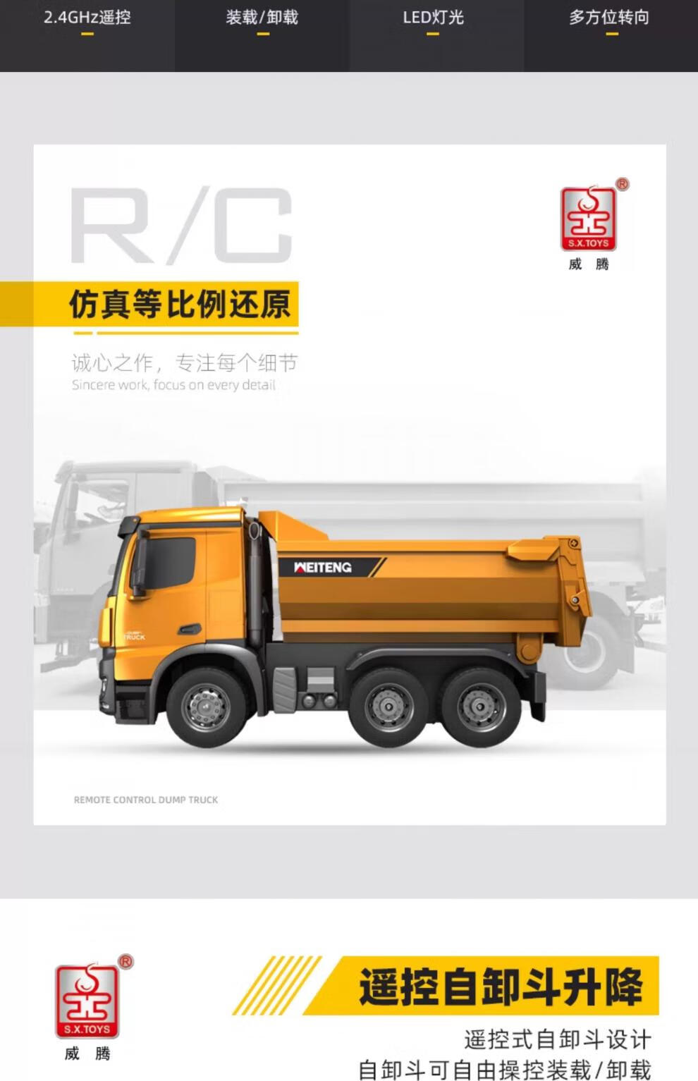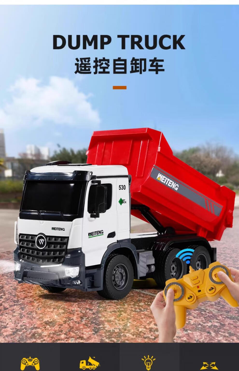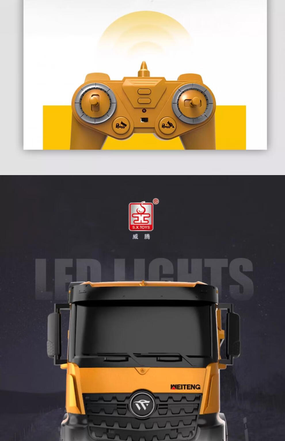 Shantou Lincun children's remote control dump truck transporter toy boy dump truck model simulation engineering truck electric toy large 6-channel-four-wheel drive remote control mixer truck yellow 6 free trucks standard one set of charging battery life about 45 minutes