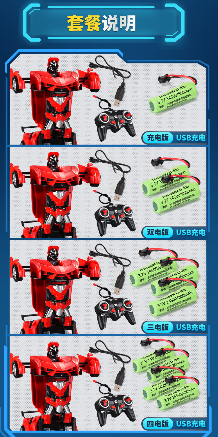 Shantou Lincun Transformation Remote Control Car King Kong Robot Rechargeable Internet Celebrity Children's Toy Car Boy's Birthday Gift Racing Car Red-Rambo Remote Control Transformation Hot Selling Version Three Sets of Body Chargers Free Remote Control + USB Charging