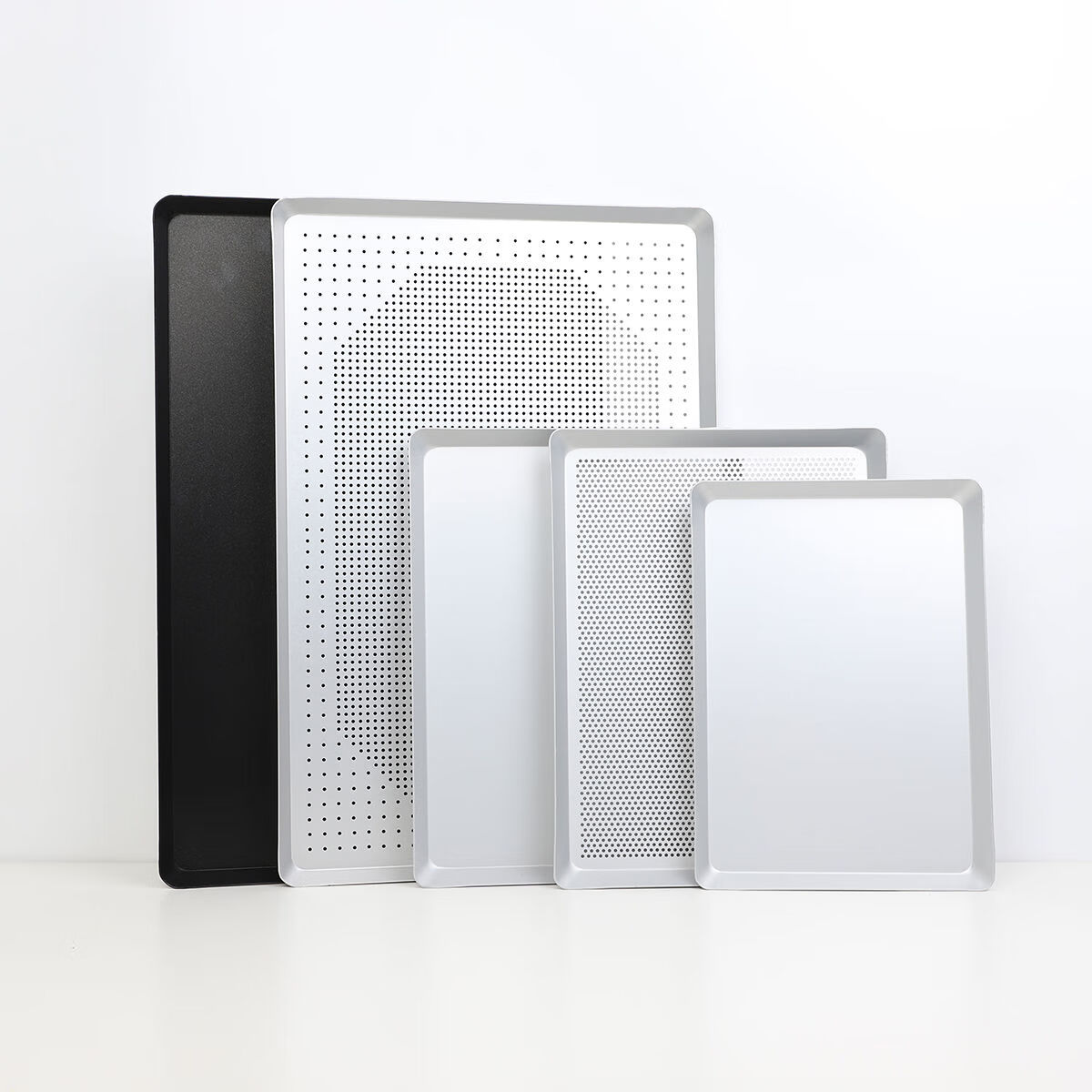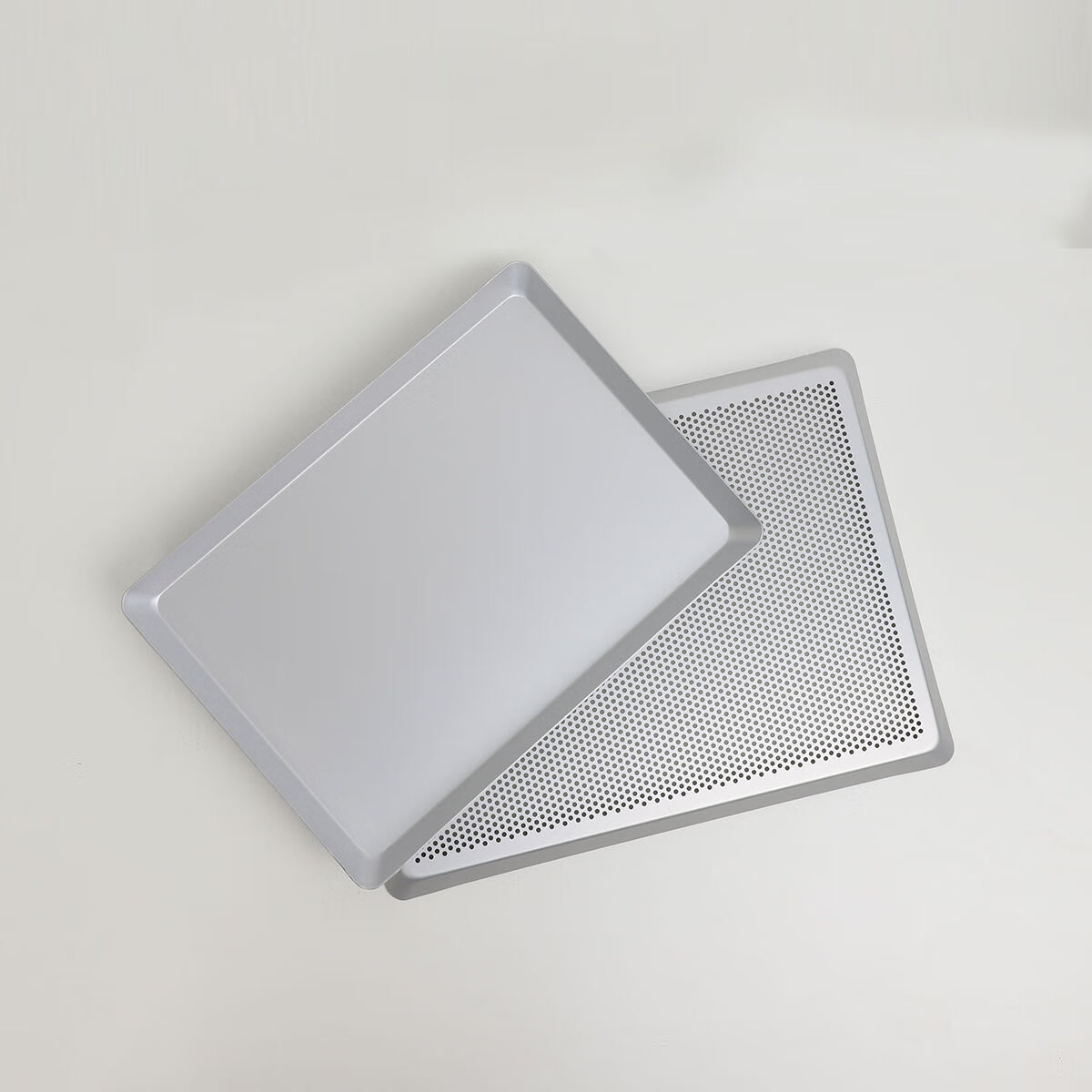 Sanqihu household rectangular baking pan 40x30 35x25 anode punched pizza pan thickened baking pan European style bread pan black 5 commercial 40x40 non-stick non-porous