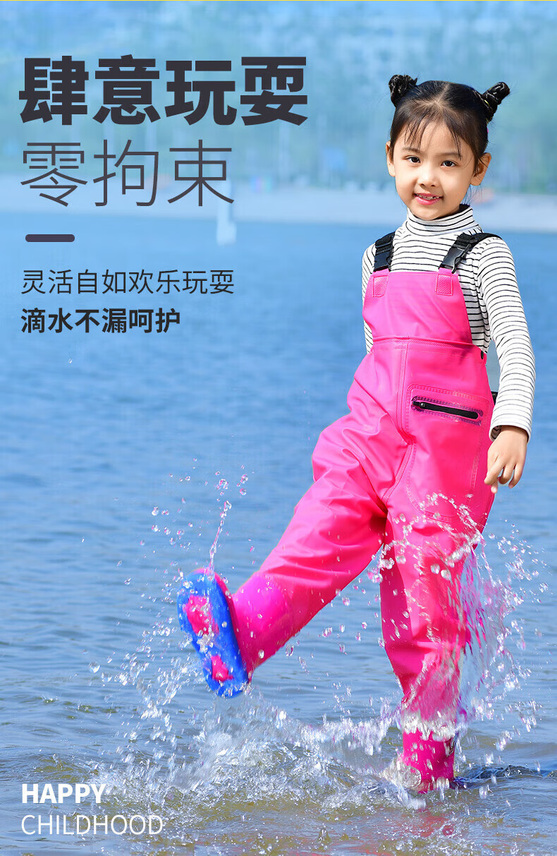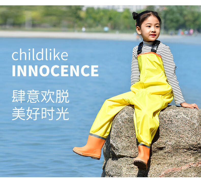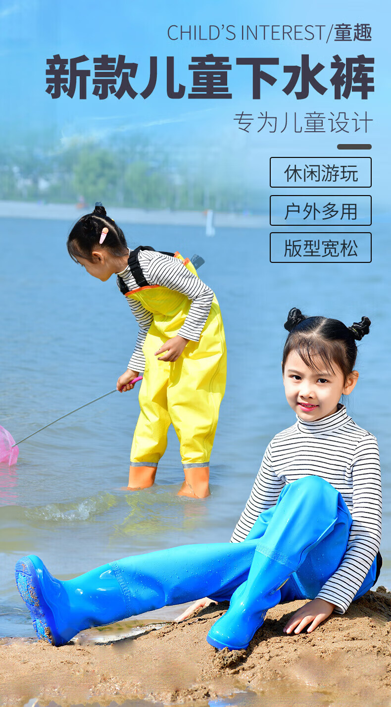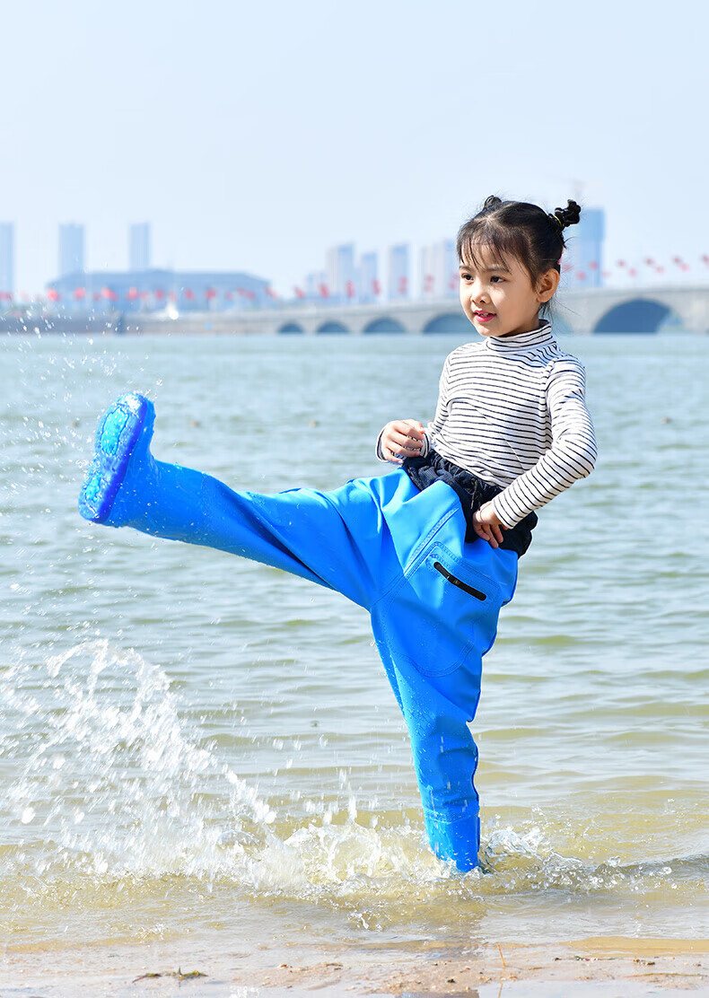 Zailu children's water play one-piece waders, kindergarten waterproof clothes, sea equipment, baby fish wading rain pants, beach, children's sky blue overalls, special price - no mouth, size 22 (shoe inner length 13cm)