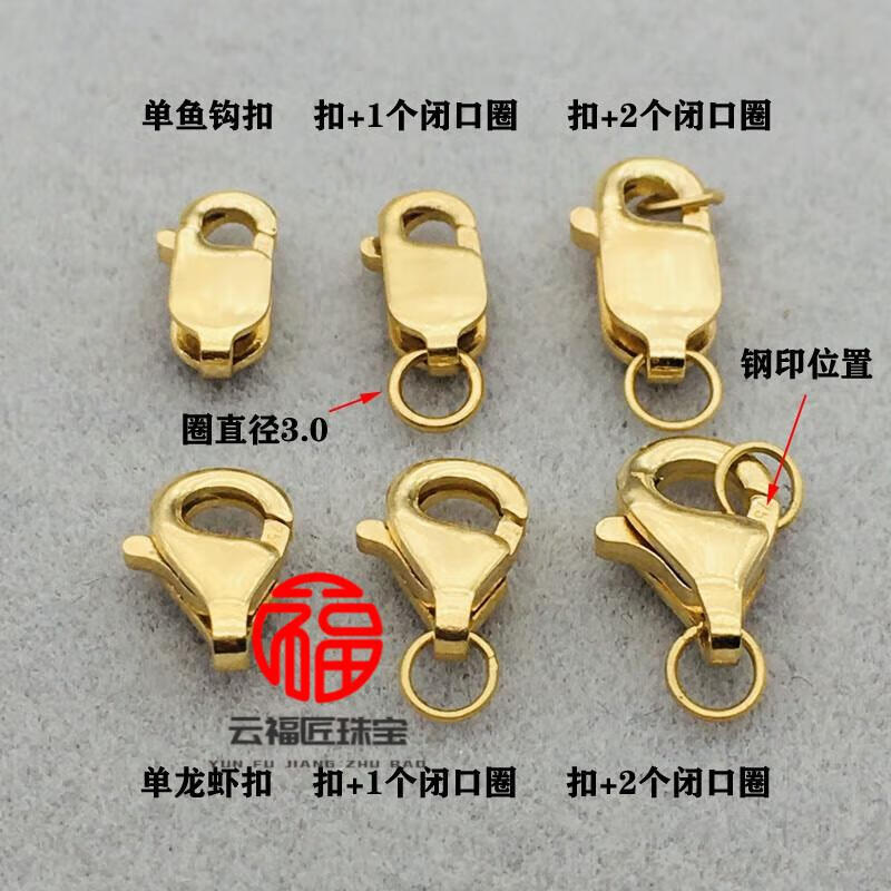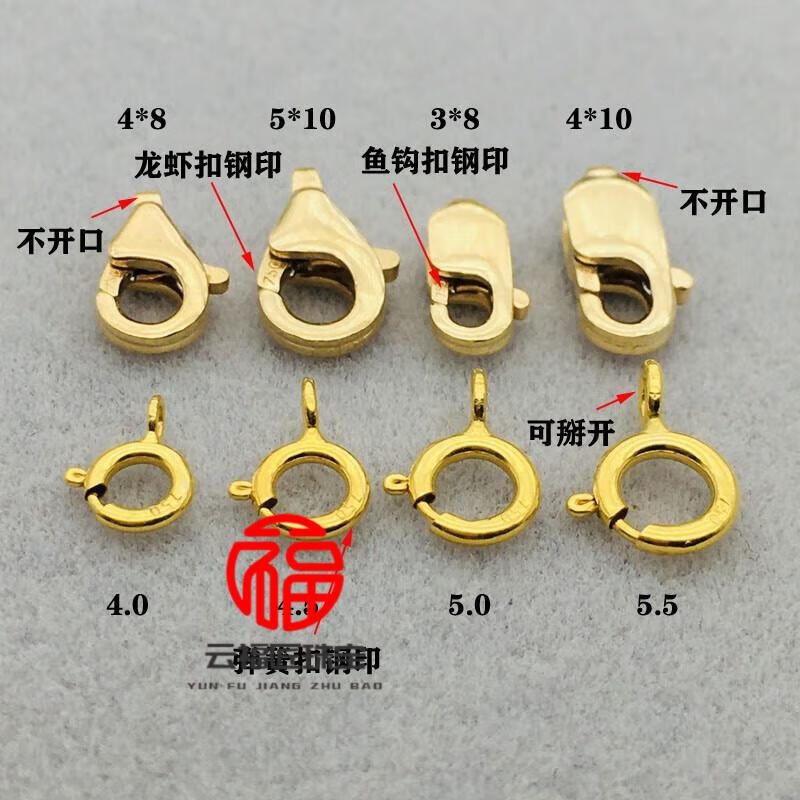 18K gold lobster clasp fish hook clasp spring buckle anti-opening buckle connecting rope buckle head diy bracelet connection accessories thin double circle 3 o'clock 0 one 18Kl white gold