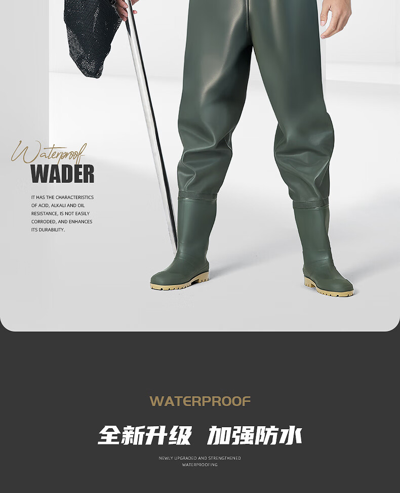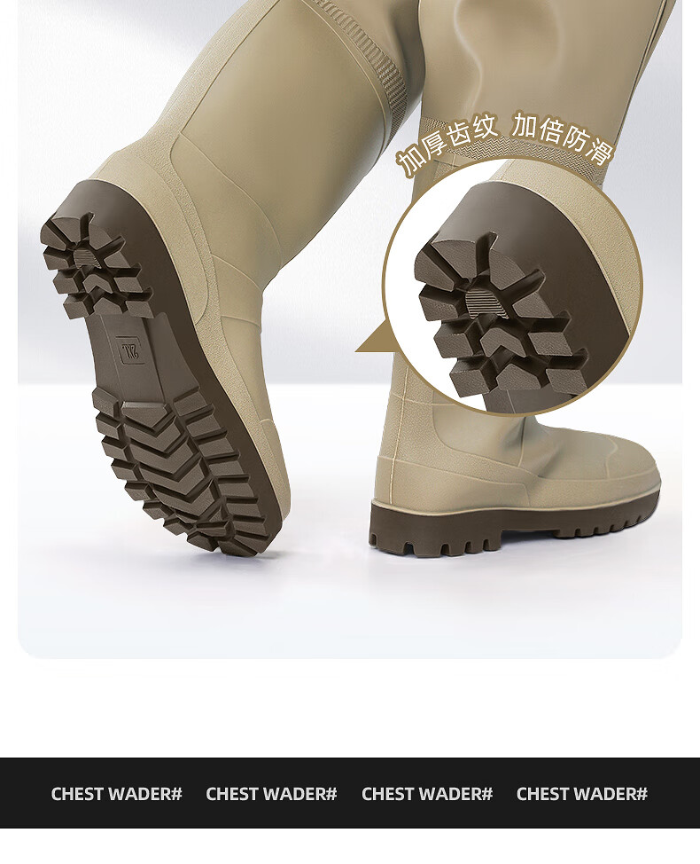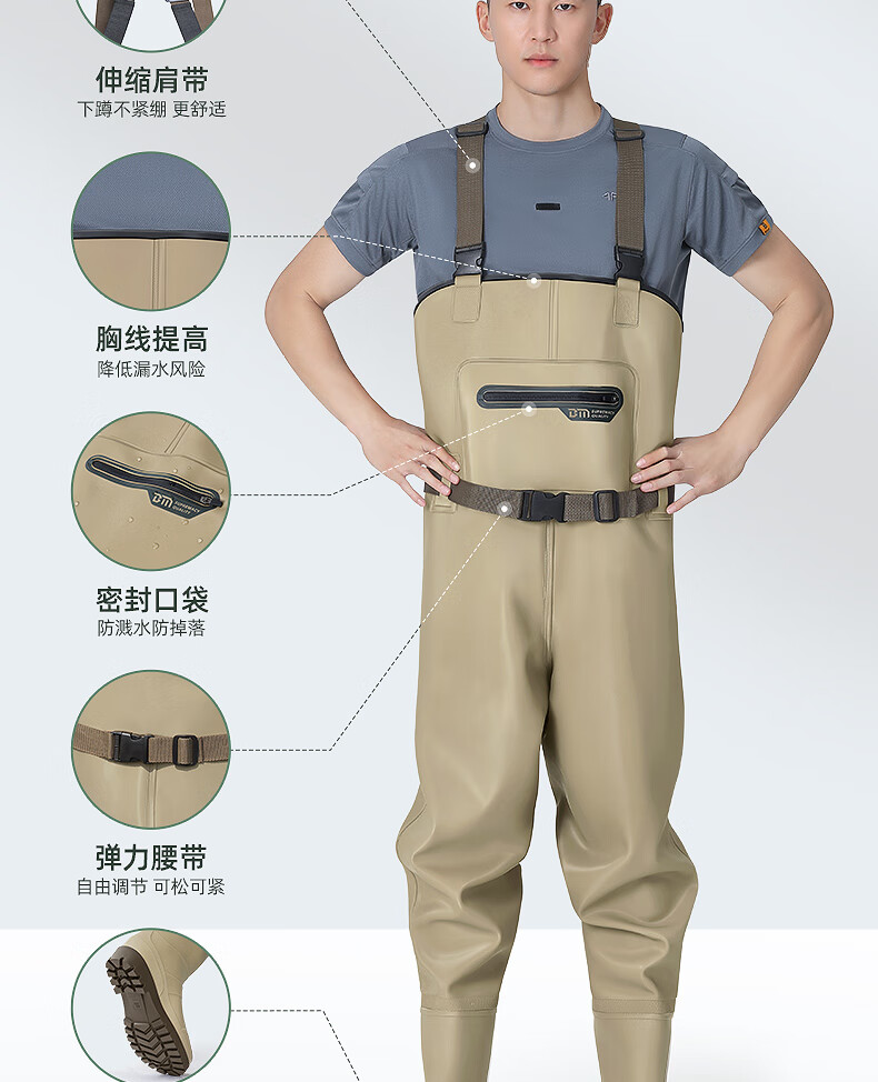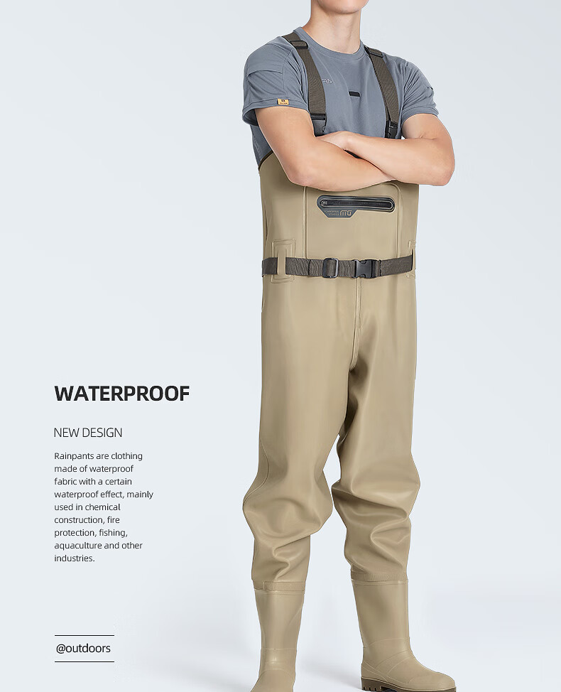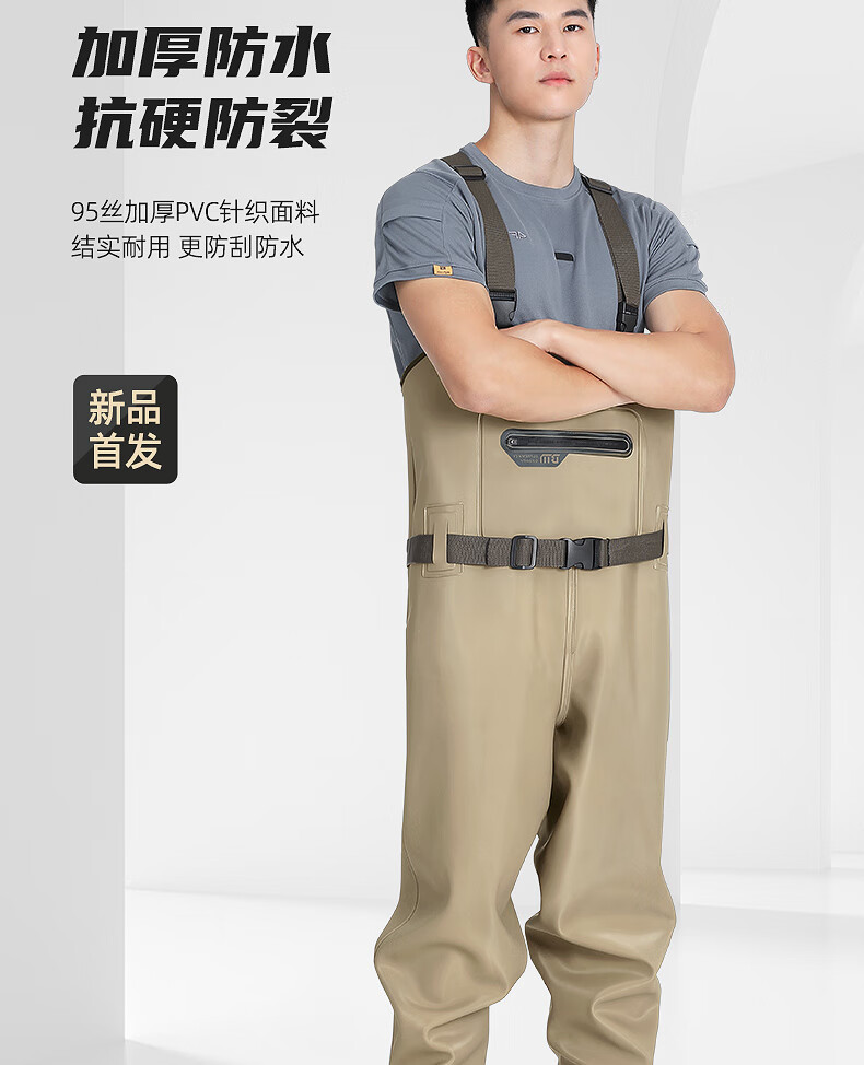 Wading pants, sea water shoes, one piece, full body waterproof and thickened new fishing reservoir fish catching wading pants, khaki - regular style - inner pocket design + resistance M