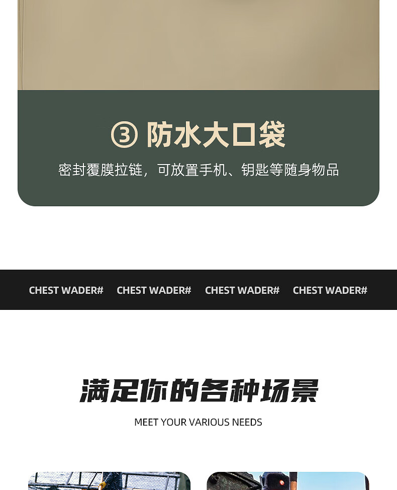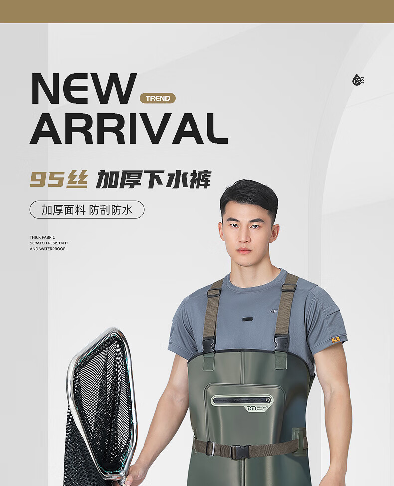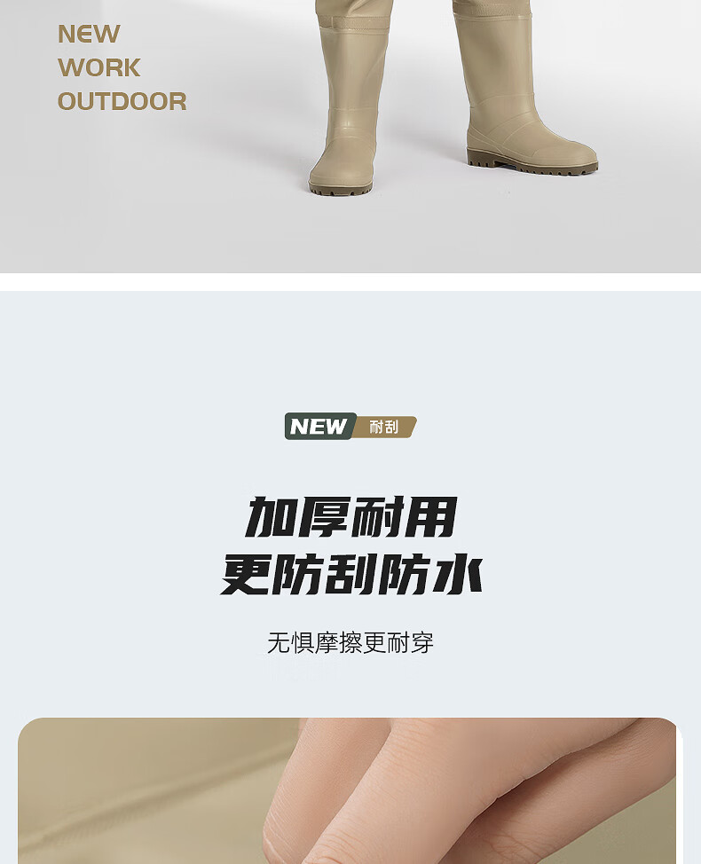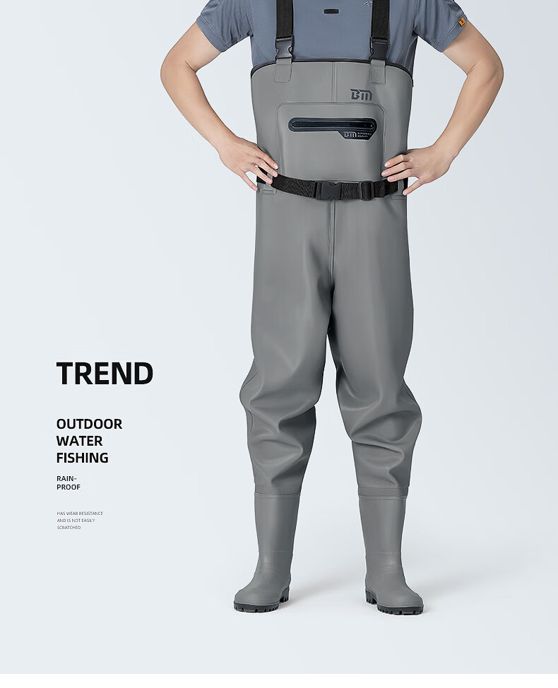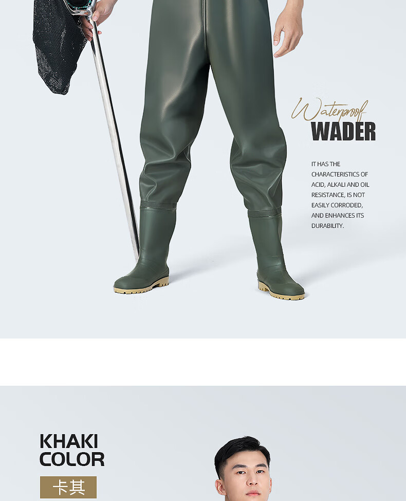 Wading pants, sea water shoes, one piece, full body waterproof and thickened new fishing reservoir fish catching wading pants, khaki - regular style - inner pocket design + resistance M