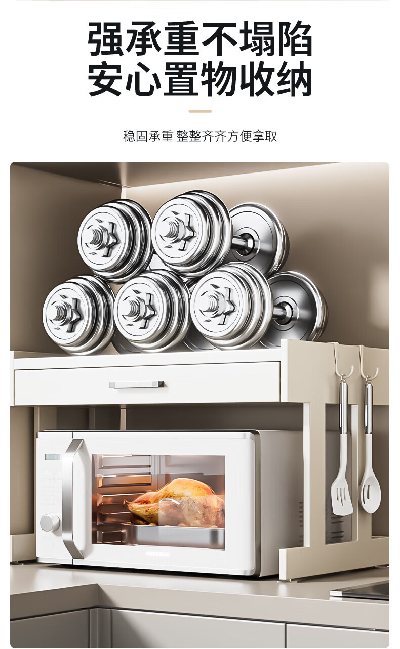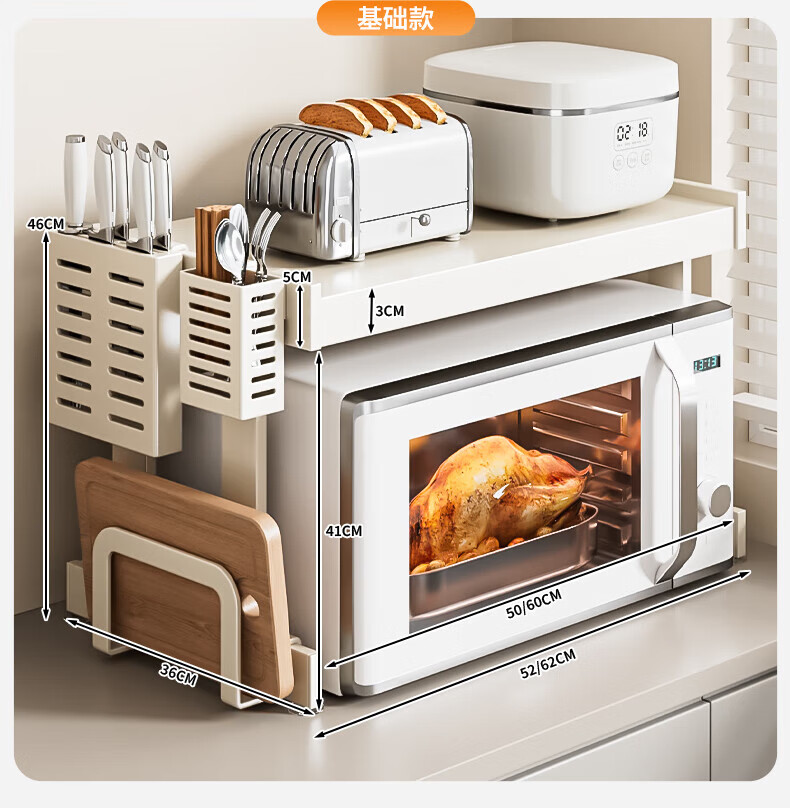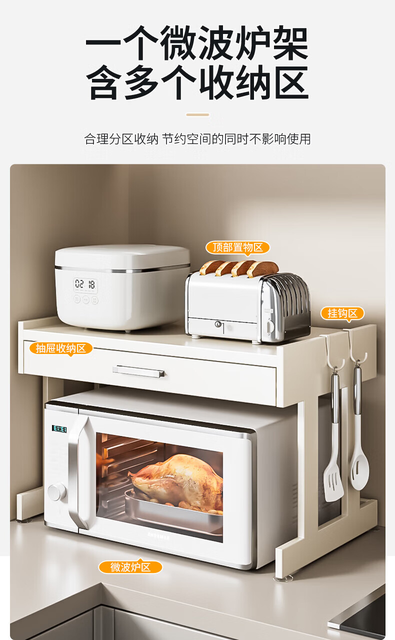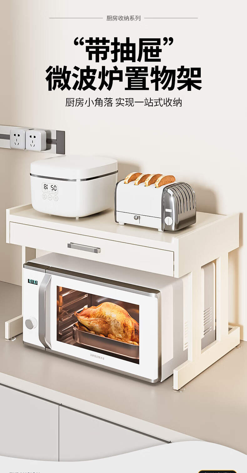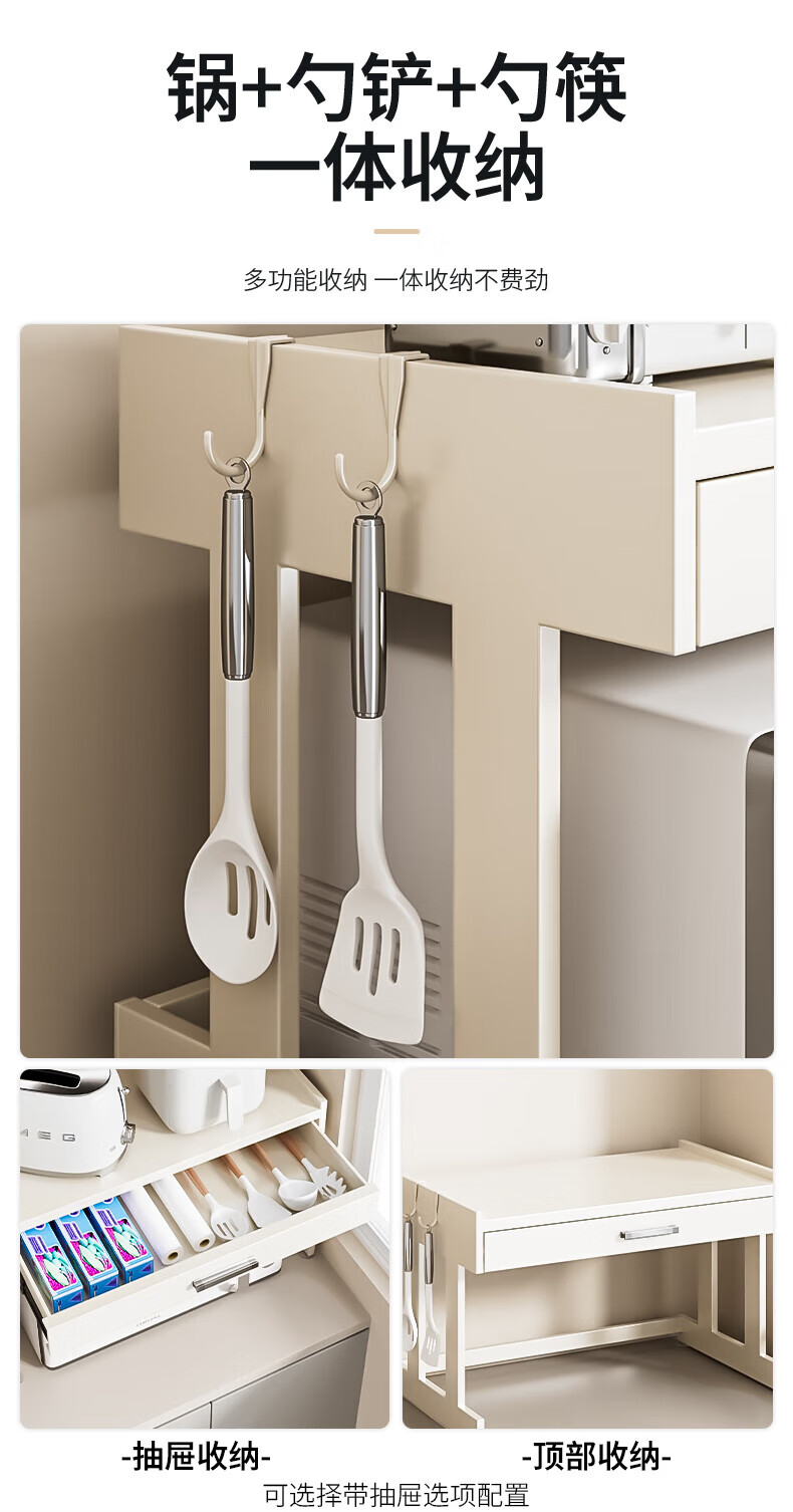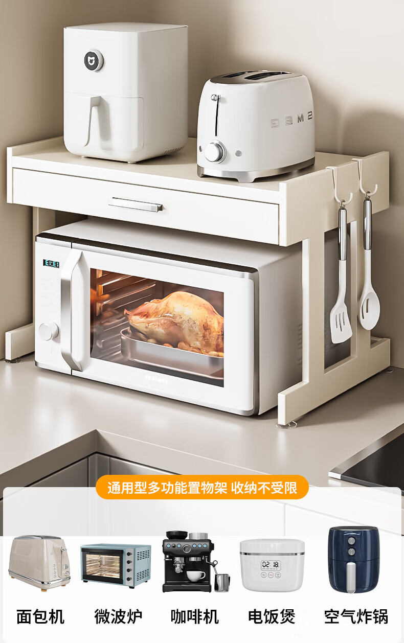 Youxi ins cream style kitchen microwave oven storage rack countertop multi-function rice cooker storage rack kitchen utensils cream white 52cm simple style + hook
