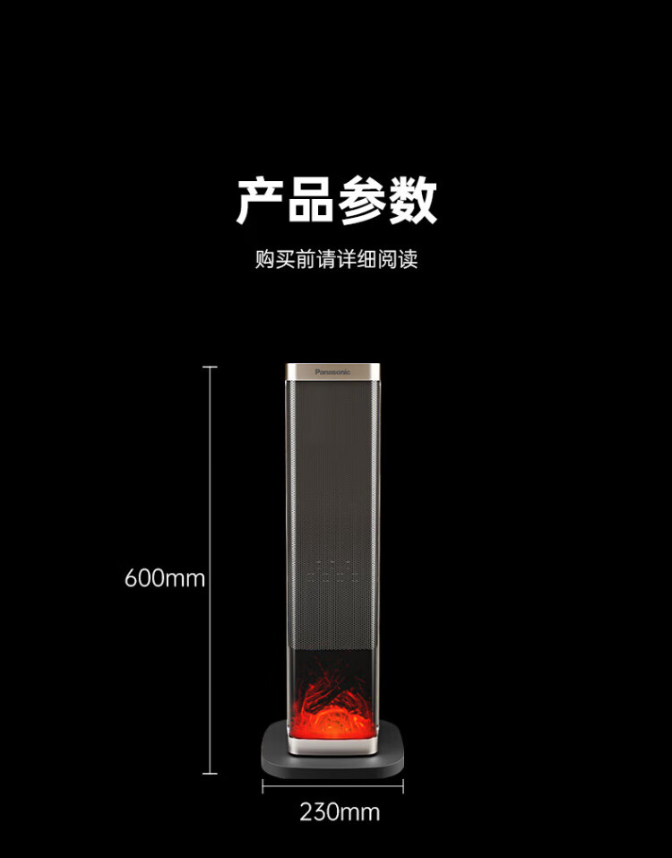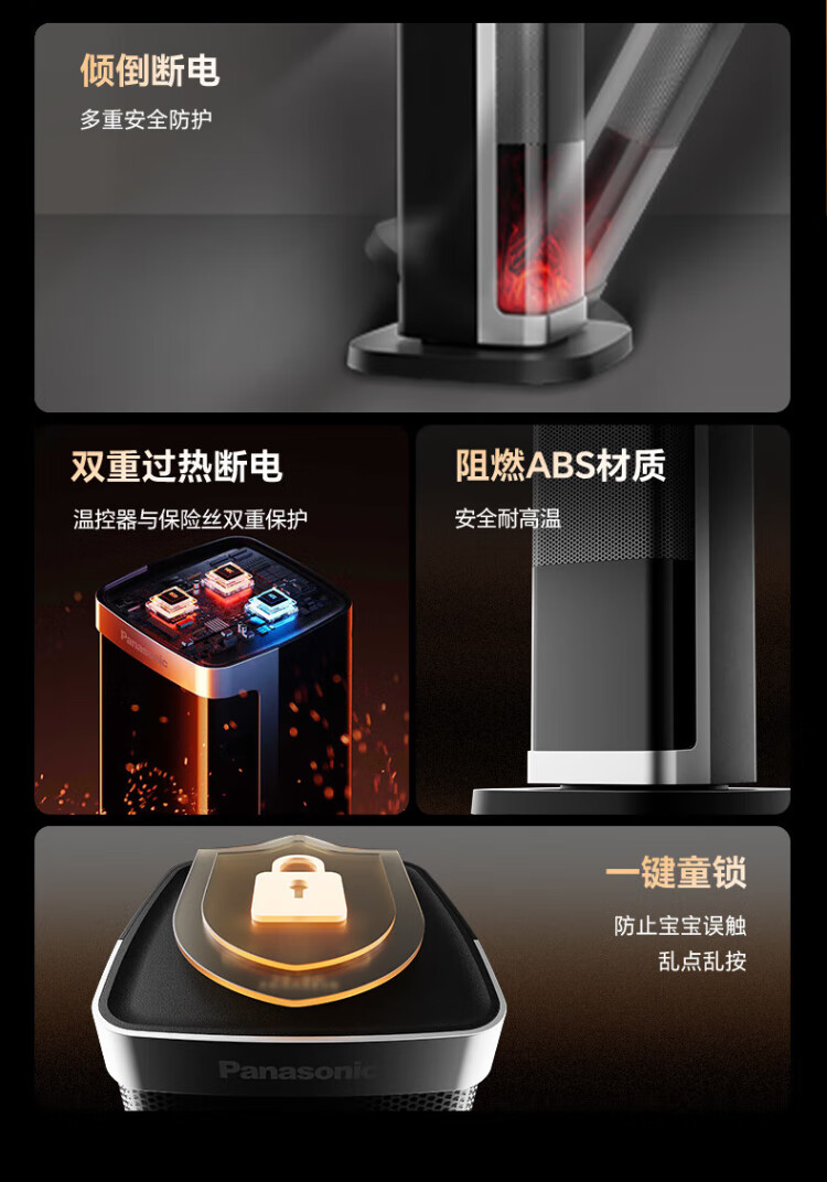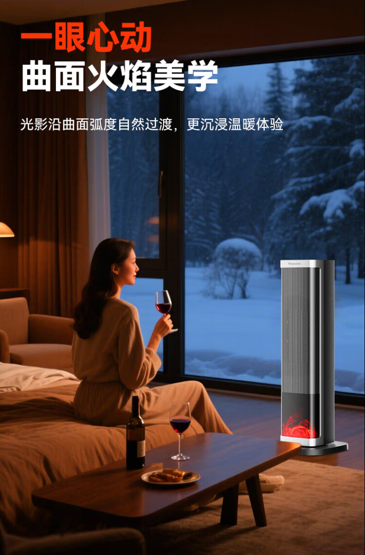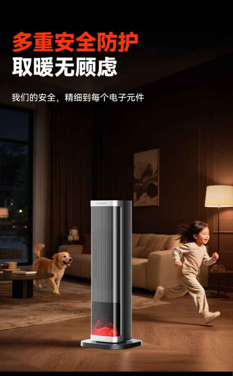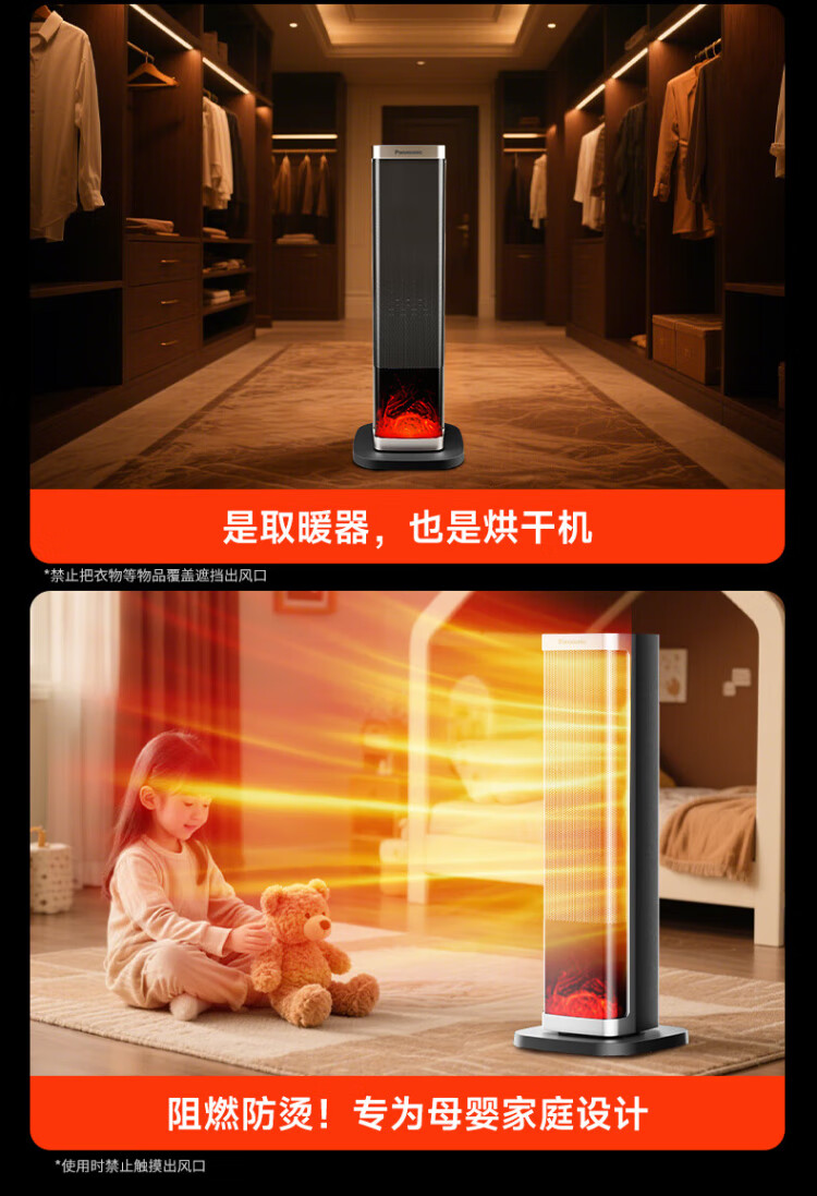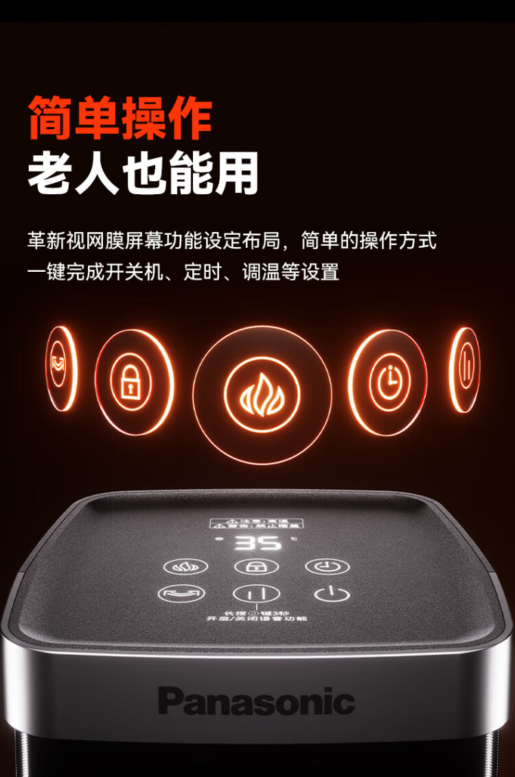 Panasonic heater household graphene heater electric heater small sunroom electric heater winter office shaking head bedroom remote control tower heater light sound PTC hot fan upgraded curved wide area charcoal fire remote control touch screen model