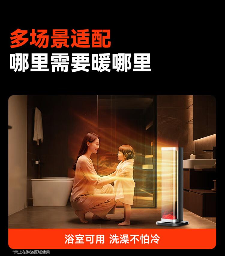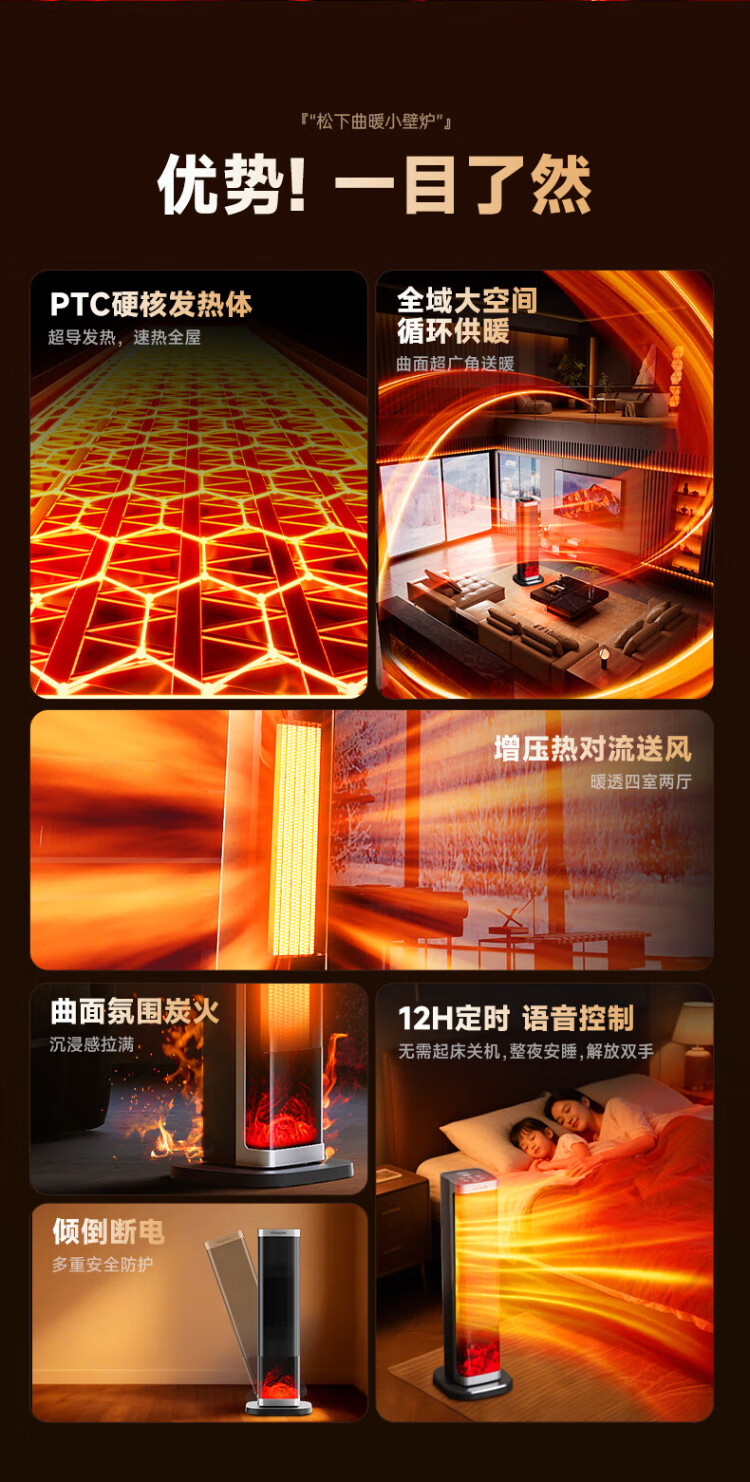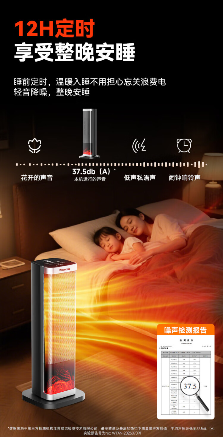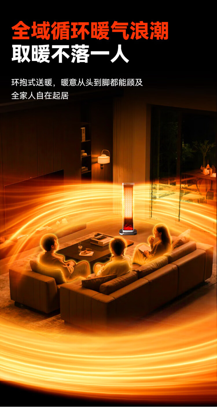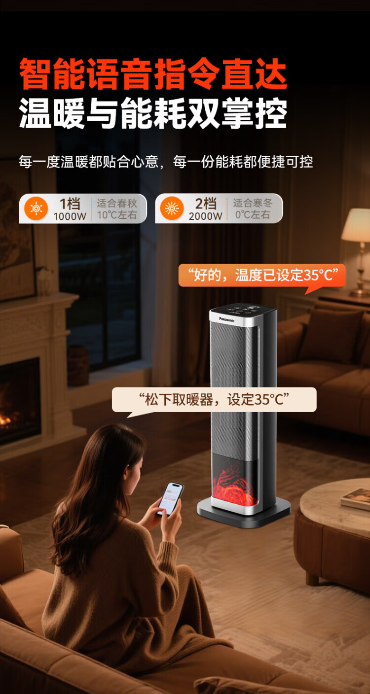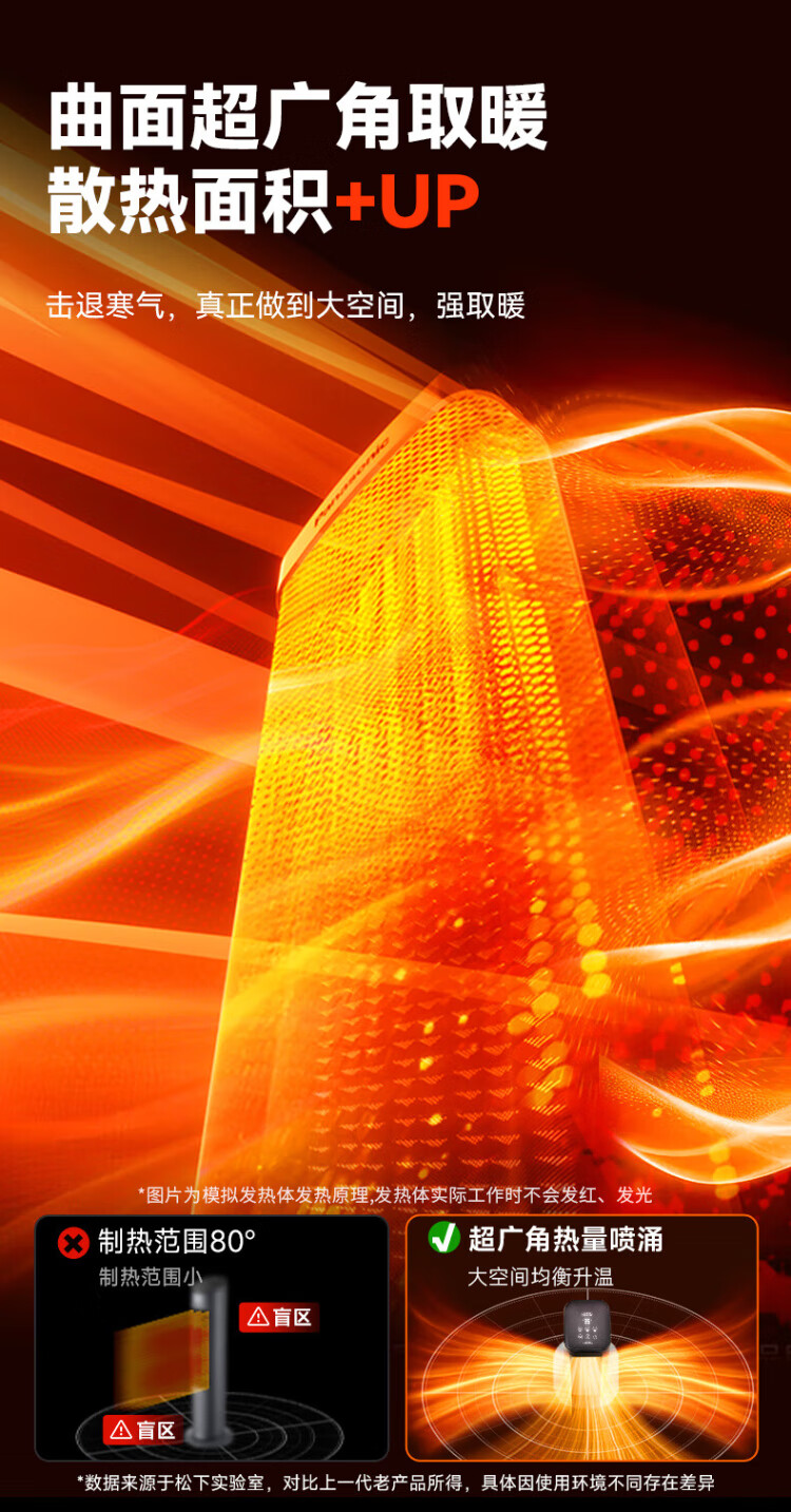 Panasonic heater household graphene heater electric heater small sunroom electric heater winter office shaking head bedroom remote control tower heater light sound PTC hot fan upgraded curved wide area charcoal fire remote control touch screen model
