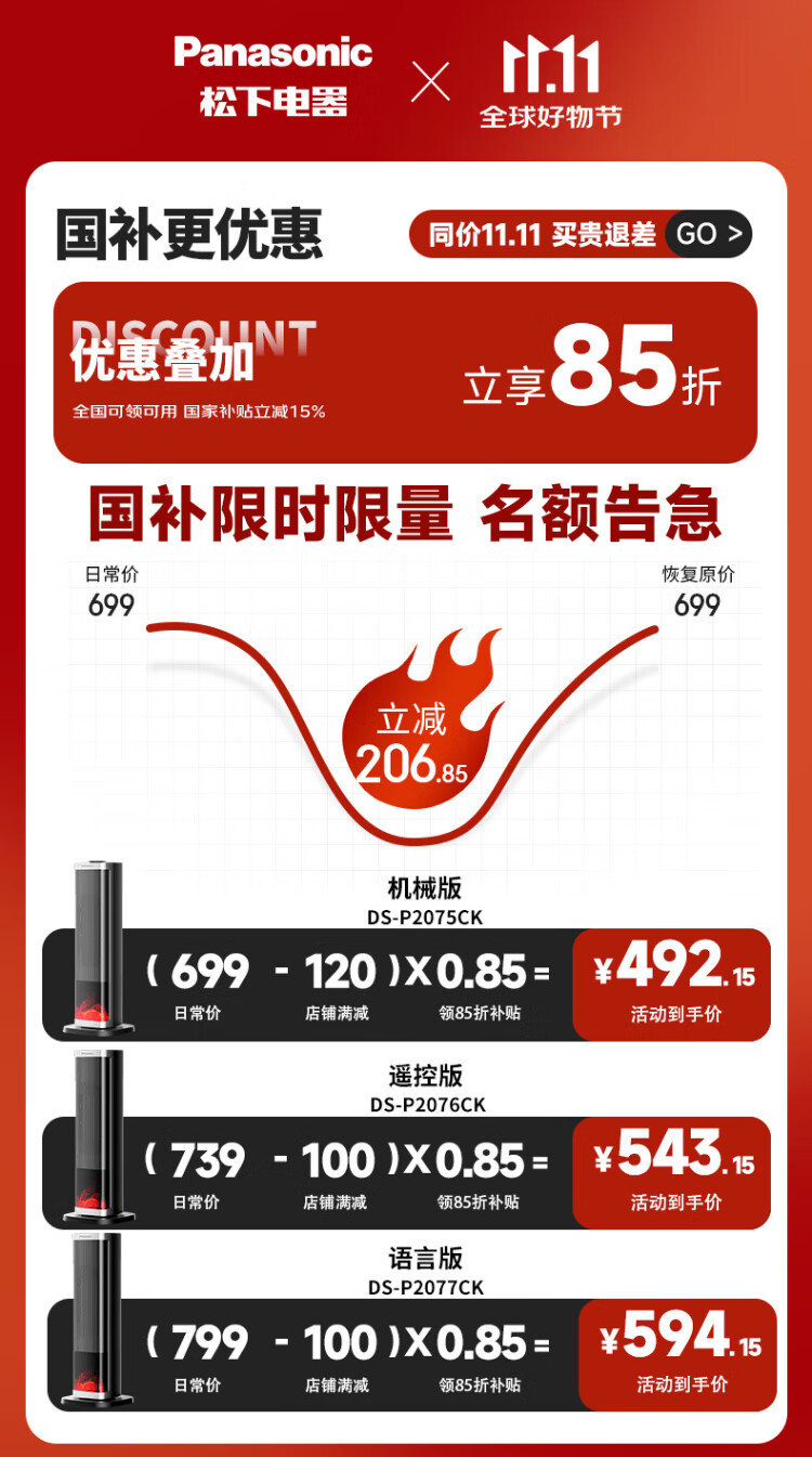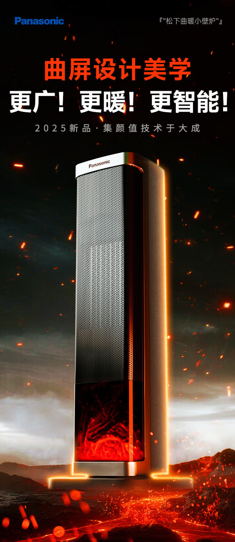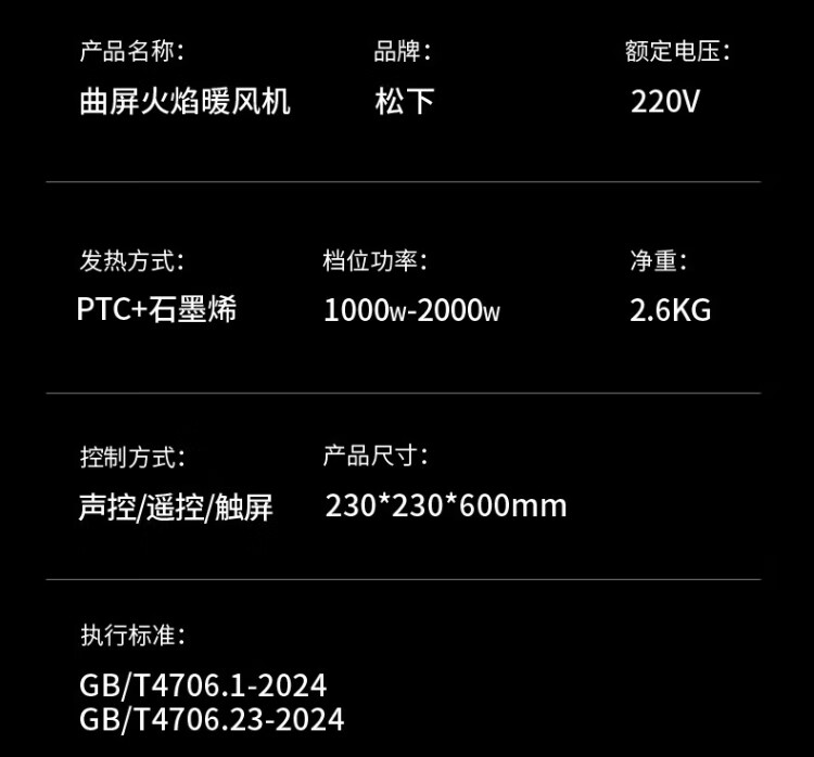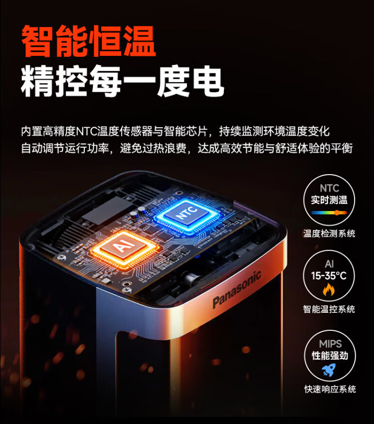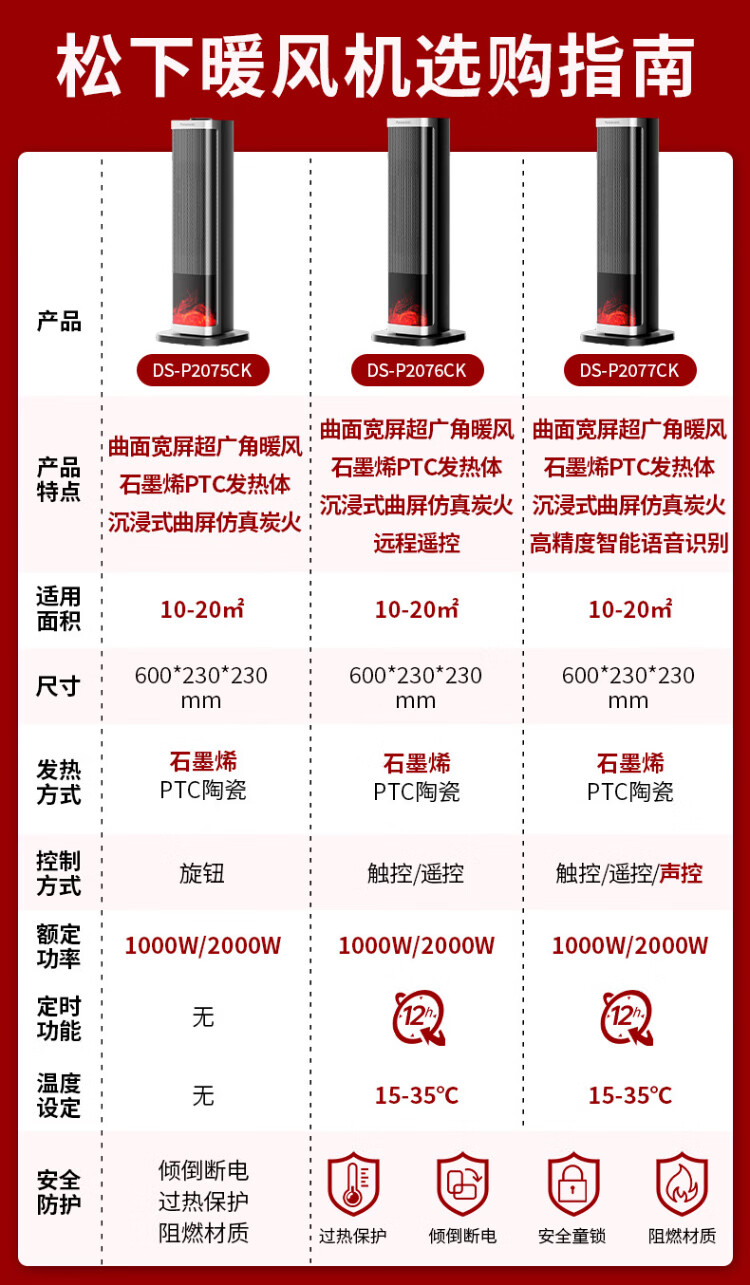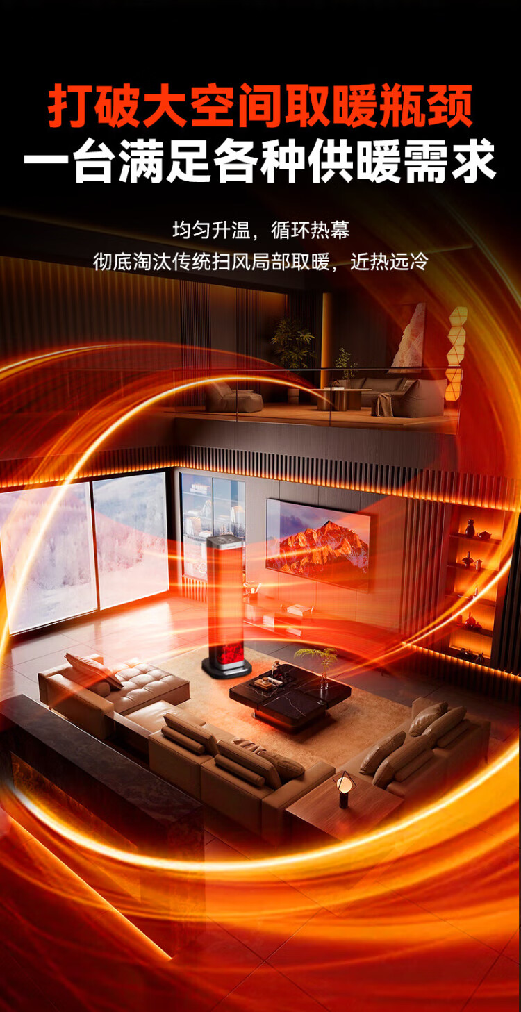 Panasonic heater household graphene heater electric heater small sunroom electric heater winter office shaking head bedroom remote control tower heater light sound PTC hot fan upgraded curved wide area charcoal fire remote control touch screen model